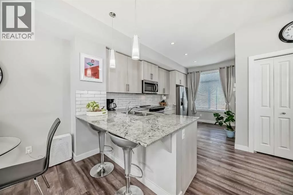 EXCEPTIONAL END UNIT. 2 bedroom + 2.5 bath with Tandem Garage . Welcome to desirable Legacy Path, a townhome project by Trico Homes. Located in the much desired south community of Legacy you are close to all amenities with quick access to major roadways, making the commute to work that much easier and steps away from the NEW K-9 school. This two storey END UNIT features a main floor with 9ft ceilings, tons of windows for natural light, laminate flooring throughout, kitchen with granite countertops, stainless steel appliances, upgraded cabinetry, and flush eating bar. With access to a rear private balcony. Open concept with the dining area and large living room. The upper level features two master bedrooms each with their own walk-in closet and 4pc ensuite bathroom. Double tandem attached garage and a rear patio with a small shared common area. Close to the new Legacy Village with medical services, retail, restaurants and many more. As well as greenspaces and walking paths throughout the community. Make your private showing today. (id:27476)