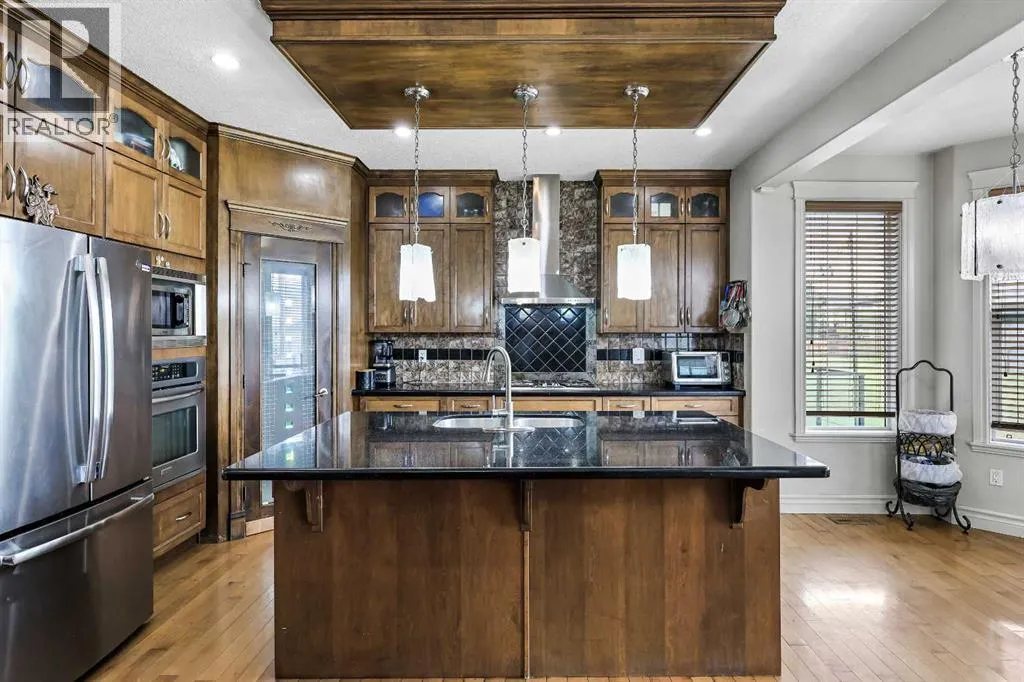 INCREDIBLE OPPORTUNITY | 3775 SQ FT | WALKOUT WITH LEGAL SUITE | 6 BEDROOMS + MAIN FLOOR DEN | 5 BATHROOMS | DUAL PRIMARY SUITESWelcome to this custom-built luxury home in the sought-after lake community of Taralake, where elegance, functionality, and income potential meet. With over 3775 sq ft of beautifully finished living space across three levels, this home is ideal for large families, multi-generational living, or savvy investors.The main floor greets you with rich hardwood floors, a private den/bedroom, a spacious great room, and a generous dining area. The gourmet kitchen is a chefâs dream with granite countertops, a large island, pantry, and premium stainless steel appliances including a French-door fridge with ice maker, wall oven, microwave, gas cooktop, and hood fan.Upstairs boasts an impressive 1,437+ sq ft featuring a central bonus room, two well-sized bedrooms, a stylish 4-piece bath, and dual primary suites. The primary retreat includes a sitting area, dual vanities, a makeup desk, a freestanding soaker tub, glass shower, and a massive walk-in closet.The walkout level is a fully self-contained, registered legal basement suite with its own private entrance, full kitchen, living room, two bedrooms, full bathroom, laundry, and large windows for natural lightâperfect for extended family or rental income.Additional highlights include 6 total bedrooms, 5 bathrooms, ample storage, and a prime location close to schools, parks, shopping, transit, daycares, Calgary Airport, and Stoney Trail.This home truly offers it allâluxury, space, versatility, and investment potential.Donât miss outâbook your private showing today! (id:27476)