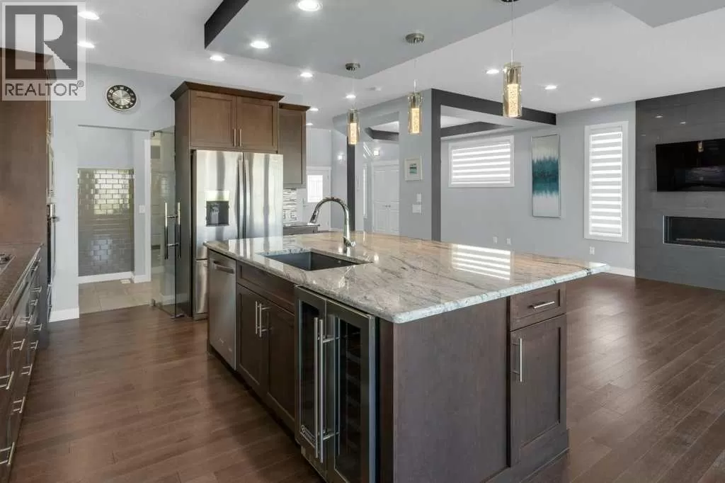 Welcome Home to 490 Sherwood Blvd NWThis stunning two-story walkout backs and sides onto green space, offering breathtaking views of the serene pond just behind the home. Enjoy nature from the comfort of your bright and spacious living space.Park and new school being built across the street. Featuring 3 bedrooms upstairs and a large, sunlit bonus room, this home is designed for both comfort and functionality. The elegant primary suite includes a generous walk-in closet and a luxurious 5-piece ensuite.The open-concept main floor boasts a modern, upgraded kitchen equipped with high-end appliances, including two gas cooktops, two garburators, and two hood fans. A convenient spice kitchen is located just off the main kitchenâperfect for the home chef.Step into the impressive two-story foyer that flows seamlessly into a spacious flex room and great room. Every detail in this home has been thoughtfully upgraded, including:â¢New exterior with hail-resistant asphalt shinglesâ¢3-stage high-efficiency furnace and 16 SEER air conditioningâ¢78-5000K pot lights throughout the homeâ¢Upgraded tankless water heaterâ¢Frosted glass railings on the front exterior and deckâ¢Remote-powered blindsâ¢Granite countertops throughout â¢Hardwood flooring â¢Upgraded 10mm glass railings â¢Extensive security camera system (includes all 4K TVs)â¢Epoxy flooring and upgraded overhead garage doorâ¢Professionally landscaped yard with fencingâ¢Stunning elegantly tiled landscape style fireplace This exceptional home is move-in ready and must be seen to be fully appreciated.Call today to book your private showing! (id:27476)