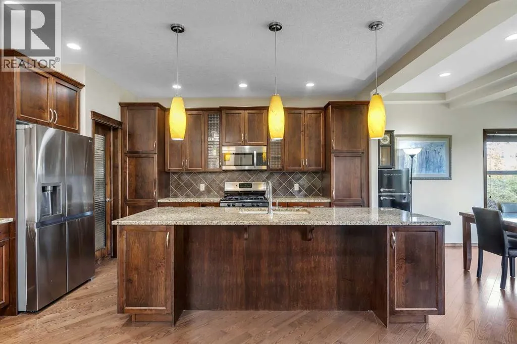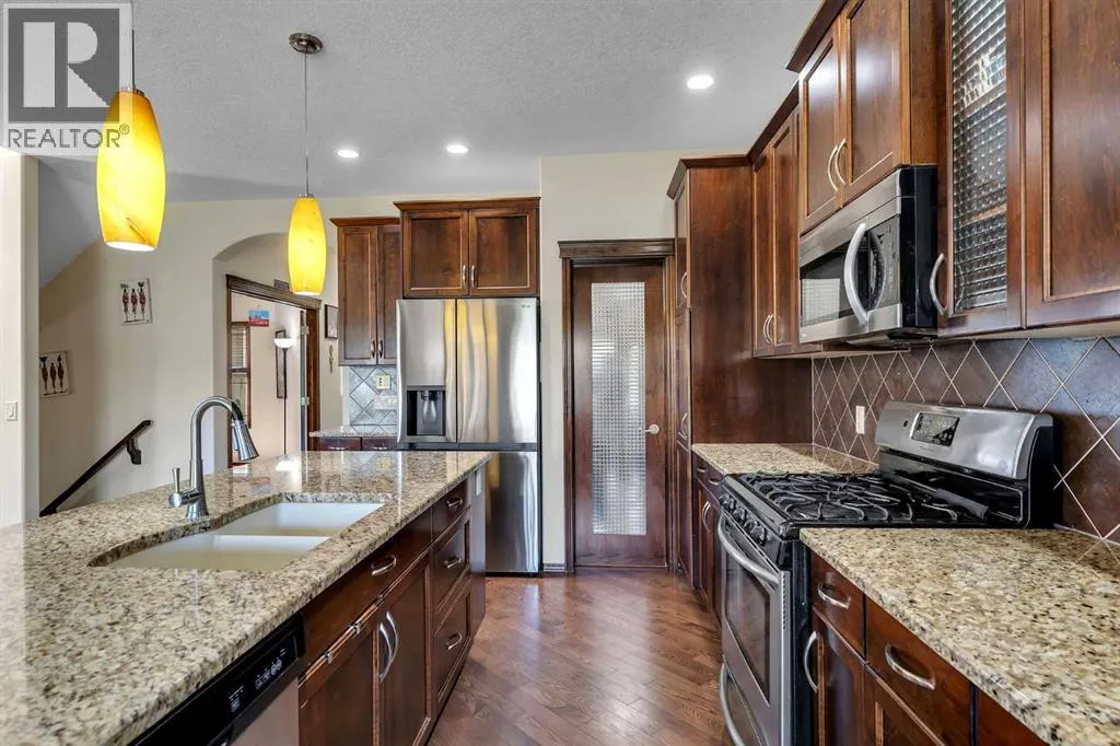 126 Tuscany Summit Heath NW â Where Nature Meets Refined Living. Perched in the heart of one of Calgaryâs most sought-after communities, this remarkable home offers more than 3,200 sq. ft. of thoughtfully designed living space, blending comfort and sophistication with the tranquility of nature. Set on a 35â x 117â lot, the property backs directly onto a scenic ravine with a pathway and park, providing both privacy and a stunning backdrop year-round. Step inside to a welcoming foyer with a custom built-in closet that opens to a bright front officeâperfect for todayâs work-from-home lifestyle. The main living area impresses with its warm, traditional gas fireplace and oversized windows that frame serene views of the ravine. The kitchen features rich shaker-style cabinetry, granite countertops, a gas stove, microwave hood fan, and a central island with breakfast bar, making it the heart of the home for both casual meals and lively entertaining. Upstairs, retreat to a spacious primary suite complete with a walk-in closet and a five-piece ensuite showcasing granite counters and a corner soaker tub. Two additional bedrooms, a full bath, a large bonus room (currently used as a bedroom), and a convenient laundry room complete the upper level. The fully finished walkout basementâwith 9-foot ceilingsâextends the living space and includes a fourth bedroom with laundry, a three-piece bath, second laundry, wet bar, and electric baseboard heating, offering flexibility for guests, extended family, or an independent living setup. Step outside to a large deck with stairs leading to a landscaped backyard that opens directly to the ravine pathway. Built-in speaker system in the main floor, bonus room, ensuite and rear deck. Whether itâs morning walks, evening strolls, or family playtime at the park, this setting truly brings outdoor living to your doorstep. Located in vibrant Tuscany, residents enjoy close proximity to schools, shopping, transit, and major routes including Ston ey Trail and Crowchild Trail. This is more than a homeâitâs a lifestyle opportunity rarely available. (id:27476)