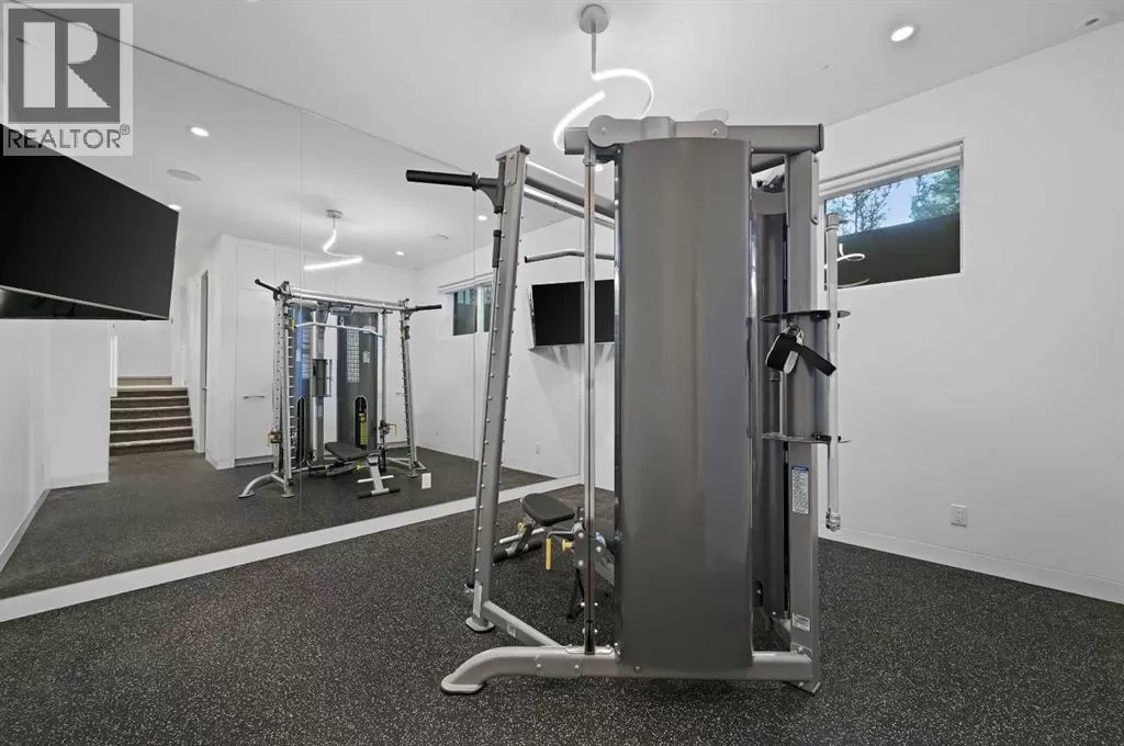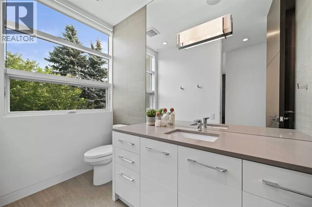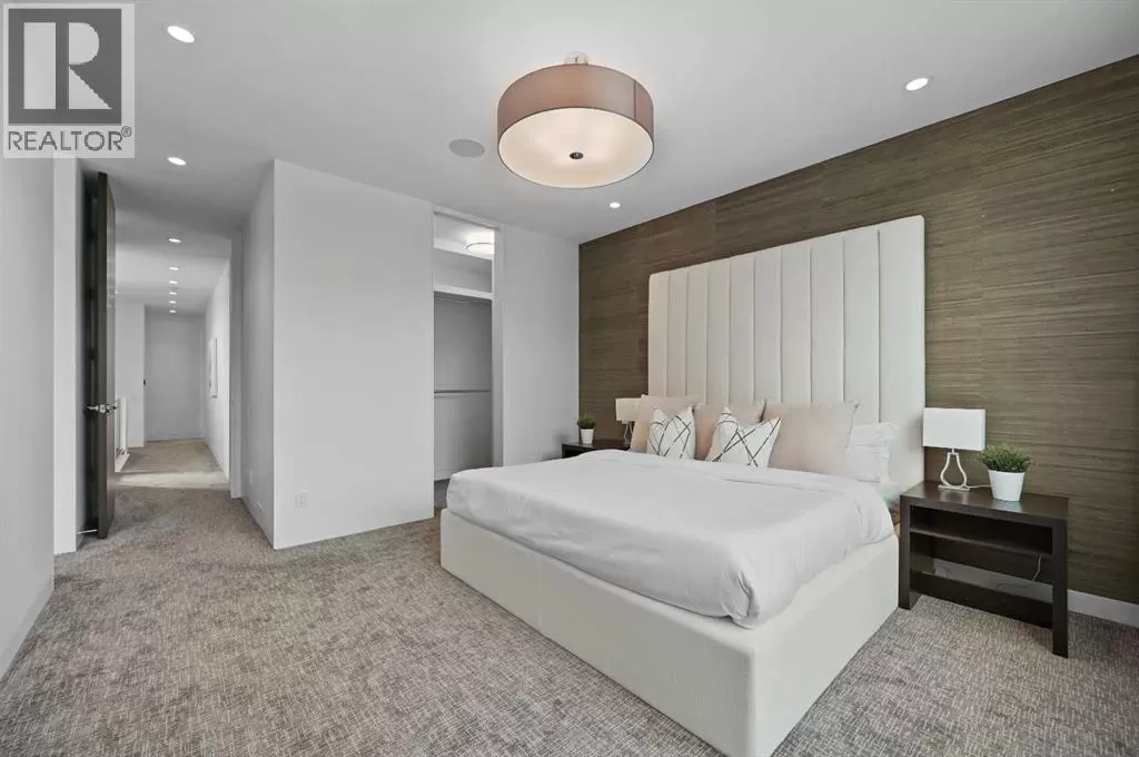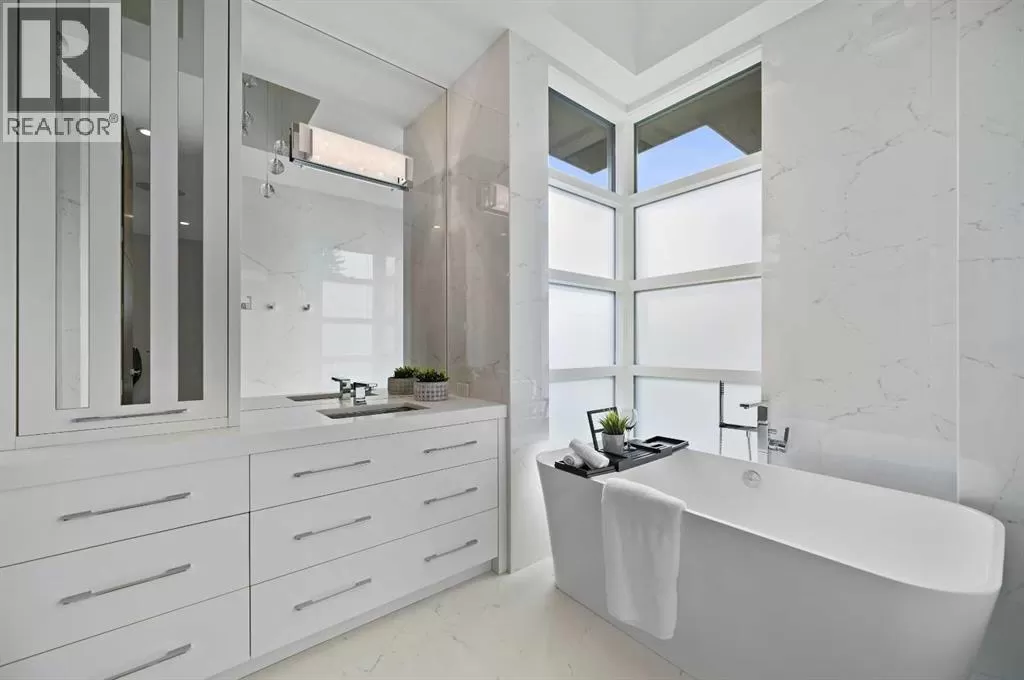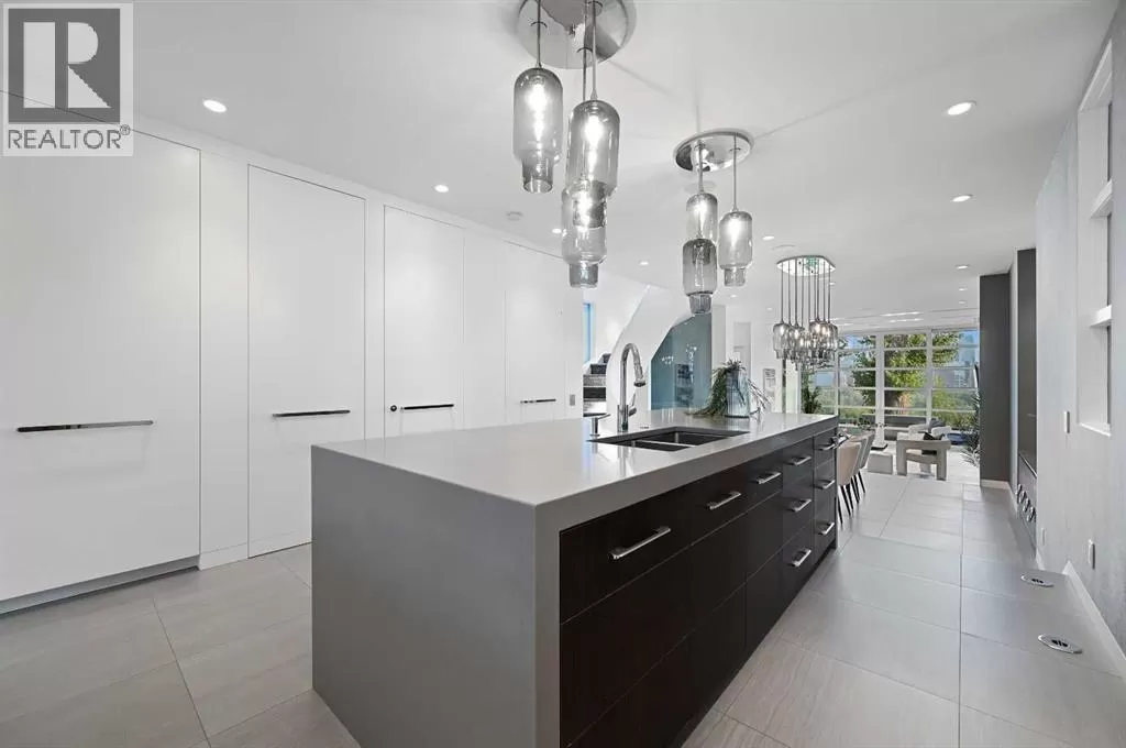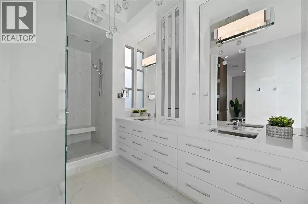 Perched high above the city on one of Calgaryâs most coveted streets, this architectural triumph redefines modern luxury. Designed by Sean McCormick, curated by Paul Lavoie, and masterfully built by Riverview Custom Homes, every square inch of this residence is a study in world-class design and flawless execution. From the moment you enter, youâre enveloped in sleek sophisticationâsoaring ceilings, sculptural lines, and bespoke millwork that blur the boundaries between art and architecture. The living room opens wide with full-height Reynaers sliding walls of glass, connecting to a dramatic front terrace where a dual fireplace and uninterrupted city skyline views create the ultimate backdrop for entertaining. The dining space and chefâs kitchen flow with understated elegance, elevated by a showpiece quartz waterfall island, custom cabinetry, and an integrated Miele appliance suite. Hidden within the paneled wall: a discreet powder room and a private elevator connecting all four levels. At the rear, a refined den and screened âthree-seasonâ room invite intimate moments of calm. Upstairs, the primary suite is pure indulgenceâfloor-to-ceiling windows frame the city lights, while a couture dressing room and spa-inspired ensuite with heated floors, freestanding tub, and oversized shower create a private sanctuary. A second lavish bedroom with ensuite and a designer laundry room complete this level. The top floor is where glamour meets leisureâa sprawling media lounge with home theatre, wet bar with dual Sub-Zero fridges, and seamless access to a private terrace with flame table and fireplace. From sunrise to sunset, the panoramic city and mountain views here are simply unforgettable. A third bedroom and bath round out this floor.On the lower level, discover a private gym, steam shower, and a custom mudroom leading to the immaculate heated double garage with EV charger rough-in. Technology and comfort intertwine with in-floor heating, full snowmelt system, central A/C, complete home automation, and secured gated perimeter with cameras. This is more than a homeâitâs a statement. A one-of-a-kind residence on Crescent Road where luxury, design, and location converge in perfect harmony. (id:27476)