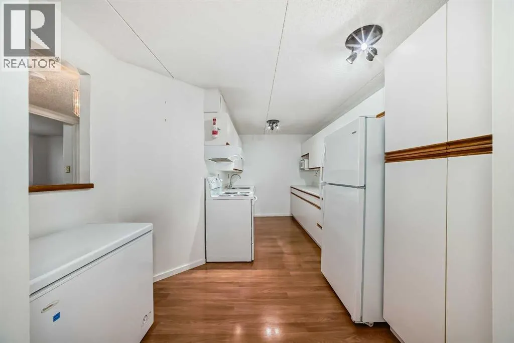 OPEN HOUSE SATURDAY, NOV 15 FROM 2-4PM****Location, location, location! This spacious unit is ideally situated within walking distance to Northland mall with Walmart, restaurants, and a drug store, as well as nearby Co-op and the Dalhousie C-train station. easy access to Crowchild trail, John Laurie Boulevard, and the Trans-Canada highway makes commuting a breeze.This immaculate and well-maintained home has been updated with newer laminate flooring and fresh paint. A large foyer with a walk-in Storage and Closet offers plenty of storage for coats and more. The generous dining area provides space for a good-sized table and currently accommodates a small freezer. The galley-style kitchen features white cabinets, white appliances, and ample counter space.The living room is exceptionally large and opens onto a northeast-facing balcony with stunning views. Two spacious bedroom excellent closet space. Unit also features a three-piece bathroom with a walk-in shower.Building amenities include a fitness room with sauna, games room, library, party room and laundry room all located on the main floor of the building. The unit comes with two underground parking stalls, numbers 199 and 190, as well as in-suite storage. Offering incredible value for its size, location, and rare two parking stalls, this is an opportunity not to be missed. (id:27476)