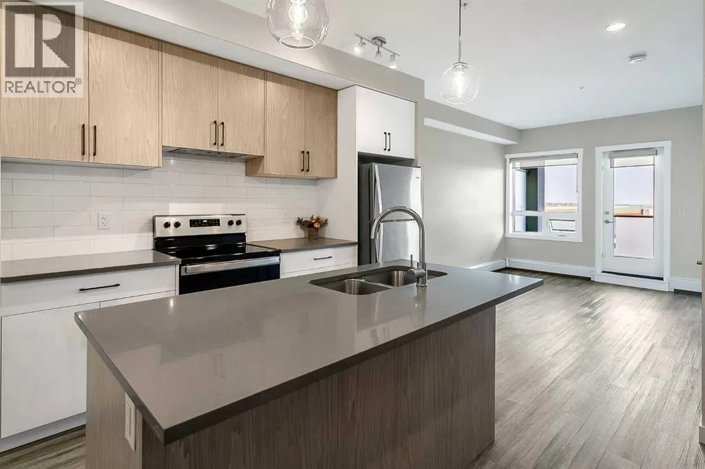 Lovely two bedroom apartment located in the Q2 building of Sage Hill Quarters. The location is second to none for convenience - walk to groceries, dining, child care, drug stores, just to name a few. This apartment condo features two bedrooms, two full bathrooms, plenty of living space, underground parking and titled storage. The east facing balcony is private and floods the apartment with early morning sun. The end unit is situated close to the elevators for easy access and with the stairwell on the south side only shares one common wall. Modern fixtures and finishings give the apartment an open airy feeling. Light, bright and inviting kitchen features plenty to storage space, soft close cabinets and quartz countertops for easy maintenance. The primary bedroom features huge windows, a large walk in closet, and a private ensuite. The secondary bedroom is large with a closet for extra storage and easy access to the fully appointed main bathroom. Plenty of living space will make this condo a cozy, beautiful space to live. Sage Hill is close to the airport and easy access main feeder roads make this location a fantastic option. (id:27476)