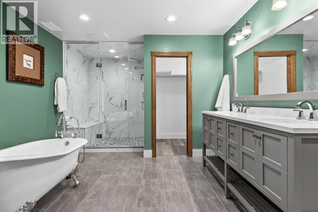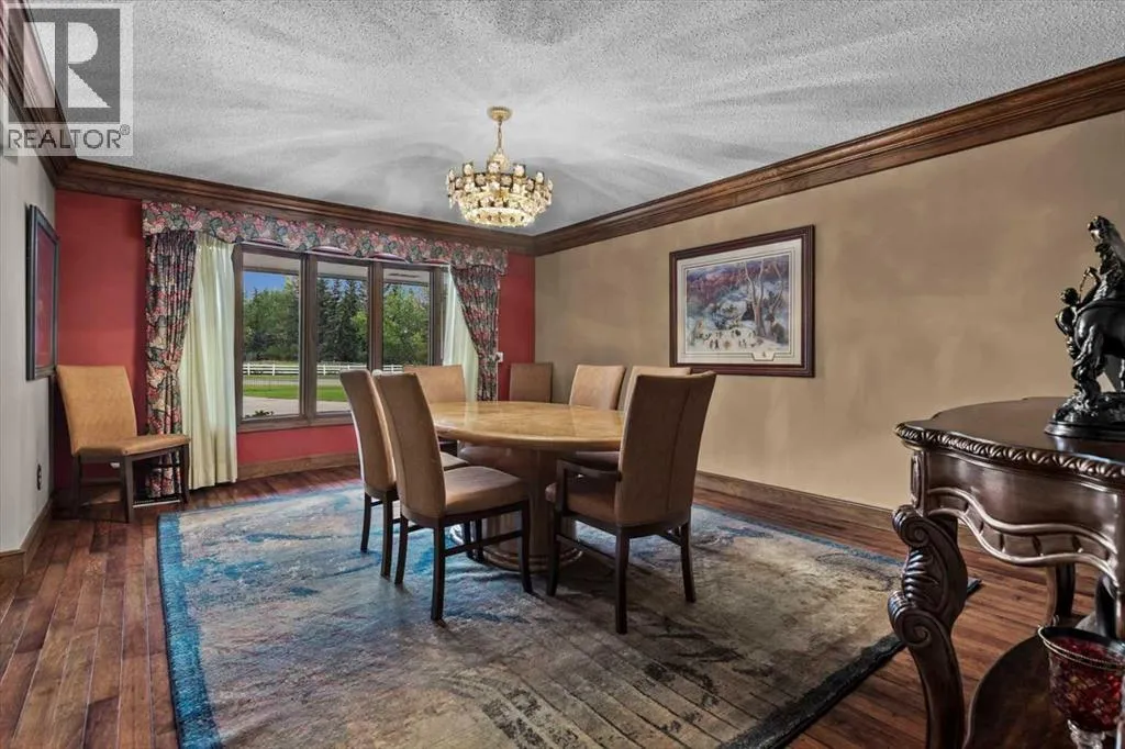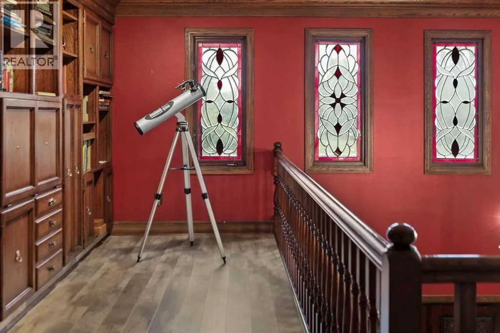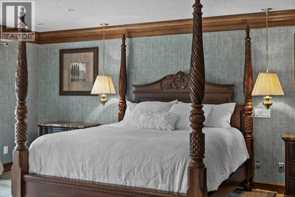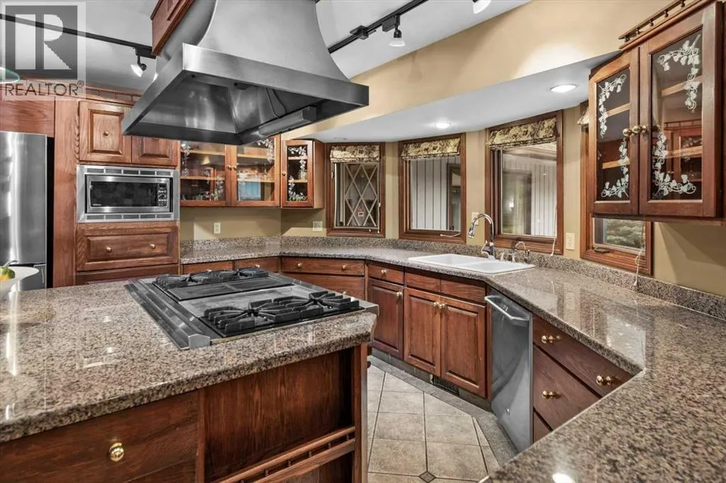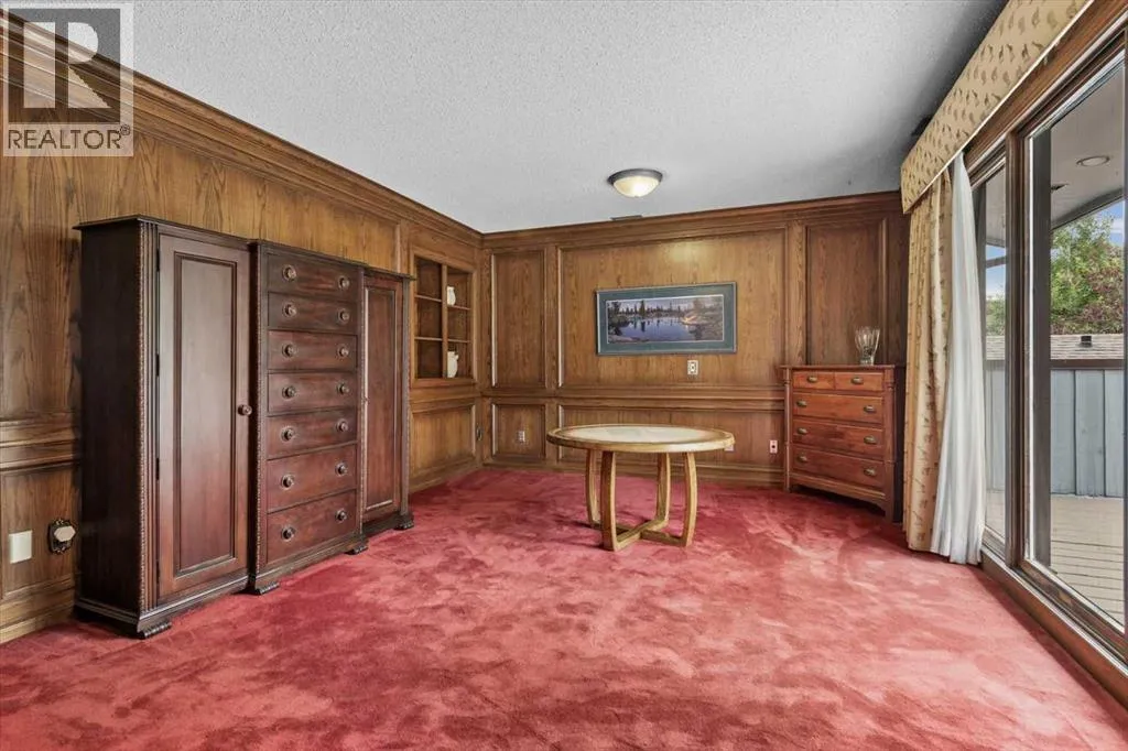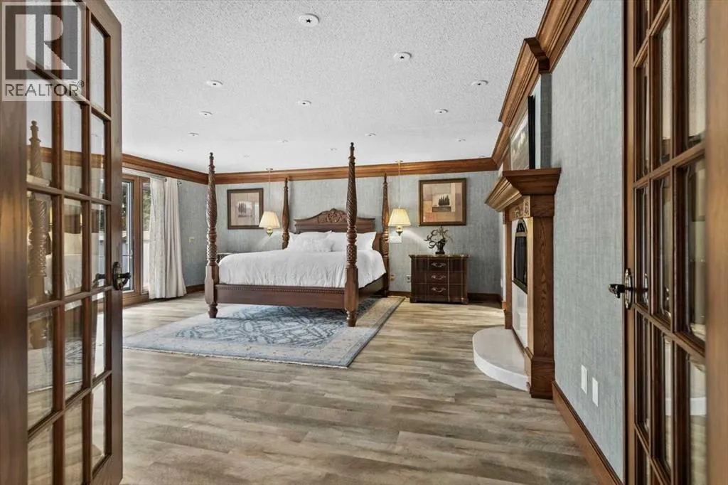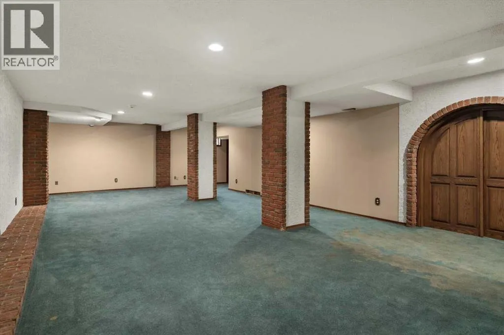 Extremely rare opportunity to own one full Acre of land, a truly unique estate property nestled in a lush park like setting, private grounds in one of Southwest Calgaryâs most coveted communities- Pump Hill. Surrounded by mature trees and located directly across from a tranquil green space, this sprawling family home offers 5 spacious bedrooms, with over 9,000 (pool area included) square feet of living space awaiting your dream renovation.From the moment you step inside, the grand two-storey foyer with its sweeping curved staircase sets the tone for the home's timeless charm and generous proportions. The main floor features expansive formal living and dining rooms, a chef-inspired kitchen with professional-grade gas range, and an informal dining nook overlooking the gardens. A warm and inviting family room is finished with rich wood paneling and a striking corner stone fireplaceâperfect for gathering with family or hosting guests.The indoor swimming pool complex includes a hot tub, sauna, and a dedicated fitness areaâall housed in a bright, skylit pavilion that brings the outdoors in, year-round. Currently decommissioned, the indoor pool complex could be returned to its former glory or re-envisioned as a golf simulator, sport court, artists studio, collectable car display or hobby room.Three spacious bedrooms, each with its own ensuite, are thoughtfully located on the main level. Upstairs, a private primary retreat offers a peaceful escape, complete with a sunny balcony and large ensuite featuring a stylish freestanding soaker tub and a large walk-in shower. A fifth bedroom with powder room and a handsome library overlooking the foyer complete the upper level.The lower level is a nod to retro glamour, boasting a groovy naugahyde bar and lounge, games room with pool table, expansive recreation room with brick archway and wrought iron accents, a large media room and a wine cellar.Outside, the beautifully landscaped backyard is a true extension of the home, with m ultiple levels of paver stone patios for lounging and dining, a built-in fireplace, lower-level gas fire pit with seating, and gardens of established perennials, lush lawns and mature trees. This spacious yard could easily accommodate a hockey rink, basket ball, pickle ball or tennis courts.The circular front drive welcomes guests in style at the double carved-wood front entry doors, that lead to an attached 4-car heated garage with plenty of room for vehicles and all your gear. Beside the garage thereâs an RV pad or the perfect place to store your sailboat.Ideally located near great shopping, dining, and amenities, this exceptional estate is also just minutes from the Glenmore Park and Reservoir, Glenmore Sailing Club, and Calgaryâs extensive pathway system. With easy access to downtown and major roadways, this is inner-city estate living at its finestârarely available and truly unforgettable. (id:27476)