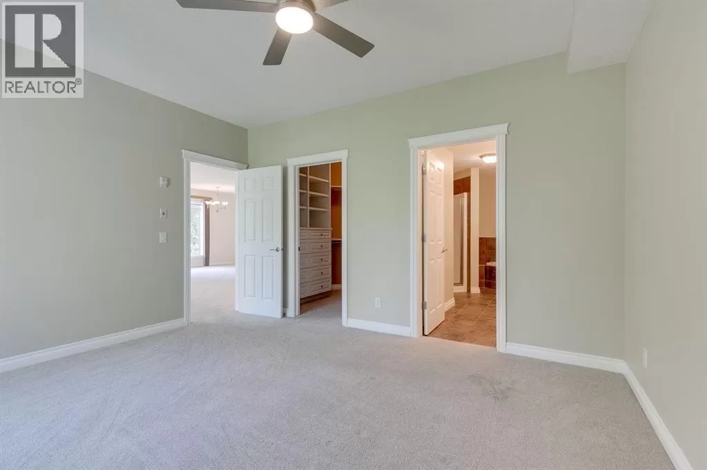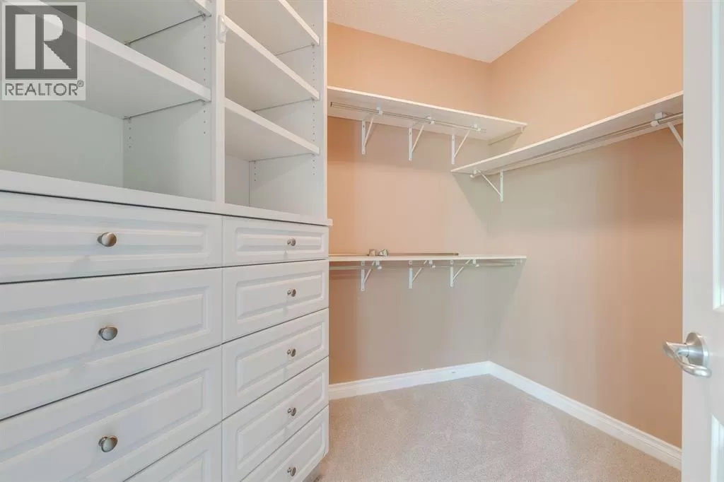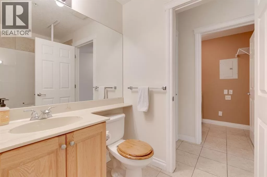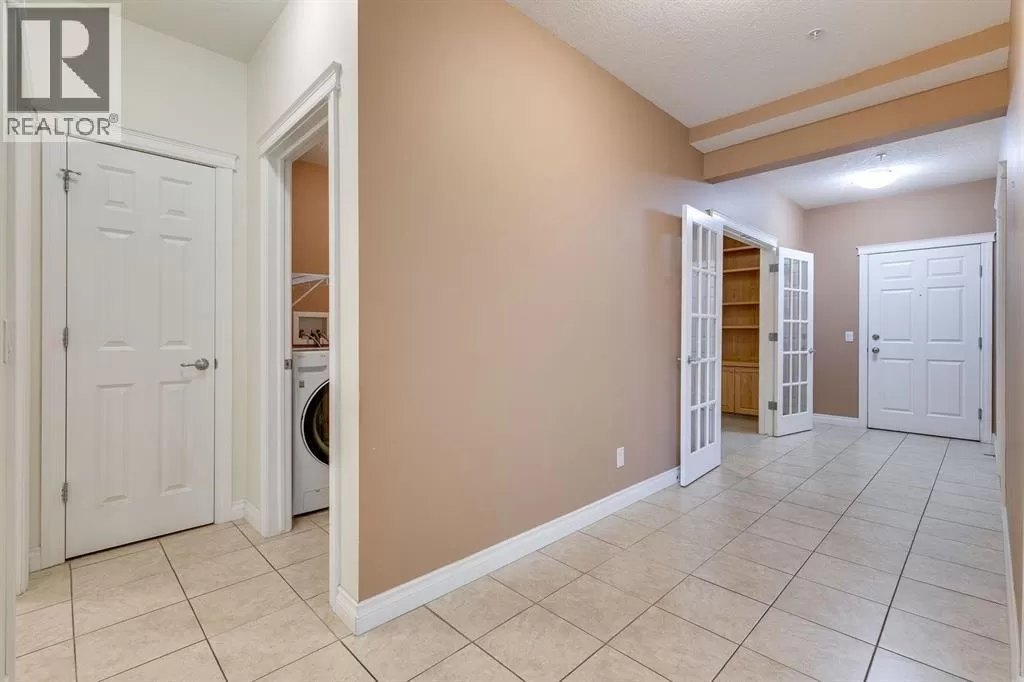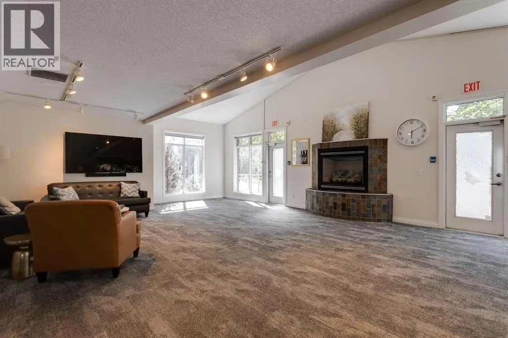 Discover this stunning 1,485+ sq ft corner unit with a wrap-around balcony offering serene, tree lined views overlooking Shaganappi Golf Course. Flooded with natural light, this beautiful home combines style, space, and sophistication in one of the cityâs most desirable locations. Step into a welcoming foyer that leads to a private den, complete with elegant bevelled glass doors and a custom built-in bookcase; perfect for a home office or reading retreat. The expansive living room showcases a stylish gas fireplace with a wood and slate surround, complemented by upgraded lighting and panoramic windows that span the living and dining areas. The kitchen is ideal for entertaining, featuring Corian countertops, a large breakfast bar, and seamless flow into the adjacent dining space. The primary suite is a true retreat, offering a custom walk-in closet with built-in organizers and a luxurious 5pc ensuite, complete with his & hers sinks, a corner soaker tub, and separate shower. The second bedroom includes a walk-through closet with access to a shared 4pc bath, perfect for guests or family. Additional features include a laundry room, plush carpeting throughout, and Hunter Douglas Silhouette window treatments for a polished, upscale finish. This unit also comes with 2 titled, side by side parking stalls. Residents enjoy access to premium amenities including a fitness centre, games room, car wash, storage room, all conveniently located in Building 24.Ideally situated just minutes from the Greek Hellenic Centre, Westbrook Mall, the West LRT, schools, parks, downtown, and outdoor gems like Edworthy Park, Douglas Fir Trail, the Bow River, and nearby off-leash areas. An exceptional opportunity for active, discerning buyers seeking space, convenience, and a beautiful natural setting. This home truly has it all. (id:27476)