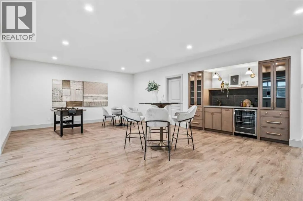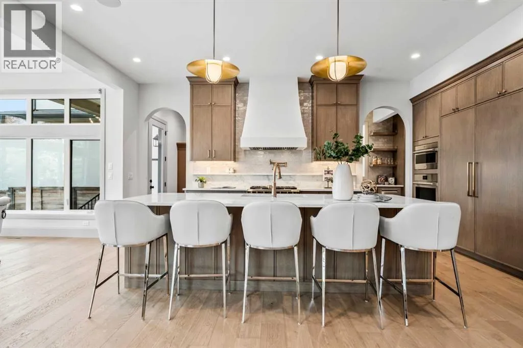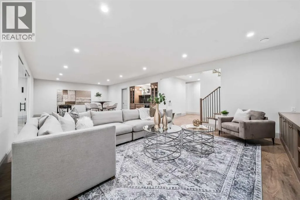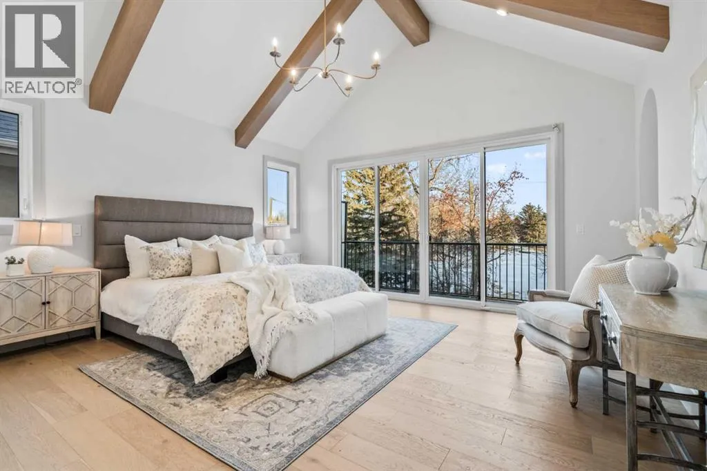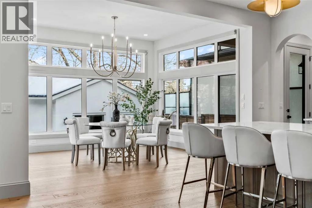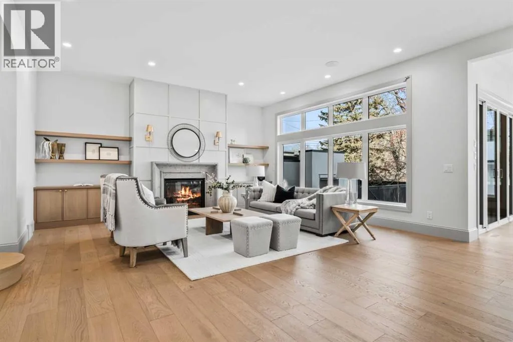 This LUXURIOUS INNER-CITY DREAM HOME by CNJ DEVELOPMENTS is slated for completion in December 2025. Ideally situated on a QUIET CUL-DE-SAC BACKING ONTO A GREEN SPACE mere STEPS TO THE ELBOW RIVER. Incredible curb appeal with stone and acrylic stucco siding, TRIPLE PANE WINDOWS and an OVERSIZED INSULATED, DRYWALLED AND HEATED GARAGE. The spaciously designed interior features 4+1 BEDROOMS and endless HIGH-END UPGRADES including CUSTOM SITE-BUILT FINISHINGS, CUSTOM SOLID CORE DOORS, BUILT-IN SPEAKERS, PREMIUM CARTWRIGHT LIGHT FIXTURES, ENERGY EFFICIENT HVAC SYSTEM, SMART THERMOSTATS, A BOILER WITH MULTI-ZONE RADIANT HEAT, TWO A/C UNITS, WIRING for future full automation, vacuflor roughed in and much more! Soaring 10â CEILINGS and ENGINEERED HARDWOOD FLOORS grace the beautiful open concept main floor. Put your feet up in front of the GORGEOUS GAS FIREPLACE with a sculptural design cast stone mantal in the inviting living room. An entire wall of glass leads to the REAR DECK WITH AN OUTDOOR FIREPLACE, BUILT-IN BBQ AND BUILT-IN SPEAKERS - an outdoor entertainerâs dream for summer nights under the stars, casual barbeques and lazy weekends unwinding. Back inside, the GOURMET KITCHEN inspires culinary adventures featuring HIGH-END APPLIANCES, A GAS STOVE and a handy walk-through pantry for easy grocery unloading. The dining room with a BUILT-IN WET BAR makes hosting a breeze. An ENCLOSED DEN is perfect for a quiet work, study or play area. Those beautiful hardwood floors continue onto the upper level with grand 9â ceilings adding to the airiness. Retreat at the end of the day to the opulent primary bedroom with a CUSTOM WALK-IN CLOSET and a LAVISH ENSUITE. 3 additional bedrooms are on this level all with walk-in closets â 1 with its own private ensuite while the other 2 share the 5-piece bathroom. The large upper-level laundry room features built-in cabinetry for added storage making laundry day more efficient. INFLOOR HEAT WITH LVP FLOORING FOR LOW MAINTENANCE keeps toes war m and cozy in the FINISHED BASEMENT. This level is incredible for gathering, entertaining and relaxing with a large family room and a WET BAR plus a separate games room and theatre. Easily get your workouts in at the GLASS ENCLOSED GYM. A 5th guest bedroom is located beside the 5-piece bathroom with a built-in SAUNA for ultimate luxury. The fully fenced yard has loads of play space for kids and pets that continues onto the green space. Thanks to the bend in the river, this historic community is bordered on three sides by the Elbow River with easy access to downtown and all the diverse shops and trendy restaurants on 4th Street and 17th Ave. Truly an outstanding location for this exceptional dream home! Please note that area size calculated by applying the RMS to the blueprints provided by the builder. (id:27476)