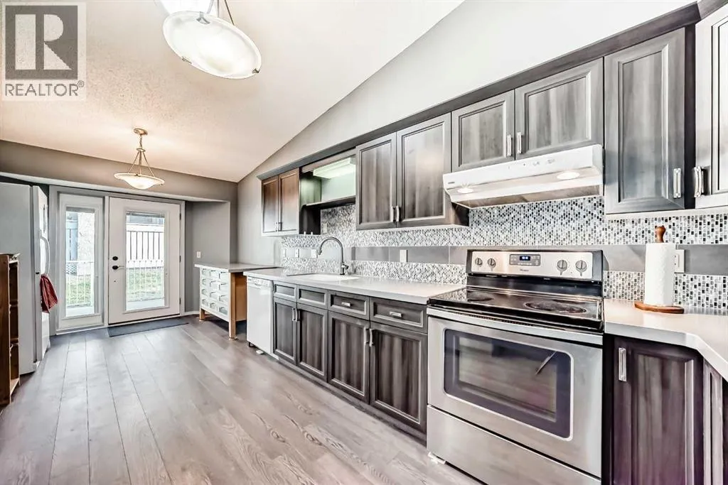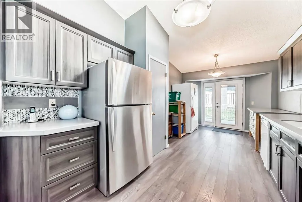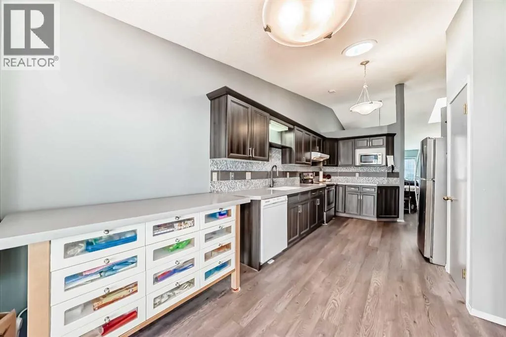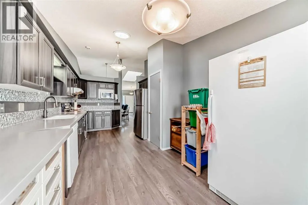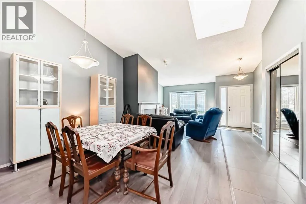 Charming Bungalow Villa with Endless Storage & Prime Location!This rare end-unit bungalow villa offers the perfect blend of convenience, comfort, and style. Featuring 2 bedrooms, 3 bathrooms, and vaulted ceilings with a skylight, the open main floor is bathed in sunlight. The functional kitchen leads to a large back deck, ideal for morning coffee or evening relaxation. A wood-burning fireplace in the living room adds warmth and charm, while the dining area makes entertaining a breeze.Designed for effortless living, this home has main floor laundry, a double attached garage, and air conditioning for year-round comfort. Recent updates include new main floor windows and doors (2017-19) and extra attic insulation for energy efficiency. Storage will never be an issueâthis home has more than you could ever need!Located in a well-managed and maintained condo community with no age restrictions, this home is perfect for those seeking single-floor accessibility or a fantastic opportunity for families and first-time buyers. Enjoy the convenience of being minutes from shopping, schools, downtown, and the ring road, offering quick access to anywhere in the city or a weekend getaway to the mountains.Come see the potential and make this beautiful home yours today! (id:27476)
