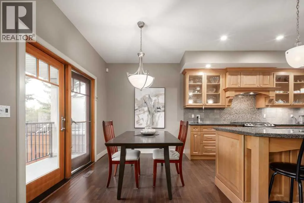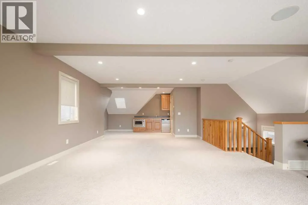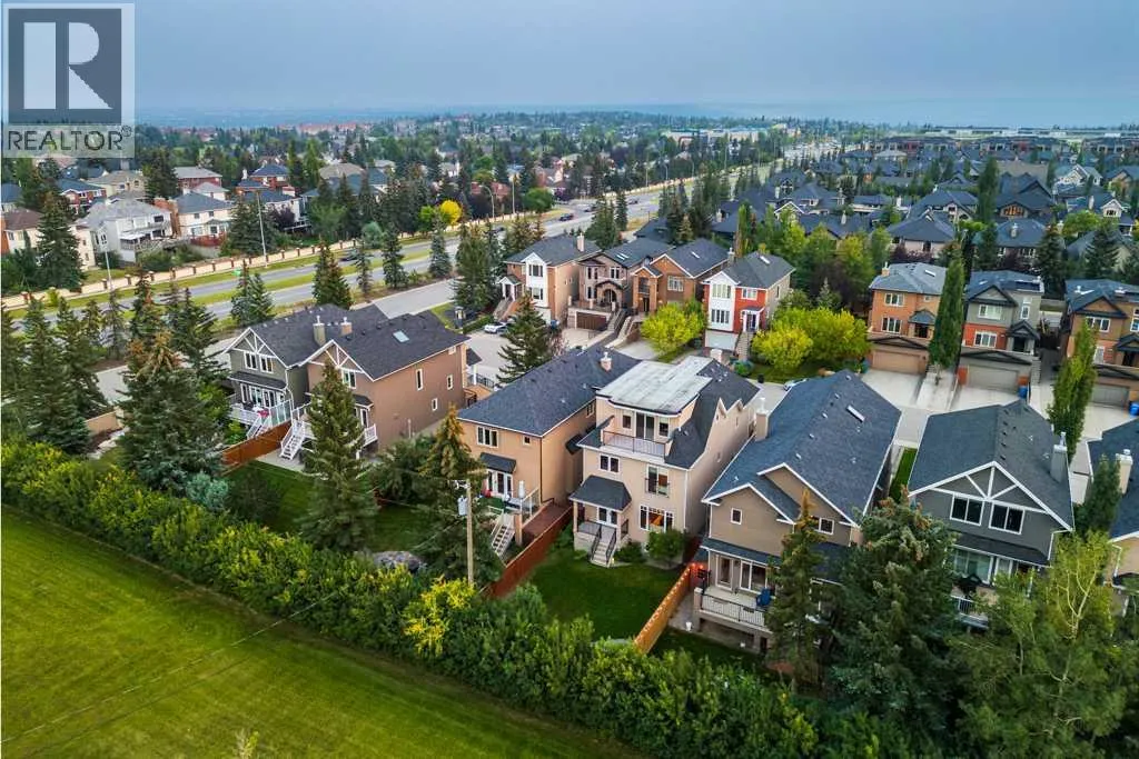 Welcome to this beautifully appointed 3,785 sq ft estate home nestled on a quiet street in the heart of Aspen. This elegant 4-bedroom, 5-bath residence offers timeless sophistication and modern comfort, surrounded by top schools, shopping, and recreation.Step into a bright and inviting main level featuring a grand curved staircase and rich hardwood floors that carry throughout. Entertain effortlessly with a formal living room, elegant dining area, and a warm, welcoming family room centered around a cozy gas fireplace. The gourmet kitchen is a chefâs dreamâshowcasing granite countertops, a large island with seating, premium stainless steel appliances, and a sunny breakfast nook that opens onto a private backyard.Enjoy outdoor living with a covered deck, fenced yard, sprinkler system, and mature landscaping offering privacy and tranquility. Additional highlights include central air conditioning for year-round comfort and a spacious double garage.Upstairs, the luxurious primary suite features a double-sided fireplace, expansive walk-in closet, and a spa-inspired ensuite with a soaker tub and multi-jet shower. Two additional spacious bedrooms, a full bath, and a convenient upper laundry room complete this level.The third floor offers a versatile bonus loft with a skylight, wet bar, fireplace, balcony, and a powder roomâideal as a home office, library, games room, or studio. The fully developed basement is designed for relaxation and functionality, featuring in-floor heating, a large recreation area, fourth bedroom, and a full bathroom.Located just steps from walking paths, playgrounds, and green spaces, this home also offers quick access to Webber Academy, Rundle College, Calgary Academy, and top-ranked public schools. Minutes from Aspen Landing Shopping Centre, youâll find boutique stores, restaurants, coffee shops, and essential services. Recreational opportunities abound at Westside Rec Centre, Canada Olympic Park, and nearby golf courses. With easy access to do wntown via Bow Trail, 17th Avenue, or the 69th Street LRT station, plus a convenient route to the mountains, this is Aspen living at its finest. (id:27476)