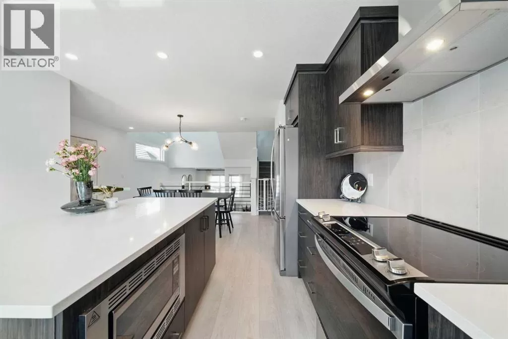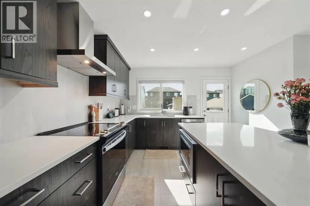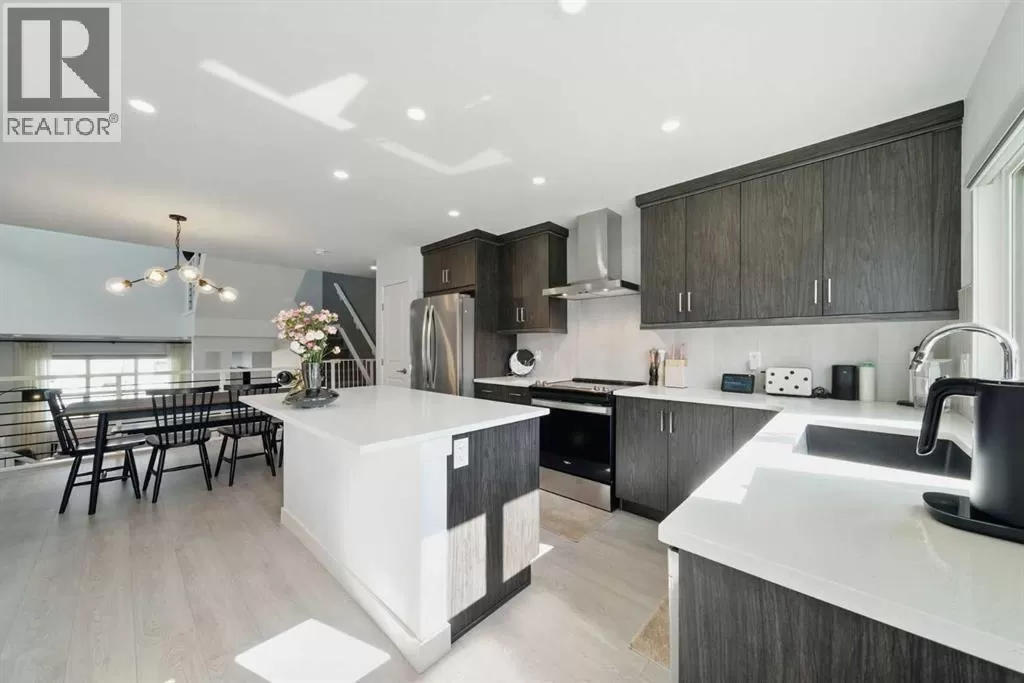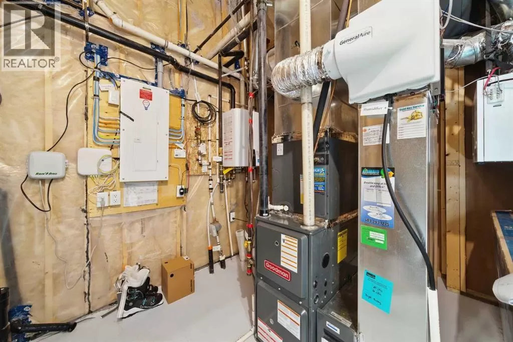 Former Jayman Show Home | Open to Above Floor Plan | Unique Designer Masterpiece | Solar Panels & AC. Welcome to this exceptional 4-level split home in the thriving Northwest community of Glacier Ridge. A former Jayman BUILT show home, this residence is a true standoutâshowcasing a thoughtful blend of designer finishes, energy-efficient features, and a rare split-level layout that seamlessly balances style and functionality. From the moment you arrive, youâll be impressed by the professionally landscaped, maintenance-free front yard, offering outstanding curb appeal. Step inside to a bright and inviting main living area, featuring a striking feature fireplace, expansive windows, and sleek LVP flooring that flows beautifully throughout the home. On the second level, discover a chef-inspired gourmet kitchen, boasting ample counter space, premium stainless steel appliances, upgraded cabinetry, and designer lightingâall anchored by a spacious dining area ideal for gatherings and entertaining. Naturally beautiful skylights and a split staircase take you to the upper level where you will discover two spacious master suites, each with its own private ensuite, offering privacy and comfort for family or guests. A central laundry room adds everyday convenience. The lower level offers soaring 10â+ ceilings, creating an open and airy recreation room, a third bedroom with walk-in closet, and a full bathroomâideal for guests, teens, or extended family. Additional highlights include: Solar panels for reduced utility costs, upgraded tankless hot water system, AC, and energy-efficient features throughout. This home has been thoughtfully designed from top to bottom, showcasing the quality craftsmanship. Whether youâre upsizing, investing, or looking for a distinctive layout that stands apartâthis is your opportunity to own a show-stopping home in a growing community. (id:27476)