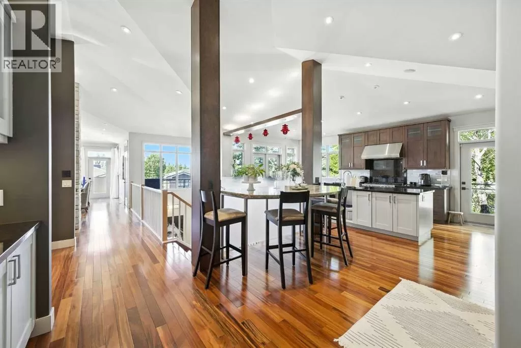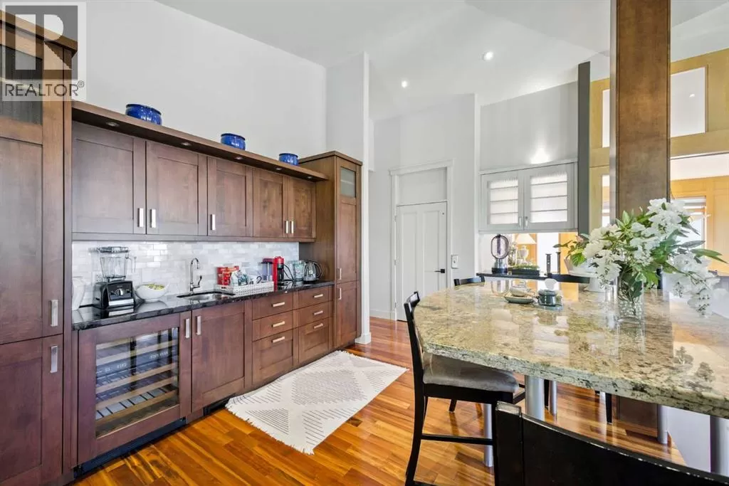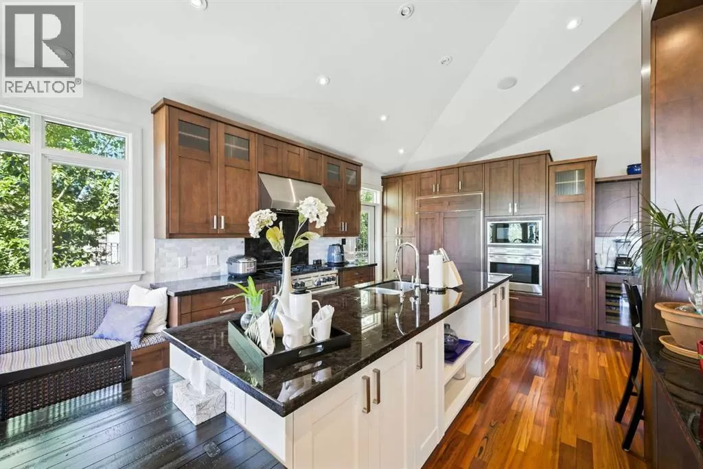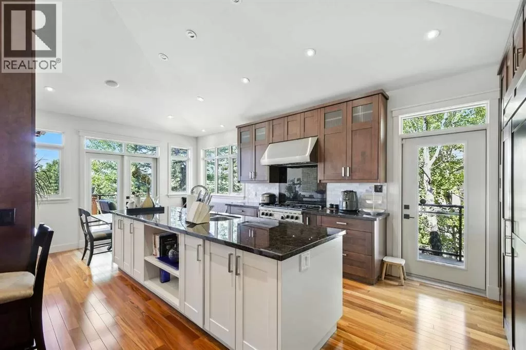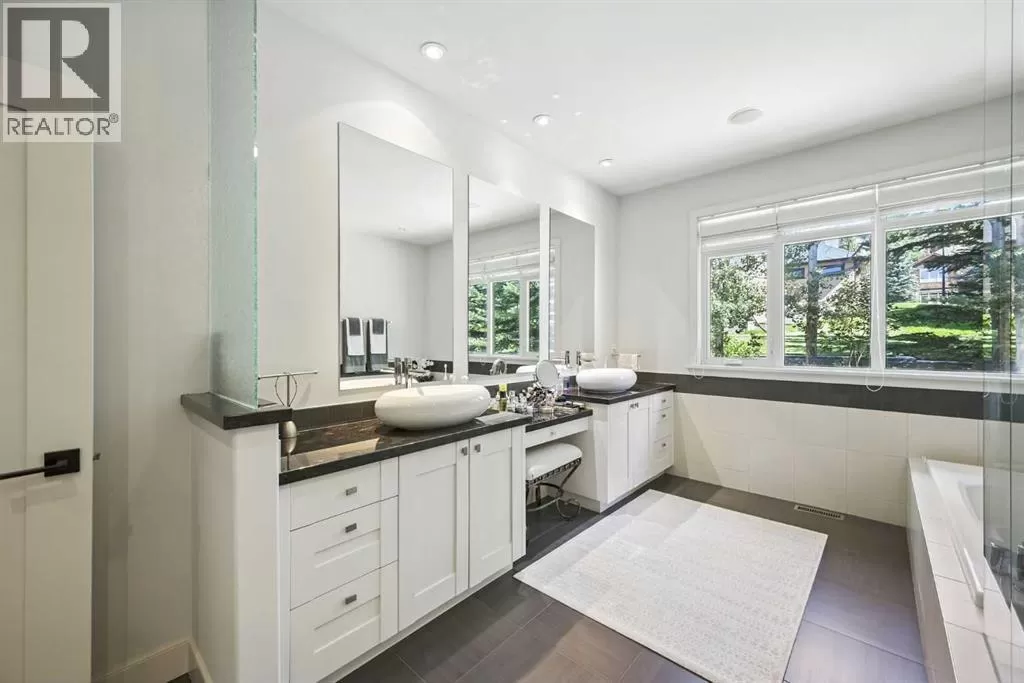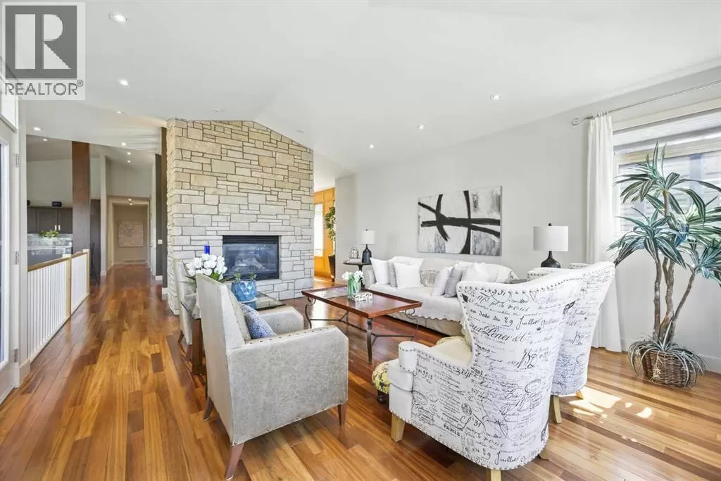 Gated community, bungalow with elevator, beautifully mountain viewed, sit on a large 10,000+ sqft lot in Springbank Hill! Close by to public and private schools, parks, playgrounds, shopping, C train andwestside rec centre. Living space of over 4,350 sqft, 2 decks, 2 private patios. Chef style kitchen with maple cabinets, under cabinet counter lighting, top of the line SUB-ZERO, WOLF and ASKO appliances, marble backsplash, high end granite countertops. Dining room with built in maplewood detailing, and living room featuring full height sandstone fireplace with stunning mountain views. Master bedroom come with luxury ensuite boasts a 5 pc ensuite, soaker tub, custom steam shower, and infloor heating. Additional good sized bedroom or study with access to private backyard. Another 3 pieces bathroom and laundry room complete the main floor. Lower walk out level come with radiant in floor heating, two spacious bedrooms, family area with fireplace plus wet bar. Oversized (650sqft) double garage is heated and completed with epoxy floors. Additional upgrades and features include: built-in speakers throughout, cedar soffits, extensive professionally done landscaping with irrigation, hydronic in-floor heating, custom built-ins, solidcore doors, aluminum clad windows,kinetico water filtration system, radon gas removal system. (id:27476)
