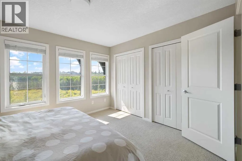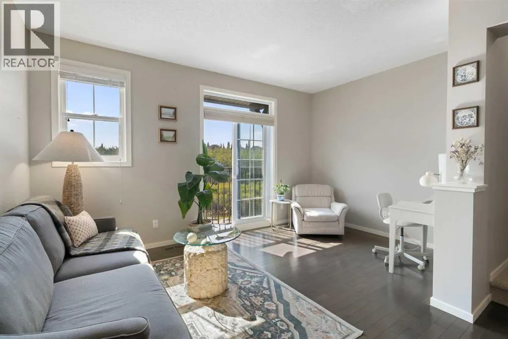 Welcome to 174 Ascot Point SWâan immaculately maintained 3-storey townhome located in The Enclave at Castle Keep in the highly sought-after community of Aspen Woods. Built in 2013, this stylish and functional townhome is backing and fronting onto the ravine with serene views and added privacy. This home offers a thoughtfully designed floor plan perfect for professionals, couples, or small families seeking quality living on Calgaryâs desirable west side. Walking into this home you will find your tandem double garage and foyer, as you head up the stairs you are greeted by an open concept kitchen, living and dining area with gleaming hardwood floors. Your gourmet kitchen offers quartz counters with an eat in breakfast bar, stainless steel appliances, completed with a private balcony with a gas line. Your south facing living area is flooded with natural light with ample area for entertaining and one of the rare units in the complex with a Juliet balcony. Completing this level is your discreet 2-piece powder room for guests. Ascend to the upper floor and discover two retreat-like bedrooms, each boasting its own ensuite for privacyâa luxurious touch seldom lost on those who appreciate thoughtful design. Between them lies an upper-level laundry area and a large storage closet. Just steps away you have access to an endless amount of walking/biking paths, Calgary's top ranked schools, shopping, dining and more! (id:27476)