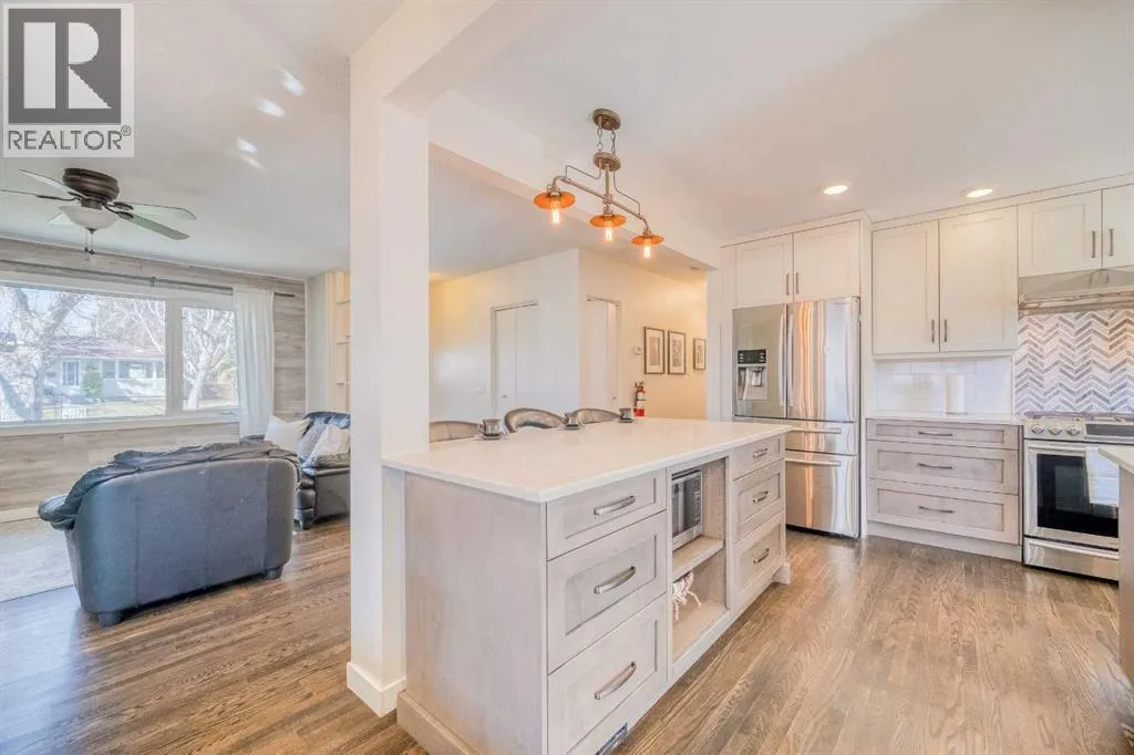 Located in the Extremely desirable community of Lakeview. Right at the entrance of North Glenmore Park. This renovated Bungalow, with open concept, is ready for a new family! It can easily be converted to Separate Entrance for the Basement! New Kitchen, with upgraded cabinets and Quartz countertops. A Gas stove! Beautiful Hardwood flooring on the main floor. Newer Carpets in the bedrooms. Newer Windows throughout the main floor as well. 3 bedrooms on the main floor, including a large Primary bedroom with a 2 pc ensuite bath.In the basement, you will find a very spacious 4th bedroom with a massive walk-in closet! And a flex space and large recreation/living room. This property is on a Large 57.48 Foot Wide Lot! With Oversized Detached Double Garage and Back Ally. Quiet and Serene community, with itâs own schools, shops and golf course. Short Drive to Downtown. You are also only minutes away to Chinook Mall, Mount Royal University, Rockyview Hospital, Heritage Park and many more amenities. Donât forget North Glenmore Park and Glenmore Reservoir right at your doorsteps! You want to be a part of the Lakeview Community. This house is the one! Book a viewing today! (id:27476)