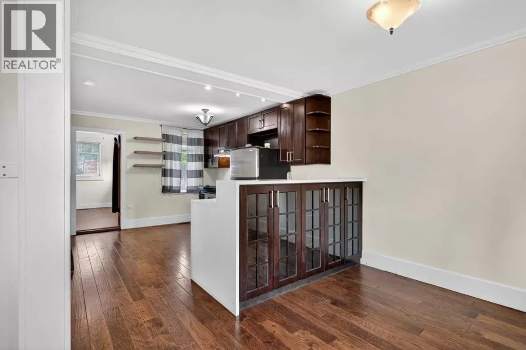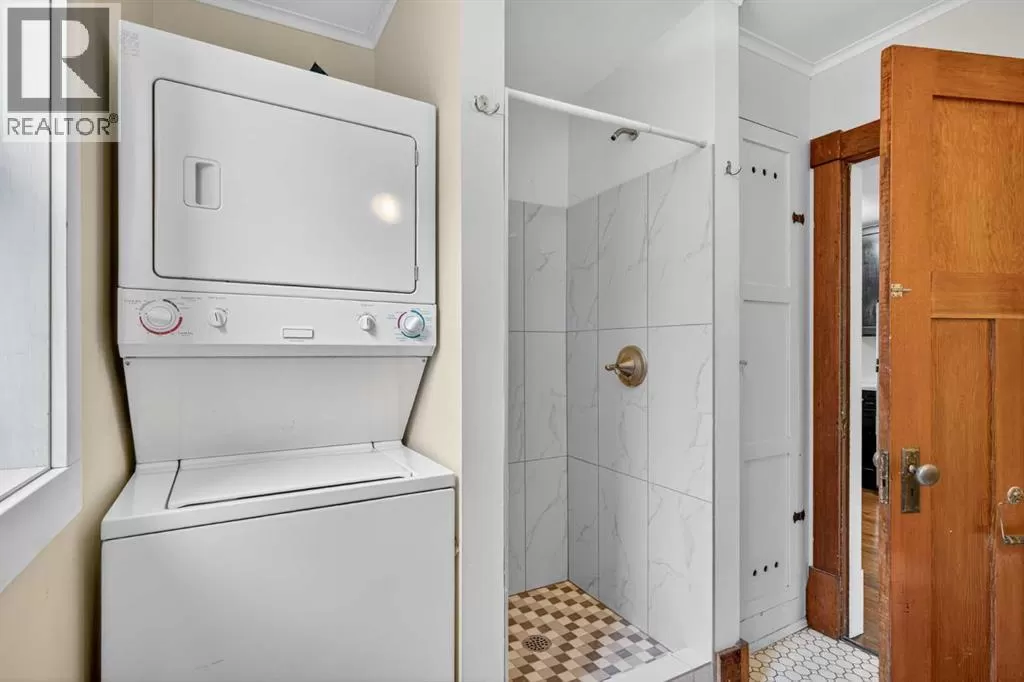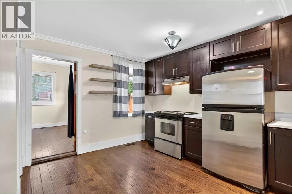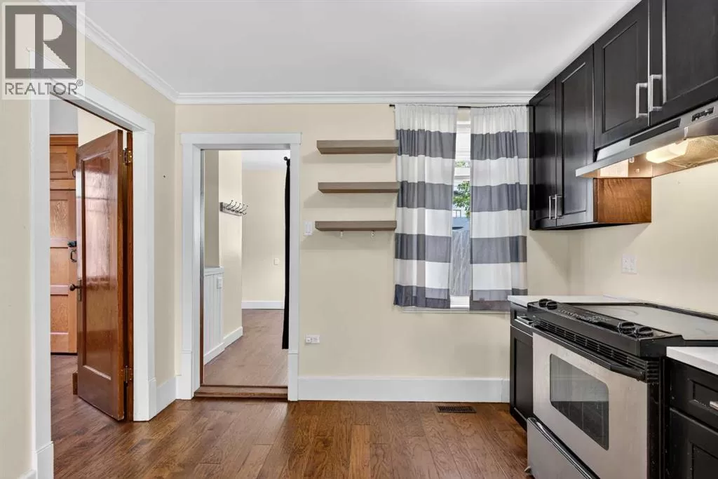 Why Own a Condo when you can buy this beautifully restored character home blends vintage charm with stylish modern updates. Enjoy wide plank hardwood flooring, original doors with glass knobs, and classic baseboards. The updated kitchen features dark-stained maple cabinets, stainless steel appliances, quartz countertops, and an open layout to the living areaâperfect for entertaining. The main floor includes two versatile rooms and a renovated bathroom with tile flooring and stackable washer/dryer. An open-riser staircase leads to a bright loft with skylight and new carpetâideal for a home office or guest space. (Loft and enclosed porch not included in RMS sq. ft.) Upgrades include newer shingles, windows, electrical, paint, crown mouldings, and fencing. The large private backyard offers rear lane access, gravel parking, and a storage shed. Close to SAIT, U of C, Foothills Hospital, and downtownâthis is a great opportunity for homeowners or investors alike! (id:27476)