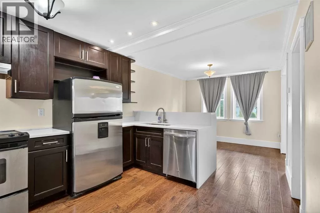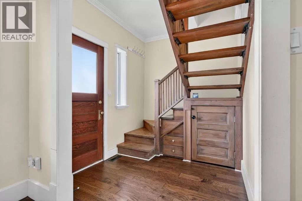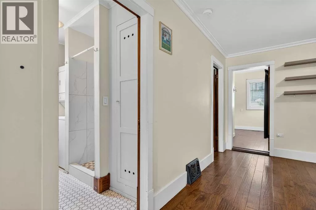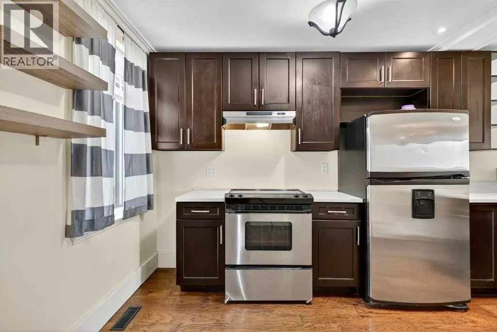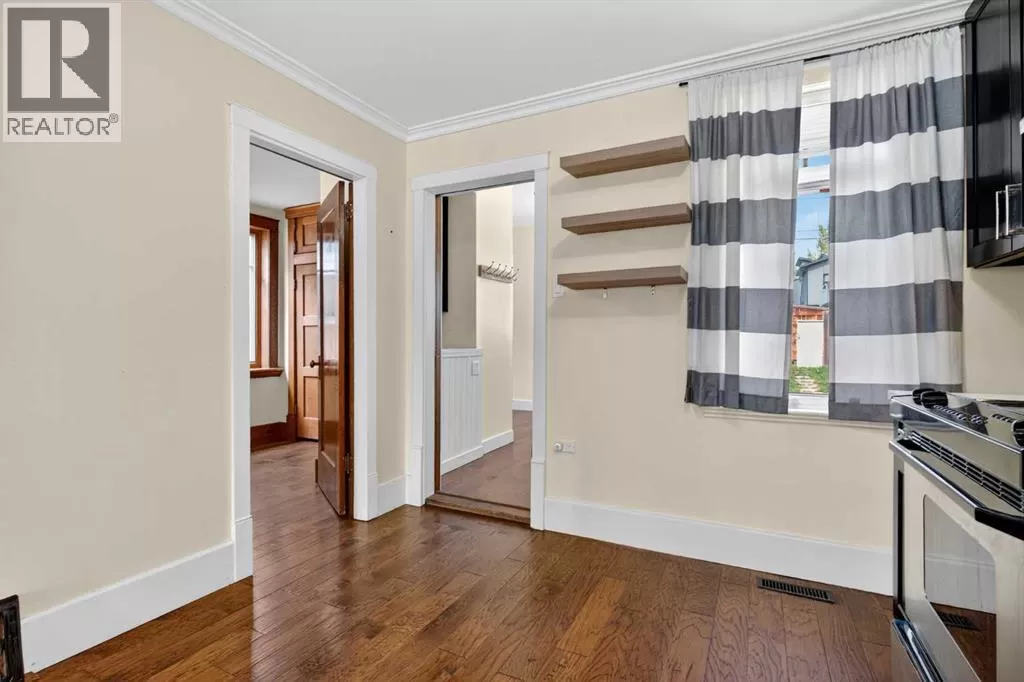 Why Own a Condo when you can buy this beautifully restored character home blends vintage charm with stylish modern updates. Enjoy wide plank hardwood flooring, original doors with glass knobs, and classic baseboards. The updated kitchen features dark-stained maple cabinets, stainless steel appliances, quartz countertops, and an open layout to the living areaâperfect for entertaining. The main floor includes two versatile rooms and a renovated bathroom with tile flooring and stackable washer/dryer. An open-riser staircase leads to a bright loft with skylight and new carpetâideal for a home office or guest space. (Loft and enclosed porch not included in RMS sq. ft.) Upgrades include newer shingles, windows, electrical, paint, crown mouldings, and fencing. The large private backyard offers rear lane access, gravel parking, and a storage shed. Close to SAIT, U of C, Foothills Hospital, and downtownâthis is a great opportunity for homeowners or investors alike! (id:27476)