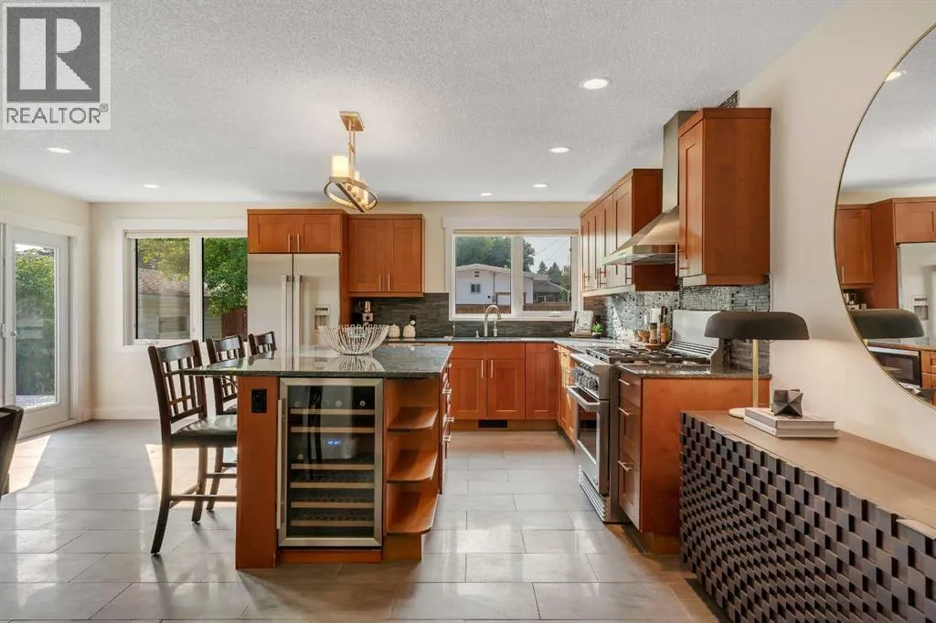 A rare opportunity in Westgateâthis fully renovated 3 bedroom, 1,244 sq. ft. bungalow sits on a coveted, quiet street directly across from a lush treed park-like setting, offering a rare sense of privacy and natural views. The home showcases a stunning chefâs kitchen with custom cabinetry, island with wine fridge, granite counters and premium DCS and Miele appliances. The generously sized open kitchen nook provides direct access to the expansive multi-level deck and west-facing yard through french doors. The spacious primary retreat features a dressing area, walk-in closet, and spa-inspired bath with soaker tub, separate shower, and heated tile floors.The professionally remodelled lower level by Timber Creek Homes is designed for both comfort and entertainment, featuring a custom wet bar and built-in wine rack, expansive family room, gym with rubber floor, third bedroom, full bath with steam shower, and a flex room for office or playroom.Upgrades include triple-pane windows, dual-zone HVAC, brand new washer, fence, water softener, and on-demand hot water and more. Just 10 minutes to downtown, steps to several schools (K-9) including Wildwood Elementary School, minutes to Westbrook Mall & C-Train, Westside Rec Centre, and close to Edworthy Park, this exceptional property combines sophisticated living with everyday convenience. (id:27476)