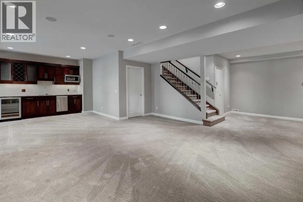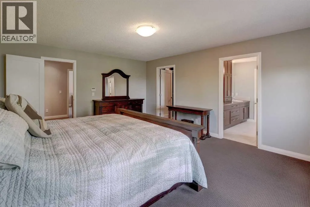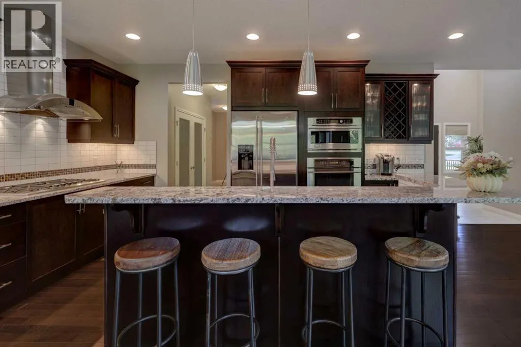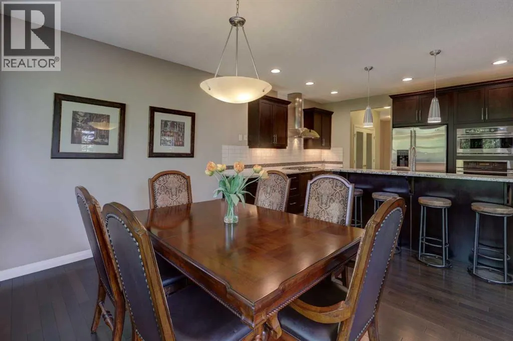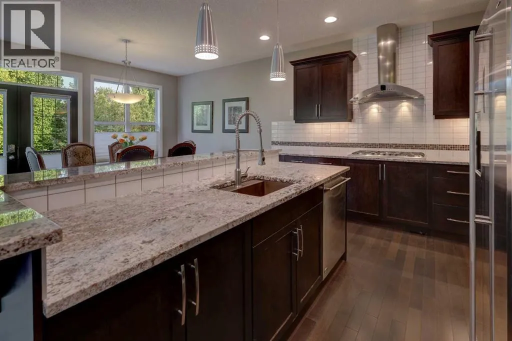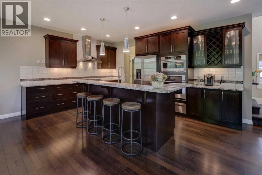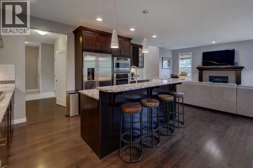 Welcome to 158 Cranridge Terrace SE, a move in ready home that perfectly blends elegance, comfort, and family friendly living. Set on an oversized lot beside a park and the scenic Cranston Ridge pathway system, this fully finished 2-storey walkout offers the space and lifestyle youâve been searching for. Step inside to a grand 2-storey foyer, filled with natural light, that leads you into the heart of the home. The modern kitchen is a chefâs dream, featuring granite countertops, a central island with eating bar, stainless steel appliances, a spacious pantry, and extensive cabinetry. The open concept dining area easily fits a full family table, while the adjoining living room with cozy gas fireplace overlooks the park. A dedicated main floor den and convenient powder room complete this level. Upstairs, retreat to the serene primary suite with downtown views, a custom walk-in closet, and ensuite with soaker tub, dual vanities, and separate shower. Two additional bedrooms share a bath, while a central bonus space with mountain views and an upper laundry room add everyday convenience. The walkout lower level is designed for entertaining, complete with a spacious family room, second fireplace, wet bar with bar fridge, dishwasher, and microwave, plus a fourth bedroom and full bath, ideal for guests or teens. Step outside to your stunning professionally landscaped yard with stamped concrete patio, hot tub, and spacious backyard, perfect for year-round enjoyment, and 'outdoor living'. You will love the oversized heated garage with lift-ready doors, hot/cold water taps, and extra storage. Additional upgrades include central A/C, built-in speakers, a security system with cameras, underground sprinklers, and a garden shed. With its prime location, incredible amenities, and thoughtfully designed living spaces, this property is more than a house, itâs a place to call home. Donât miss your chance to own one of Cranstonâs most desirable homes. Schedule your private tour today! (id:27476)
