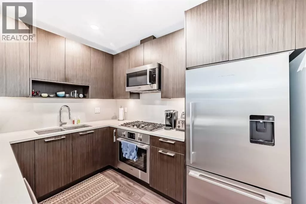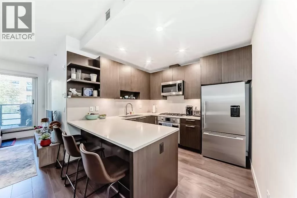***PRICE IMPROVEMENT!*** This stunning 2-bedroom, 2-bathroom in the exclusive Radius Bridgeland is NOW OFFERED AT A NEW COMPETITIVE PRICE. â Welcome home to 216, 88 9 St NE. This unit redefines modern living in the heart of Bridgeland, one of Calgary's most sought-after communities. Showcasing high-end, custom finishes throughout for the perfect blend of style, comfort, & convenience. The sleek & modern kitchen features premium stainless steel appliances including a built-in gas range, European-style cabinetry, quartz countertops, & peninsula with seating - perfect for entertaining or enjoying a quiet morning coffee. The seamless flow between the dining and living areas creates an open, inviting space, with steps out onto your private covered balcony. The primary suite is a true retreat, offering ample closet space and a spa-like ensuite bathroom complete with a full-size walk-in shower and high-end fixtures. A versatile second bedroom and a full second bathroom provide flexibility, whether you need a guest room, a dedicated home office, or a space to suit your unique lifestyle. In-suite laundry & storage adds effortless convenience to your daily routine. Exclusive on-site amenities add to the value of this amazing unit! Keep your vehicle and furry friend sparkling clean with the convenient car wash and dog wash stations. Prioritize your health in the wellness suites, which includes a yoga studio, spin studio, & 2 fitness centers. Enjoy the one of best rooftop patios in the city, with breathtaking views of the downtown Calgary skyline, dedicated BBQ areas, and garden areas - it's the perfect spot to host gatherings, unwind after a long day, and soak in the city's vibrant energy. Beyond your doorstep, Bridgeland awaits with an abundance of green spaces, river pathways, and a comprehensive bike network. The C-Train station is just one block away, providing easy access to the rest of the city. Immerse yourself in the local culture by exploring some of Calgary's most co veted eateries & boutique shops. Don't miss the opportunity to experience the best of urban living at Radius, where every detail has been thoughtfully crafted to elevate your everyday experience. Given the recent price adjustment, high activity is expected. Book your viewing and secure this exceptional opportunity today! (id:27476)