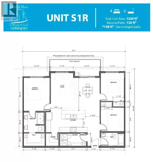 INTRODUCING MINTOFT PLACE ON BLACKFOOT TRAIL, IN BEAUTIFUL CENTRAL SE CALGARY. BUILT BY CEDARGLEN LIVING, WINNER OF THE CustomerInsight BUILDER OF CHOICE AWARD, 5 YEARS RUNNING! BRAND NEW "S1" unit with high-spec features. You will feel right at home in this well designed 1,174.36 RMS sq.ft (1,259 sq.ft. Builder size), rare 3 bed, 2 bath home with open plan, 9' ceilings, LVP flooring throughout common areas, carpets in the bedrooms and closets (option to upgrade to LVP), Low E triple glazed windows, BBQ gas line on the balcony, Fresh Air System (ERV), and so much more. The kitchen is spectacular with full height cabinets, quartz counters, undermount sink, rough-in water line to the fridge and S/S appliances. The island is extensive with built in flush breakfast bar, which transitions into the spacious living area, perfect for entertaining. The spacious primary bedroom has a large bright window (triple pane windows), huge walk-in closet and stunning 4 pc ensuite with dual sinks. The second and third bedrooms are located on the opposite side of the unit for privacy and nearby is a 4pc bath with quartz counters, and undermount sink. The spacious laundry/storage room is a must see (washer & dryer included). Highlights include: Hardie board siding, designer lighting package, sound reducing membrane to reduce sound transmission between floors, clear glass railing to balconies and 1 titled underground parking stall included (storage lockers available for purchase). A once in a lifetime community off Blackfoot Trail and Southland Drive in Calgary. Nature lovers will appreciate that Sue Higgins park and Carburn Park are a short stroll away. Deerfoot meadows shopping centre, anchored by Costco, Ikea and Walmart, along with many other amazing shops and restaurants are located in very close proximity. PET FRIENDLY COMPLEX, PRE-CONSTRUCTION OPPORTUNITY, PURCHASER CAN STILL MAKE SELECTIONS, and PHOTOS ARE OF A DIFFERENT SHOW SUITE FOR REFERENCE ONLY, FINISHING'S/PLAN WILL DIFFER. ESTIMATED COMPLETION RANGE IS APRIL 2027-DECEMBER 2028. VISIT THE SHOW SUITE OR CALL TODAY FOR MORE INFO. (id:27476)