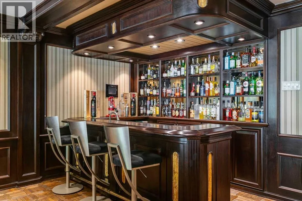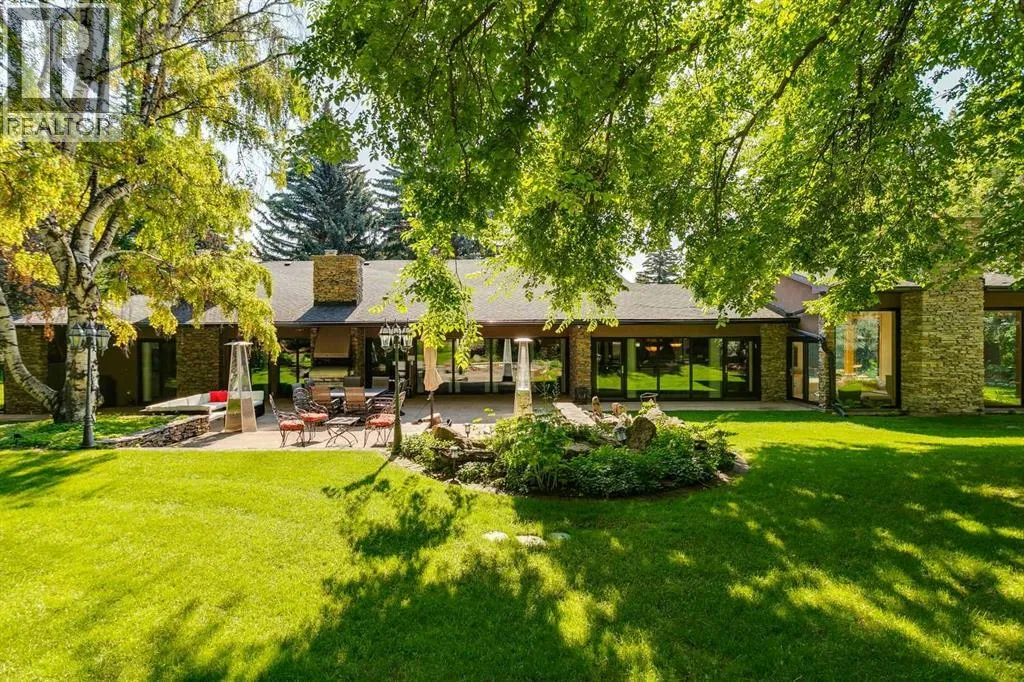 Welcome to the epitome of luxury living in the prestigious community of Eagle Ridge.This exceptional, high-end bungalow rests gracefully on a sprawling double lot, offering an unmatched level of sophistication and elegance. With meticulous attention to detail and no expense spared, this home is a true work of art. As you approach the residence nestled within the curve of the cul-de-sac, the picturesque, park-like setting immediately sets the tone. Step through the hand-chiseled walnut doors into a grand foyer that hints at the splendor beyond. The main rooms are nothing short of magnificentâexpansive in scale and exquisite in finish. Rich hardwood with parquet detailing, ledgestone and ornate metal fireplace surrounds, floor-to-ceiling windows framing the lush gardens, and custom recessed lighting all blend seamlessly with smart home technology and advanced security features. At the heart of this extraordinary home lies the chef-inspired kitchen, a perfect balance of function and flair. Designed for the most discerning culinary enthusiast, it features a walk-in cooler, gas cooktop, double ovens, and commercial-grade appliances. Whether hosting an elegant soirée or preparing an intimate dinner, this kitchen delivers both performance and beauty. A variety of inviting spaces allow for relaxation or entertainment: a sun-drenched family room, a sumptuous den complete with hotel-style bar and brass foot rail, a theatre room with 108â screen, and a home gym with shower and sauna. The sleeping quarters are equally impressive. Each of the five generous bedrooms offers the ultimate in comfort and privacy. The primary suite is a sanctuary, featuring a sunken lounge area, cozy fireplace, walk-in closet, and spa-inspired ensuite. Every detail contributes to a sense of calm sophistication. Outside, the meticulously manicured grounds create a private outdoor haven. Stroll along enchanting garden pathways or simply enjoy the serenity of the landscaped oasis that surrounds youâa pe rfect backdrop for entertaining or quiet reflection. Future Development Potential - This extraordinary property sits on two full lots, offering exceptional flexibility for the future. While the existing home is an architectural gem and not a teardown, the unique double-lot configuration provides the rare opportunity to divide the land should one choose to explore redevelopment potential down the road. Itâs the best of both worlds: a timeless estate today, and an investment in tomorrow. Located in the exclusive enclave of Eagle Ridge, surrounded by other distinguished residences, this property stands as a symbol of achievement and refined taste. With its extraordinary features, unparalleled craftsmanship, and prestigious setting, it represents a once-in-a-lifetime opportunity to own one of Calgaryâs most exceptional homes. (id:27476)