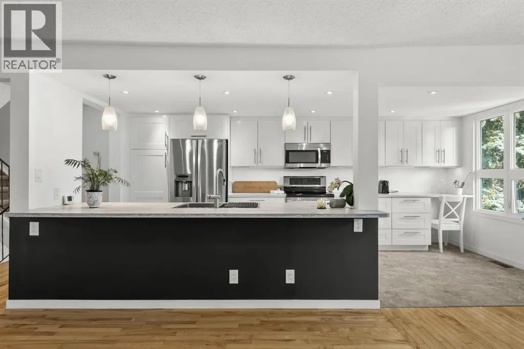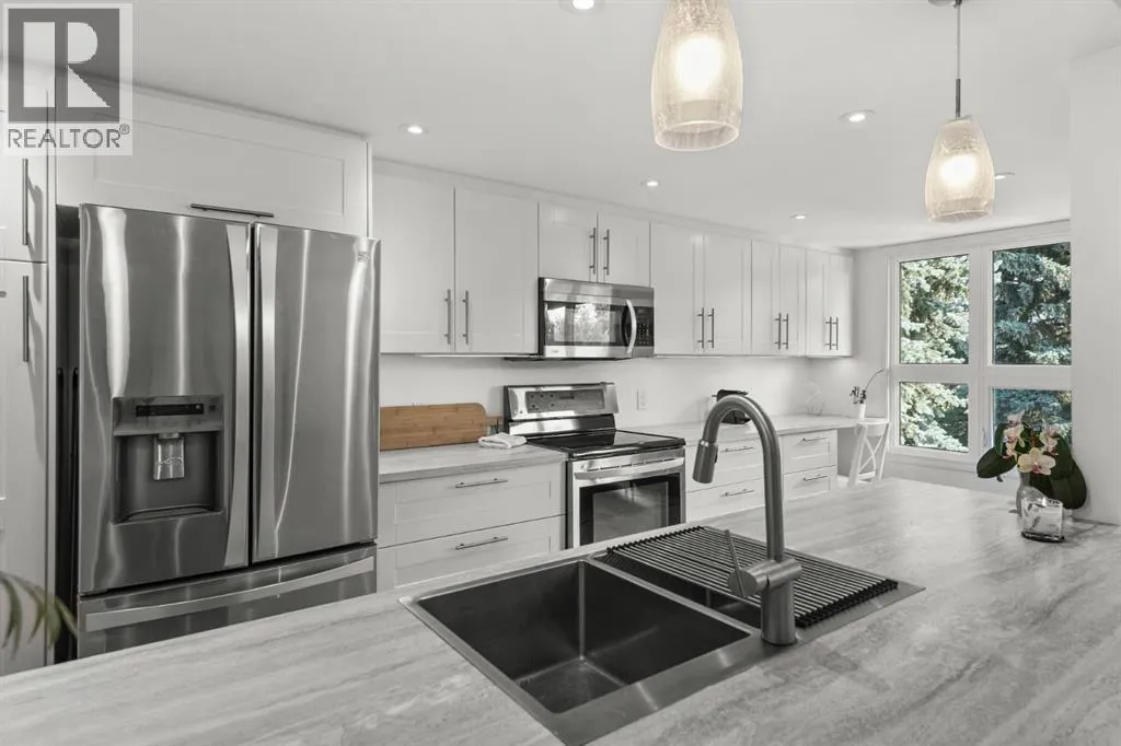 Welcome to 2 Canterbury Gardensâa beautifully updated townhouse nestled in the heart of Canyon Meadows. Offering over 2,000 square feet of well-designed and flexible living space, this home blends comfort, style and arguably unmatched functionality spread across five levels in one of the cityâs most established and sought after neighbourhoods. Step inside and be immediately impressed by the bright and thoughtful renovations. The new kitchen, with its massive island, provides for an open concept living space but, the tiered architecture ensures that the integrity of the defined spaces are maintained. With four spacious bedrooms, thereâs room for the whole family, guests, or a home office setup. Stay cool all summer long with central air conditioning, and enjoy the convenience of an attached garage and a private, fenced yardâideal for pets, children, or relaxed evenings outdoors. This home is part of a well-managed strata, offering peace of mind and a sense of shared pride in ownership. And for 2000 square feet of living space, the condo fees are remarkably low.The neighbourhood itself is rich with mature trees, parks, ponds and pathway systems, its steps to Fish Creek, established schools, and everyday conveniences are just moments away. If you're looking for space, style, and a strong sense of community, 2 Canterbury Gardens is ready to welcome you home. (id:27476)