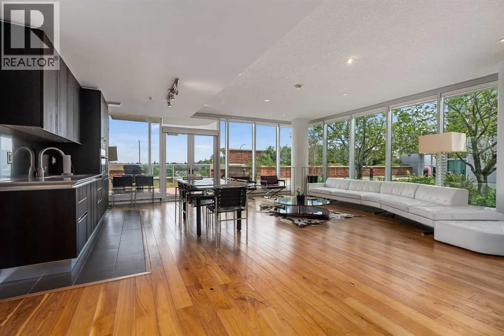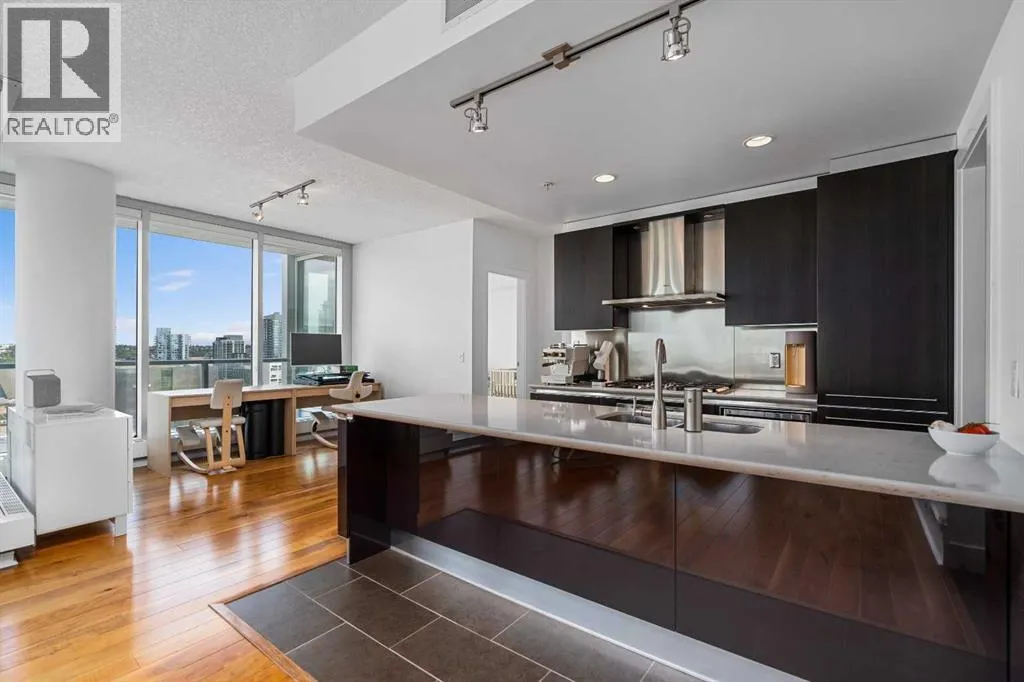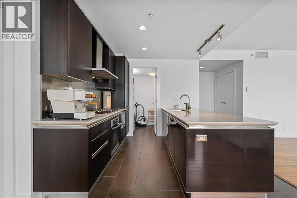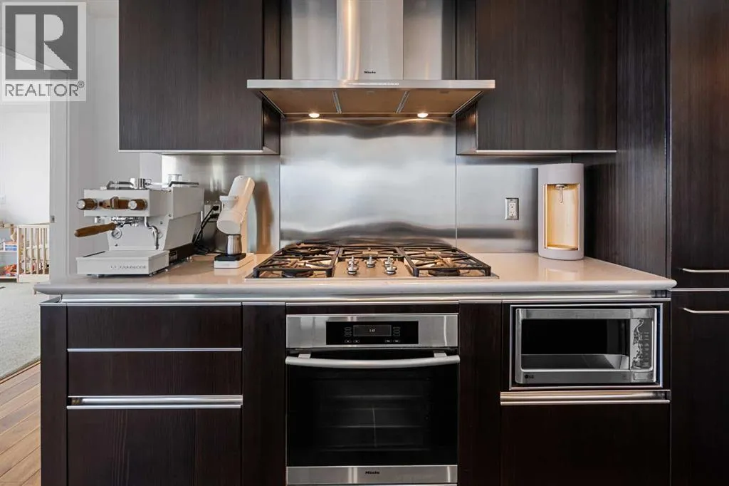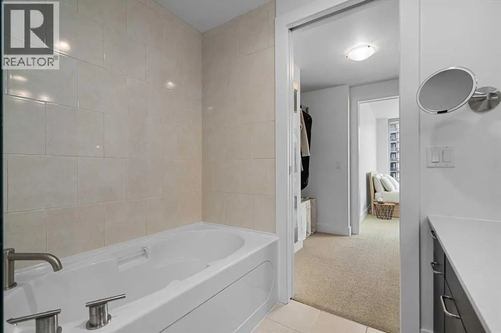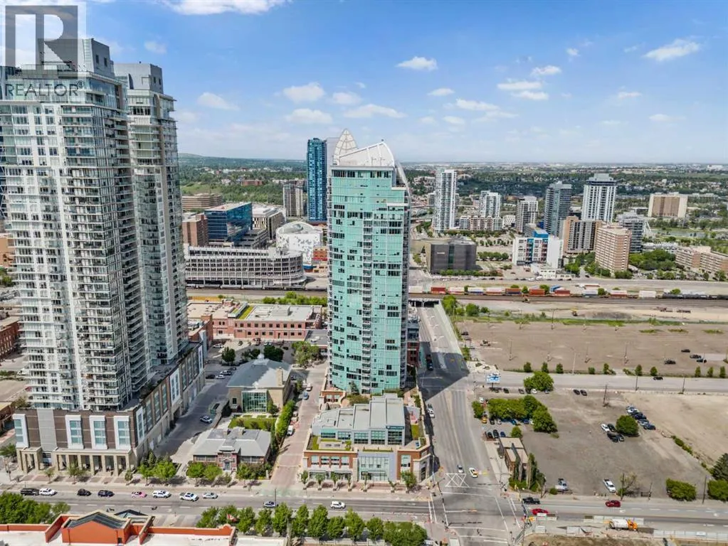 Welcome to Arriva â where refined urban living meets one of Calgaryâs most exciting new developments. Located in the heart of the Beltline, this expansive 1193 sq. ft. corner unit offers 2 bedrooms, 2 bathrooms, titled underground parking, and stunning skyline views. Situated directly beside the future Calgary Event Centre, this is a rare opportunity to live next to the cityâs most anticipated entertainment district. Step into an open-concept layout with soaring 9â ceilings, central air conditioning, and approximately 19 feet of floor-to-ceiling windows that frame panoramic views from the Calgary Tower to East Village. Enjoy summer evenings on your private balcony, complete with a gas line for BBQs. The kitchen is a chefâs dream, featuring a premium Miele appliance package, including a 5-burner gas cooktop, stone countertops, a large peninsula island, and a spacious pantry. A generously sized dining area flows seamlessly into the bright and airy living space â perfect for entertaining. The primary bedroom retreat includes its own private balcony, a custom walkthrough closet, and a spa-inspired 4-piece ensuite with separate glass shower and deep soaker tub. The second bedroom also offers a custom walkthrough closet with direct access to a cheater ensuite â ideal for guests or a home office. Additional features include a titled underground parking stall, an assigned storage locker, and access to Arrivaâs premium amenities â including full-time concierge/security, an elegant lobby and premium social room with a beautiful outdoor patio. This is downtown living at its finest, with unbeatable access to transit, dining, entertainment, the Stampede Grounds, and the upcoming arena. (id:27476)