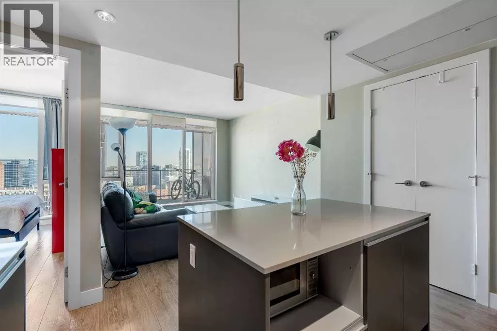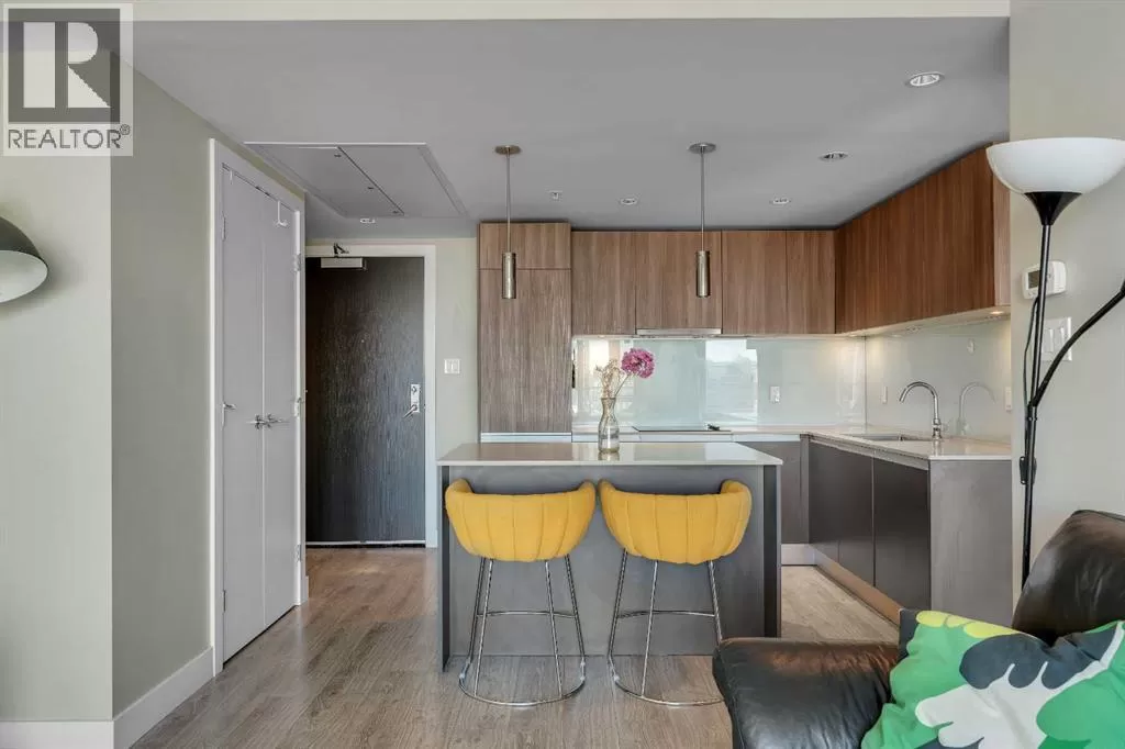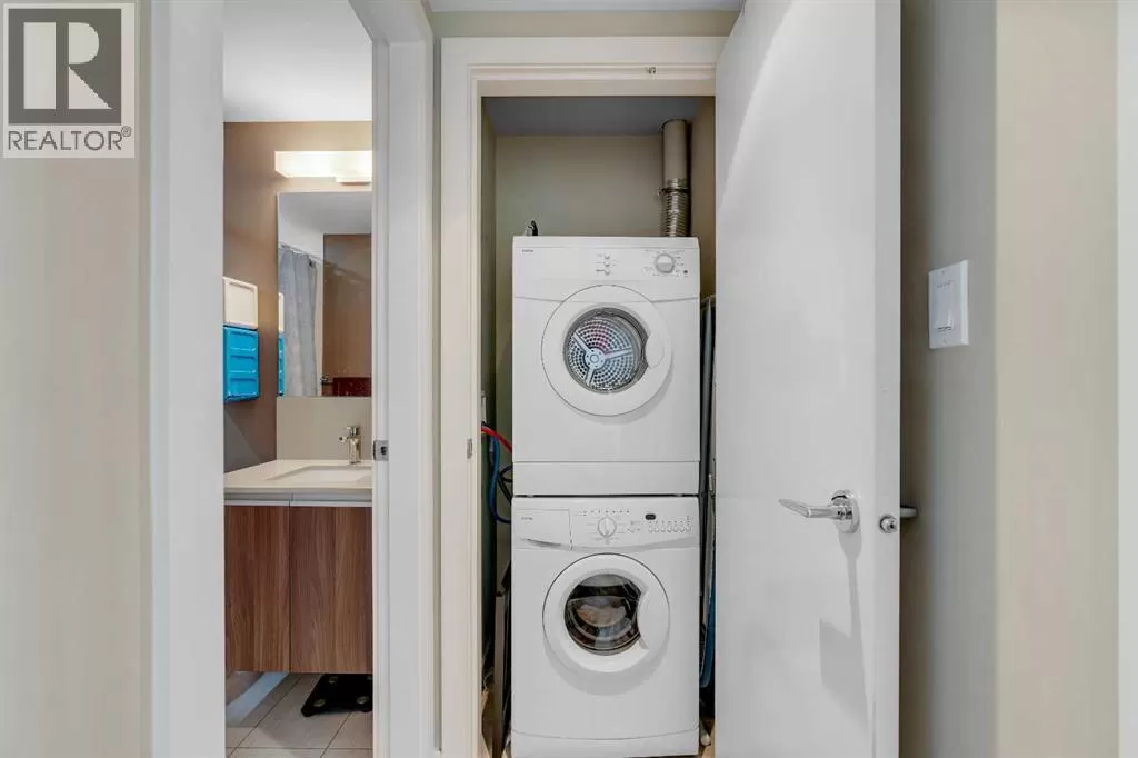 THE ABSOLUTE BEST DEAL IN GAURDIAN TOWERS, THIS IS TRULY A STEAL | CALGARYâS TALLEST RESIDENTIAL TOWER | 1 BEDROOM WITH TITLED PARKING | CITY VIEWS | Located in the heart of the Beltline, this one bedroom residence in The Guardian offers sleek modern living with panoramic city views to the North and West (not facing the other tower). The open concept layout is smartly designed with floor to ceiling windows that flood the space with natural light and connect to a private balcony perfect for morning coffee or evening sunsets. The kitchen is finished with quartz counters, glass tile backsplash, and integrated appliances for a clean contemporary look, while the living and dining area flow seamlessly for everyday living. The bedroom includes a generous closet and the four piece bathroom is finished with modern fixtures and tile. In suite laundry and a titled underground parking stall provide everyday convenience. Residents of The Guardian enjoy premium amenities including a fully equipped fitness centre, social lounge with kitchen, party and recreation rooms, workshop, and concierge with 24 hour security. Just steps to Stampede Park, the BMO Centre, C Train, restaurants, shops, and entertainment, this home is ideal for first time buyers, young professionals, or investors looking for a prime downtown location. (id:27476)
