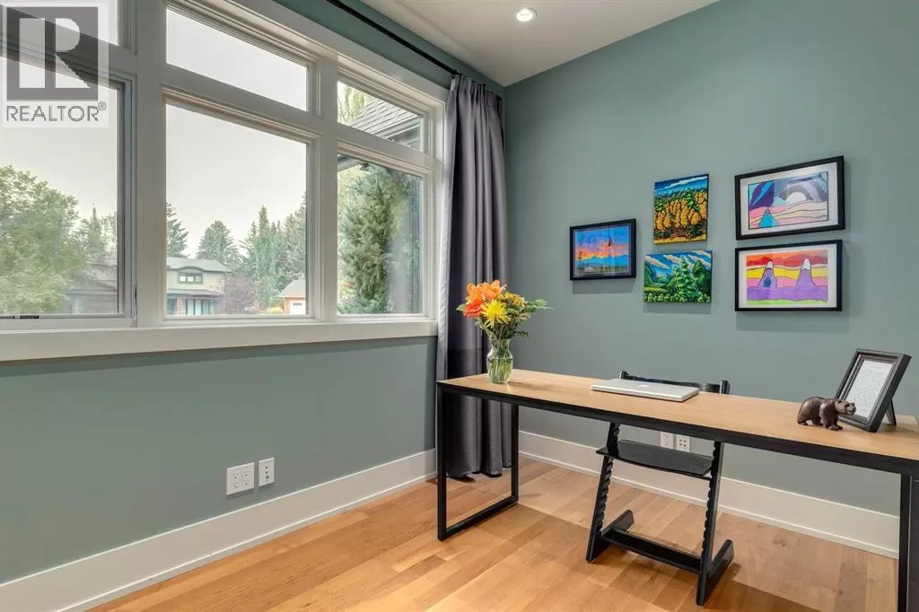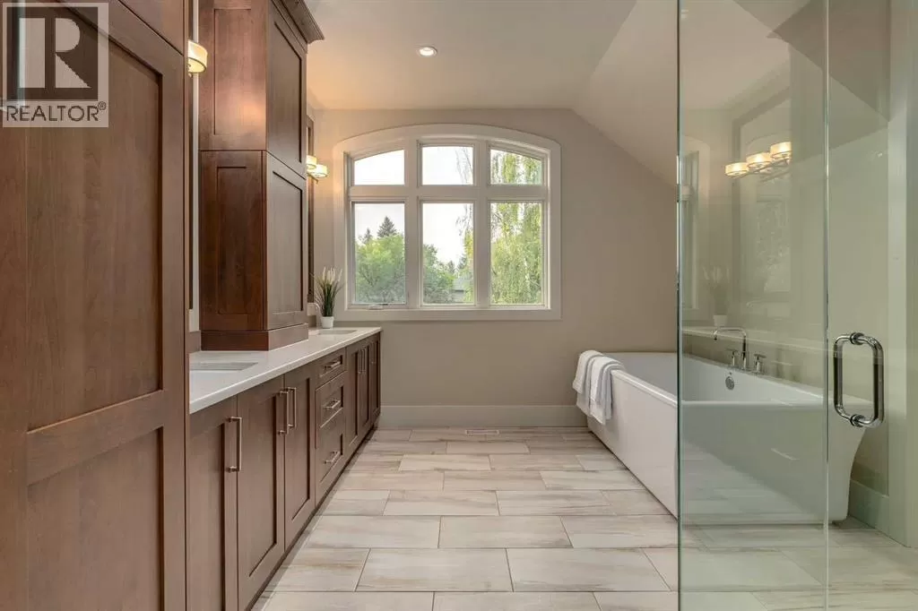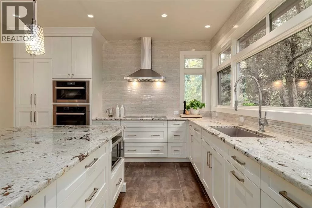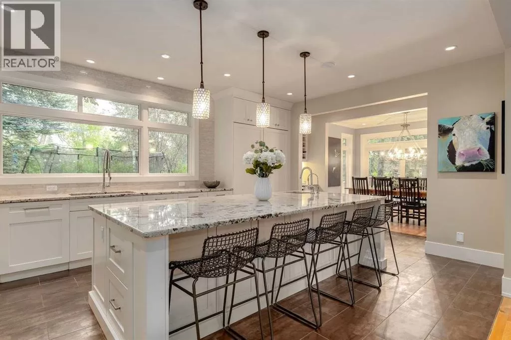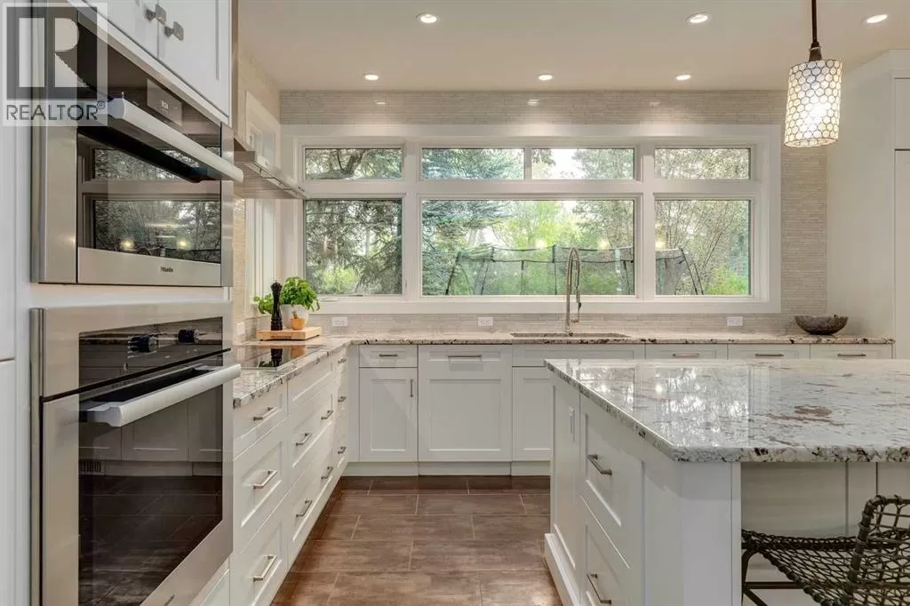 * SEE VIDEO * Perfectly tucked at the end of a quiet cul-de-sac in Varsity, and backing directly onto a sprawling park, this exceptional family home combines privacy, convenience, and long-term value in one of Calgaryâs most sought-after neighbourhoods. The location is hard to beatâjust a 7-minute walk to the University District, steps from Market Mall, Bowmont Park, and the communityâs extensive pathway system.The exterior showcases timeless Rundle stone with EIFS stucco, accented by Douglas Fir beams and an oversized 8-ft solid wood entry door. Triple-glazed windows, a wheelchair-accessible ramp, and a professionally finished aggregate driveway highlight the homeâs quality craftsmanship.Inside, 9-ft ceilings, site-finished White Oak hardwood, and custom millwork set a warm and welcoming tone. The kitchen is built for everyday living and entertaining, featuring an oversized island with prep sink, granite counters, Legacy Kitchen custom cabinetry, and a full suite of premium appliancesâincluding Miele induction cooktop, steam oven, wall oven, and paneled dishwasher, plus a Thermador paneled fridge/freezer and Marvel wine fridge with bar area. The living roomâs sandstone fireplace surround and custom built-ins offer comfort and style, while the family room captures expansive park views. A private office, dining room, and practical mudroom complete the main floor.Upstairs, the primary suite offers a relaxing retreat with a spa-like ensuite featuring heated floors, a curbless shower, and a soaker tub. Three additional bedrooms share a thoughtfully designed Jack & Jill bathroom, while a bonus room and full laundry add everyday functionality.The finished basement expands the living space with two more bedrooms, a media room with projector and surround sound, a wet bar, and in-slab heating throughoutâperfect for movie nights or hosting guests.With dual furnaces, boiler-driven in-slab heating, HRV system, rough-ins for both A/C and a hot tub, plus multiple gas lines f or outdoor living, this home was designed for comfort and efficiency.A rare opportunity to own a park-backing home in Varsity Villageâsteps to nature, shops, restaurants, recreation, and Silver Springs Golf Courseâwhere families can truly thrive. Book your showing today! (id:27476)
