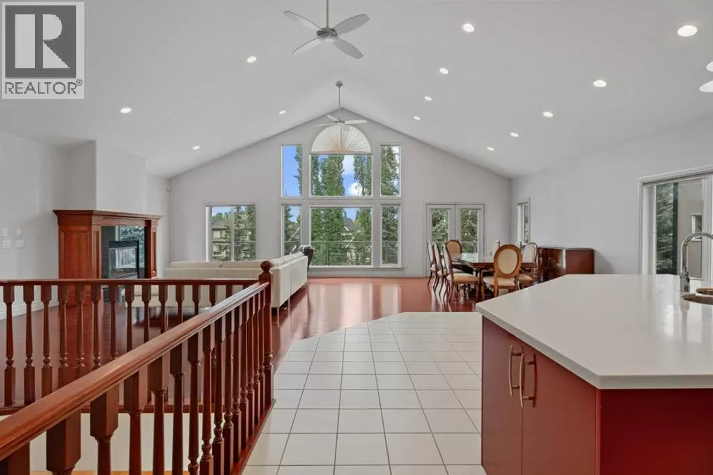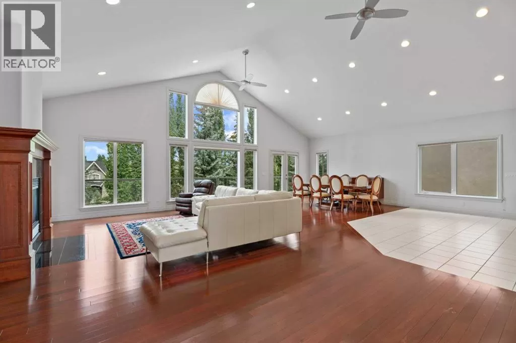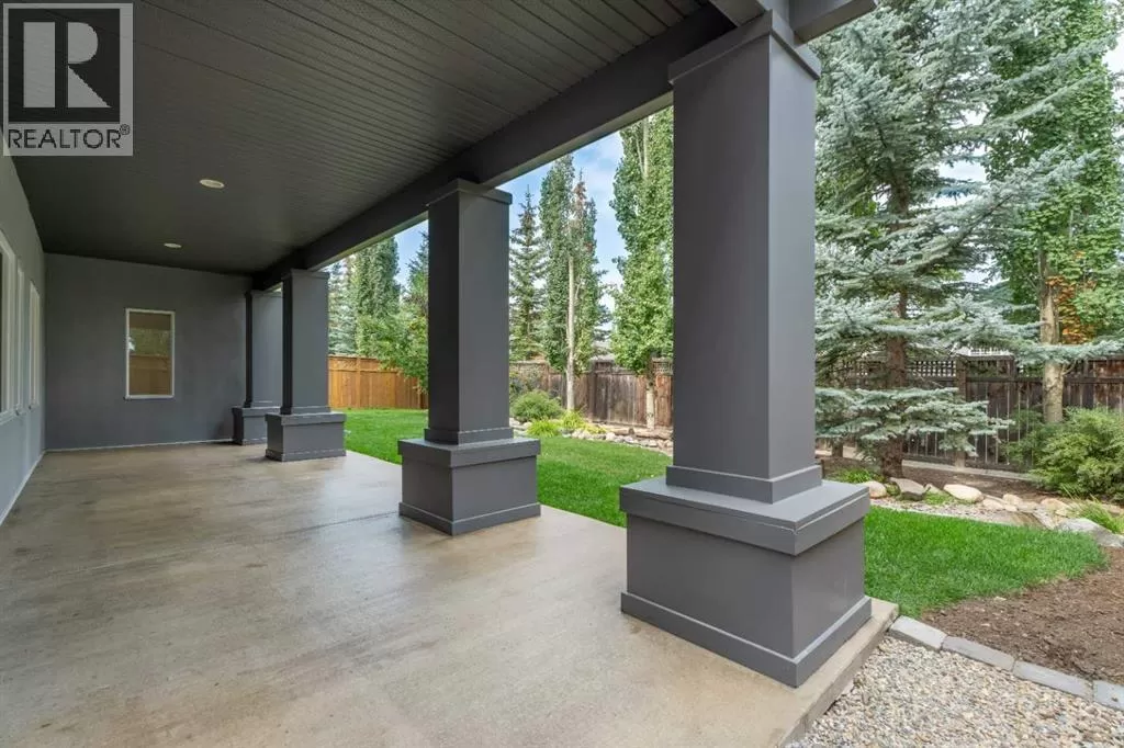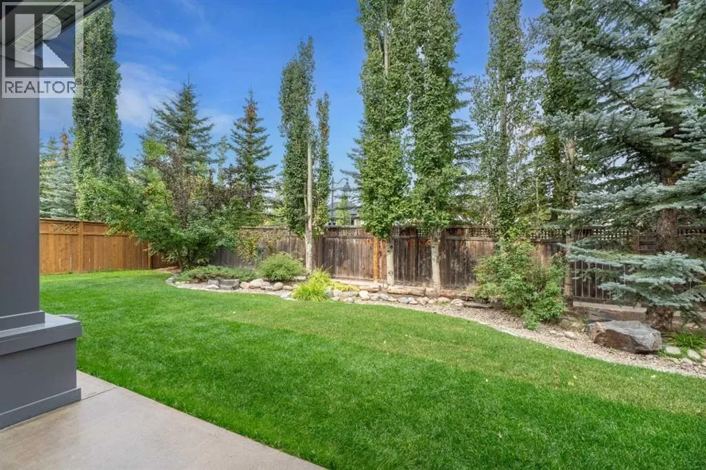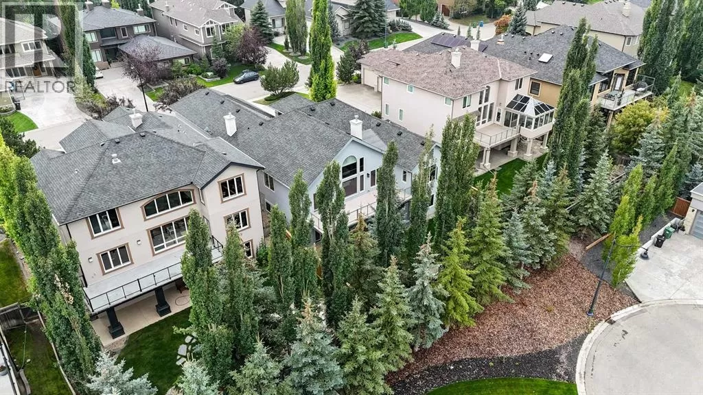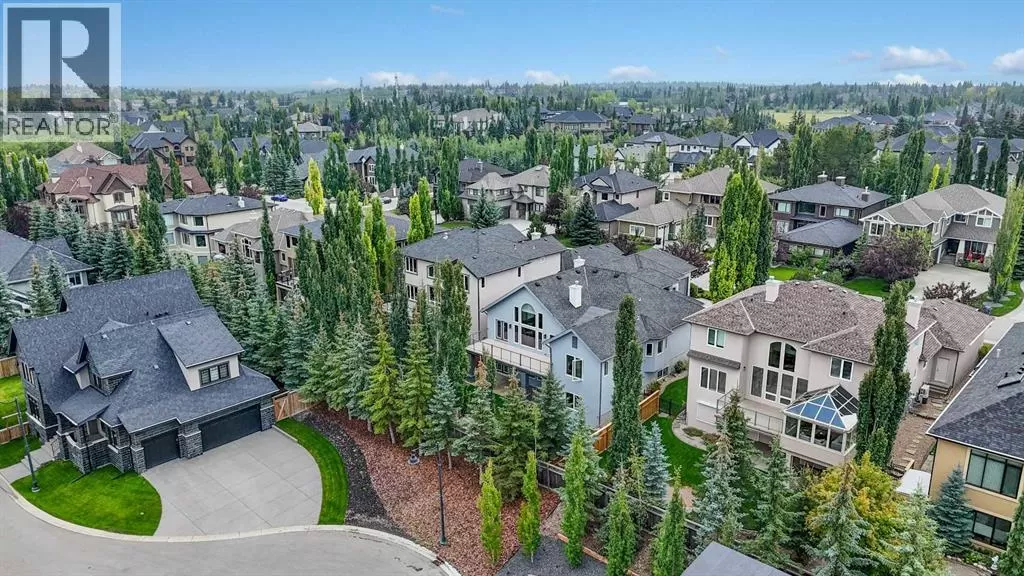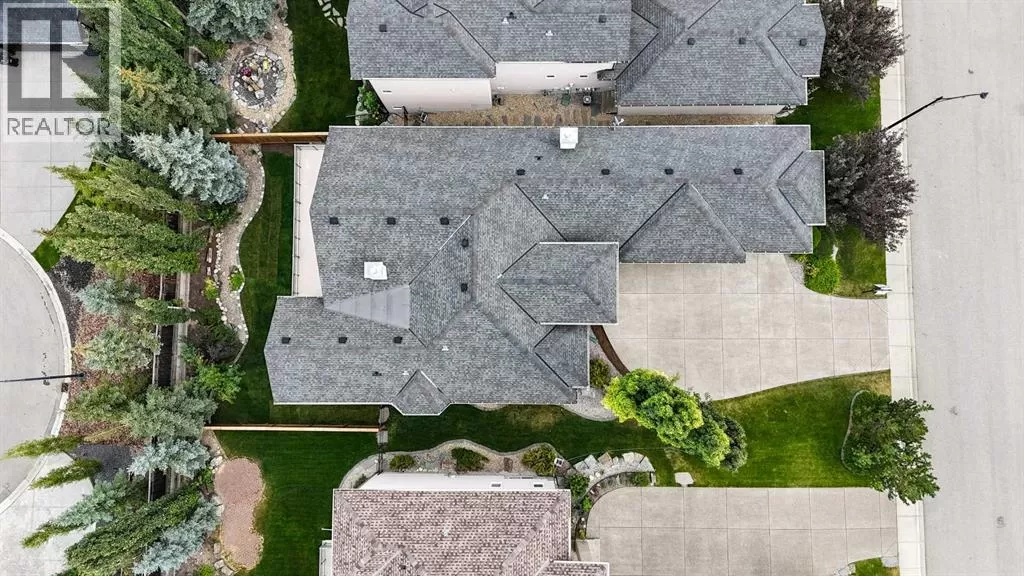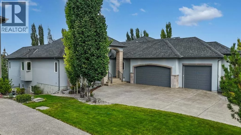 Welcome to this exceptional estate residence in the prestigious community of Aspen, perfectly situated on a beautifully landscaped 8,471 sq. ft. lot that offers privacy, mature trees, and no homes directly behind. This immaculate bungalow showcases timeless craftsmanship with over 4,600 sq. ft. of living space, thoughtfully designed for both everyday comfort and elegant entertaining. From the moment you arrive, the home makes a statement with its oversized triple garage, a newly refinished driveway with ample room for additional parking, and stunning curb appeal that sets the tone for whatâs inside. Step into the main level where soaring vaulted ceilings and expansive windows create a bright, airy atmosphere that is both warm and inviting. The open floor plan flows seamlessly between the living, dining, and kitchen areas, highlighted by a large deck that extends the living space outdoors and overlooks the lush, private backyard. A spacious front office with a nearby 4-piece bath provides the ideal work-from-home setup or easily functions as a second main-floor bedroom. The primary retreat is tucked away for privacy and comfort, featuring a generous 5-piece ensuite with dual vanities, a separate soaker tub and shower, and a private water closet. A large laundry and mudroom with sink adds practicality, while the thoughtful layout ensures convenience throughout. The professionally developed walkout basement nearly doubles the living space, offering a massive recreation and games room perfect for family gatherings or entertaining guests. Comfort is paramount with two dedicated in-floor heating zonesâone for the bedroom wing, which includes two spacious bedrooms and a 4-piece bathroom, and another for the expansive recreation space. A freshly sealed lower-level patio opens onto the meticulously maintained backyard, where mature landscaping, newer fencing, and carefully designed outdoor spaces create a peaceful oasis. Additional highlights of this home include central air conditioning for year-round comfort, a water softener, built-in central vacuum with attachments, and abundant storage space. Every detail reflects the pride of ownership and meticulous care that has gone into maintaining this home. Combining an enviable location in Aspenâs sought-after estate area with a rare blend of space, privacy, and elegance, this residence offers a truly unique opportunity to own a forever home in one of Calgaryâs premier communities. (id:27476)