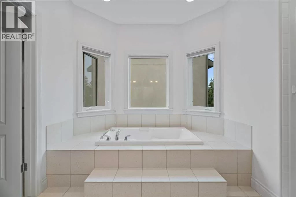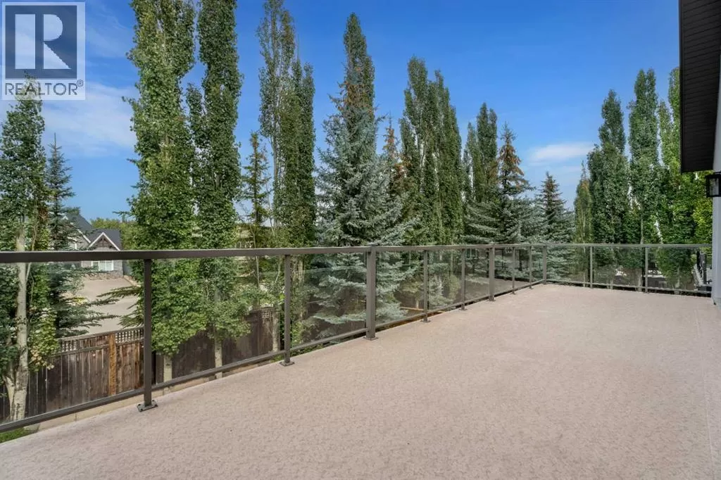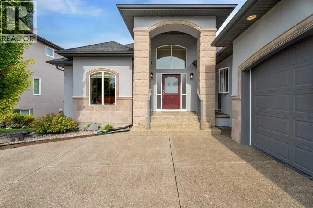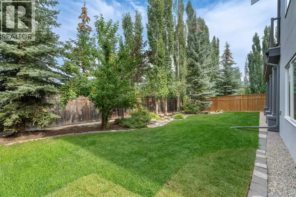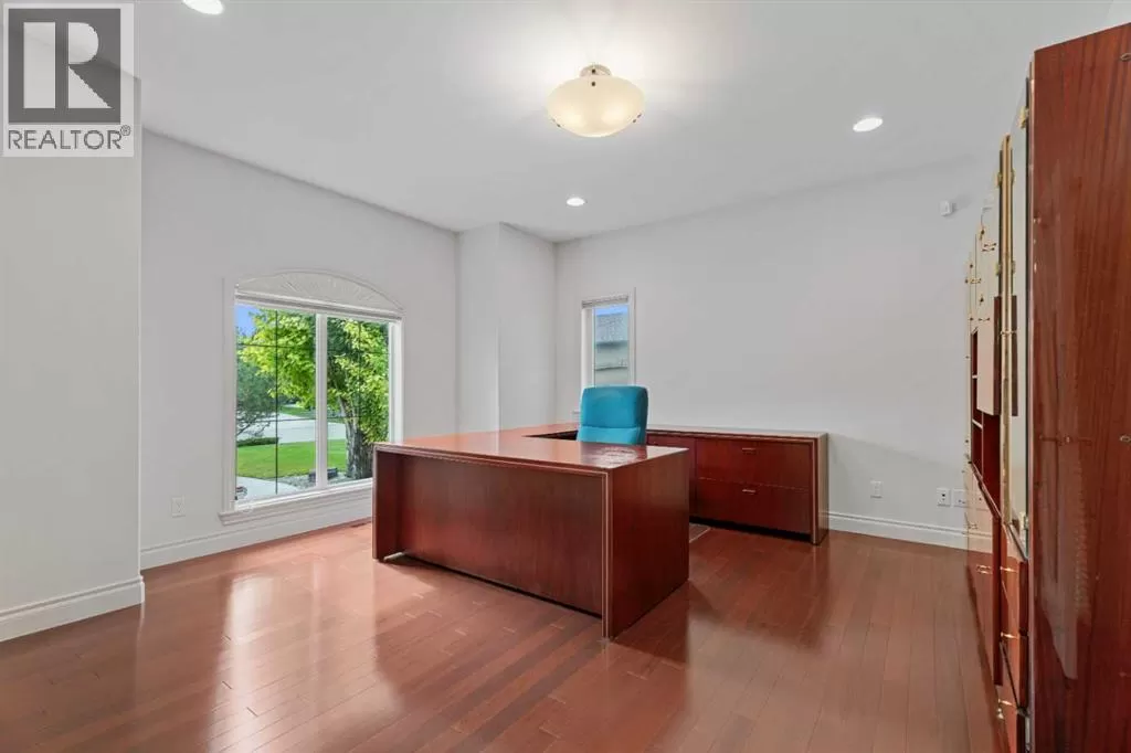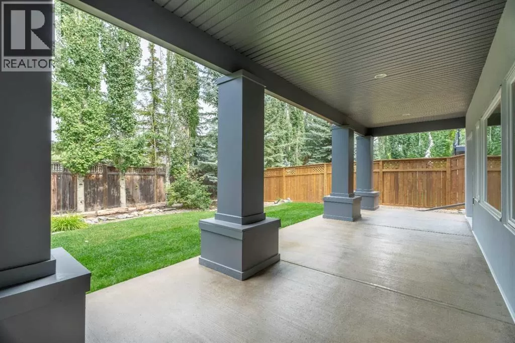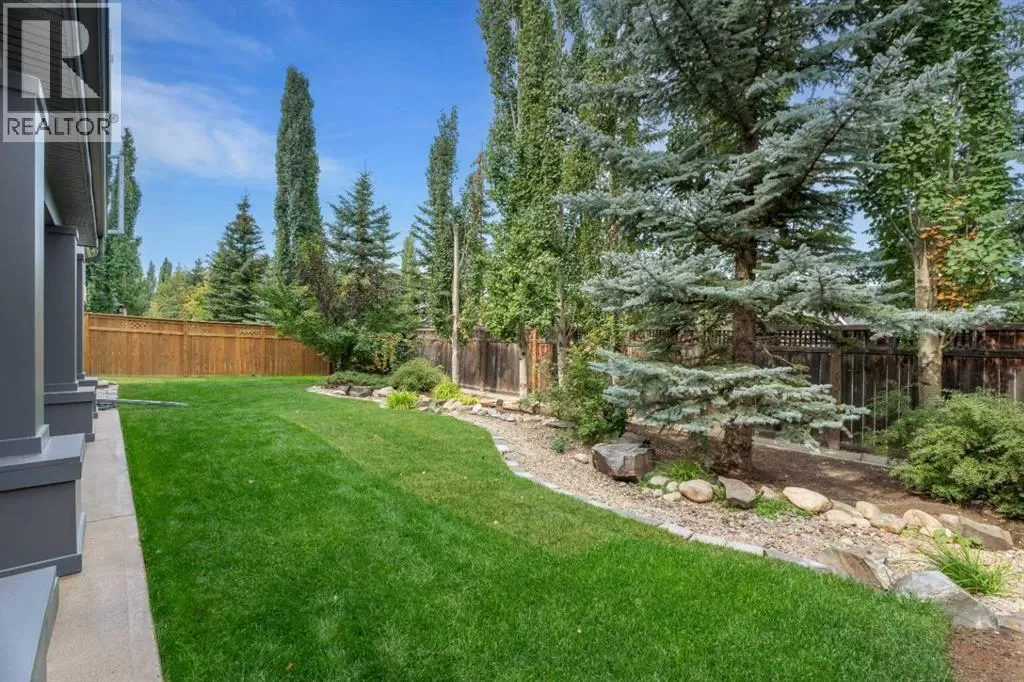 Welcome to this exceptional estate residence in the prestigious community of Aspen, perfectly situated on a beautifully landscaped 8,471 sq. ft. lot that offers privacy, mature trees, and no homes directly behind. This immaculate bungalow showcases timeless craftsmanship with over 4,600 sq. ft. of living space, thoughtfully designed for both everyday comfort and elegant entertaining. From the moment you arrive, the home makes a statement with its oversized triple garage, a newly refinished driveway with ample room for additional parking, and stunning curb appeal that sets the tone for whatâs inside. Step into the main level where soaring vaulted ceilings and expansive windows create a bright, airy atmosphere that is both warm and inviting. The open floor plan flows seamlessly between the living, dining, and kitchen areas, highlighted by a large deck that extends the living space outdoors and overlooks the lush, private backyard. A spacious front office with a nearby 4-piece bath provides the ideal work-from-home setup or easily functions as a second main-floor bedroom. The primary retreat is tucked away for privacy and comfort, featuring a generous 5-piece ensuite with dual vanities, a separate soaker tub and shower, and a private water closet. A large laundry and mudroom with sink adds practicality, while the thoughtful layout ensures convenience throughout. The professionally developed walkout basement nearly doubles the living space, offering a massive recreation and games room perfect for family gatherings or entertaining guests. Comfort is paramount with two dedicated in-floor heating zonesâone for the bedroom wing, which includes two spacious bedrooms and a 4-piece bathroom, and another for the expansive recreation space. A freshly sealed lower-level patio opens onto the meticulously maintained backyard, where mature landscaping, newer fencing, and carefully designed outdoor spaces create a peaceful oasis. Additional highlights of this home include central air conditioning for year-round comfort, a water softener, built-in central vacuum with attachments, and abundant storage space. Every detail reflects the pride of ownership and meticulous care that has gone into maintaining this home. Combining an enviable location in Aspenâs sought-after estate area with a rare blend of space, privacy, and elegance, this residence offers a truly unique opportunity to own a forever home in one of Calgaryâs premier communities. (id:27476)