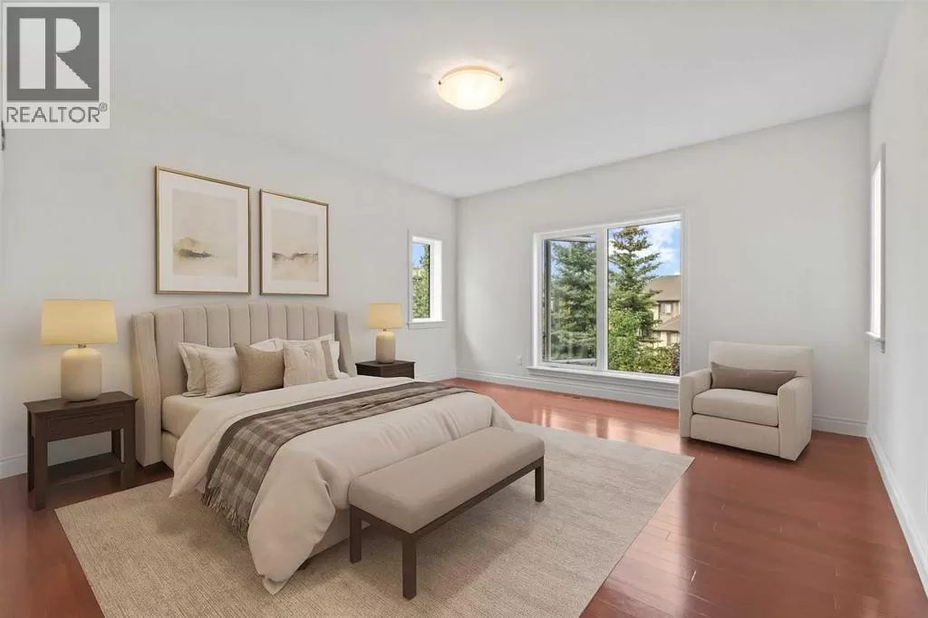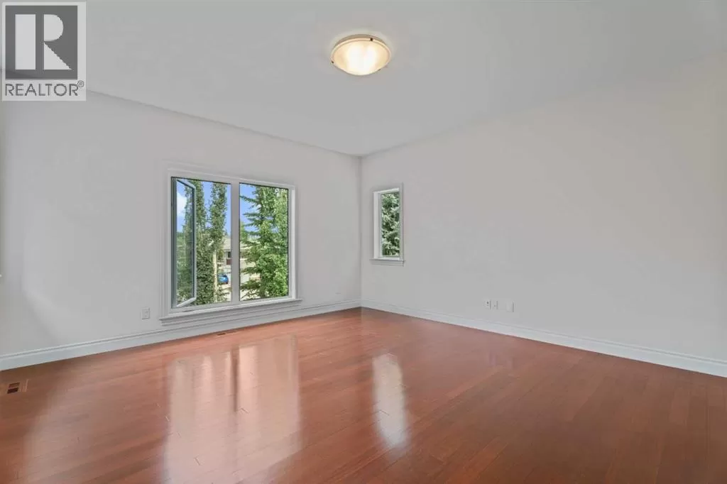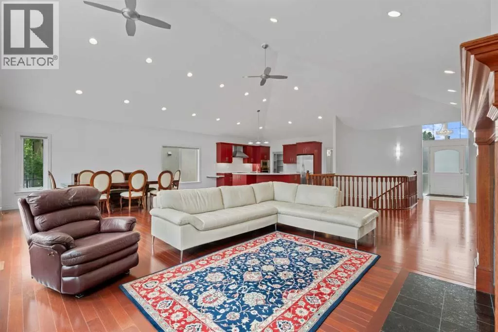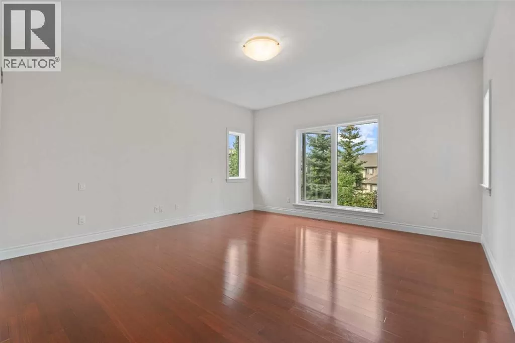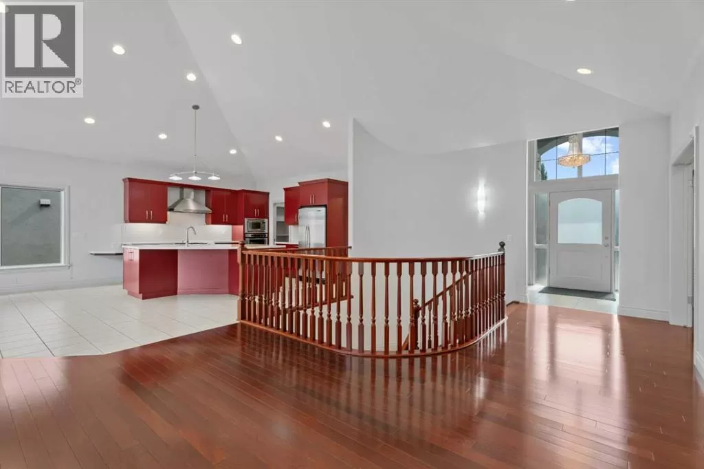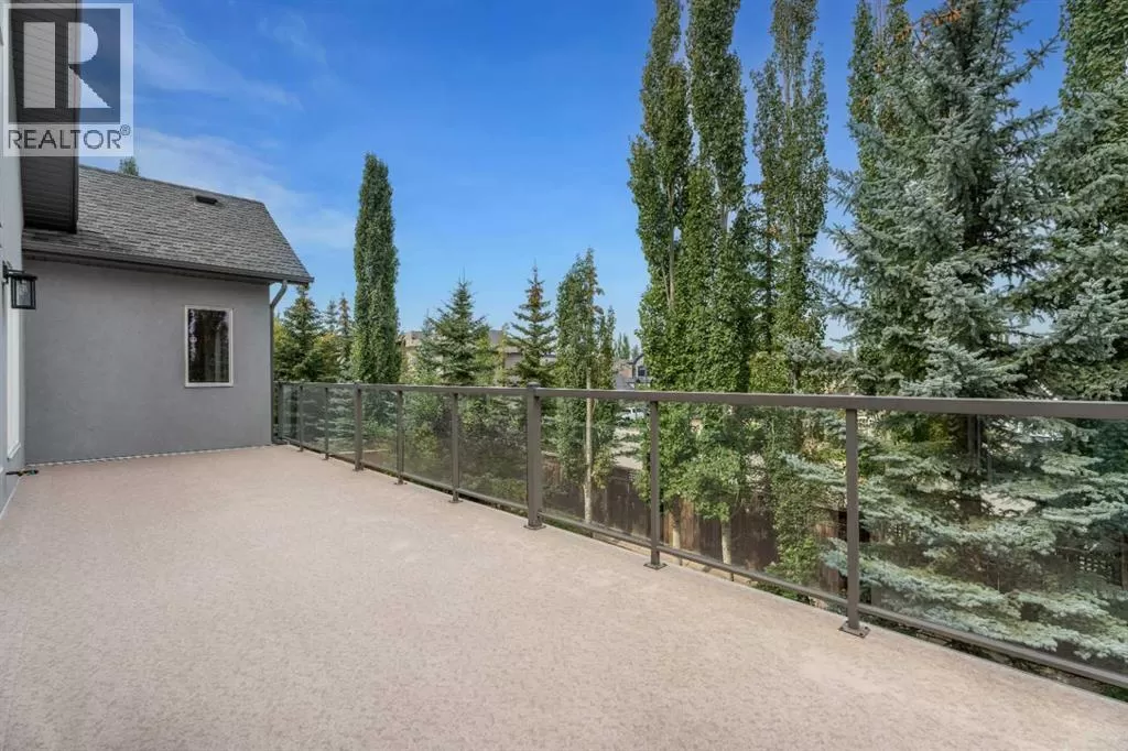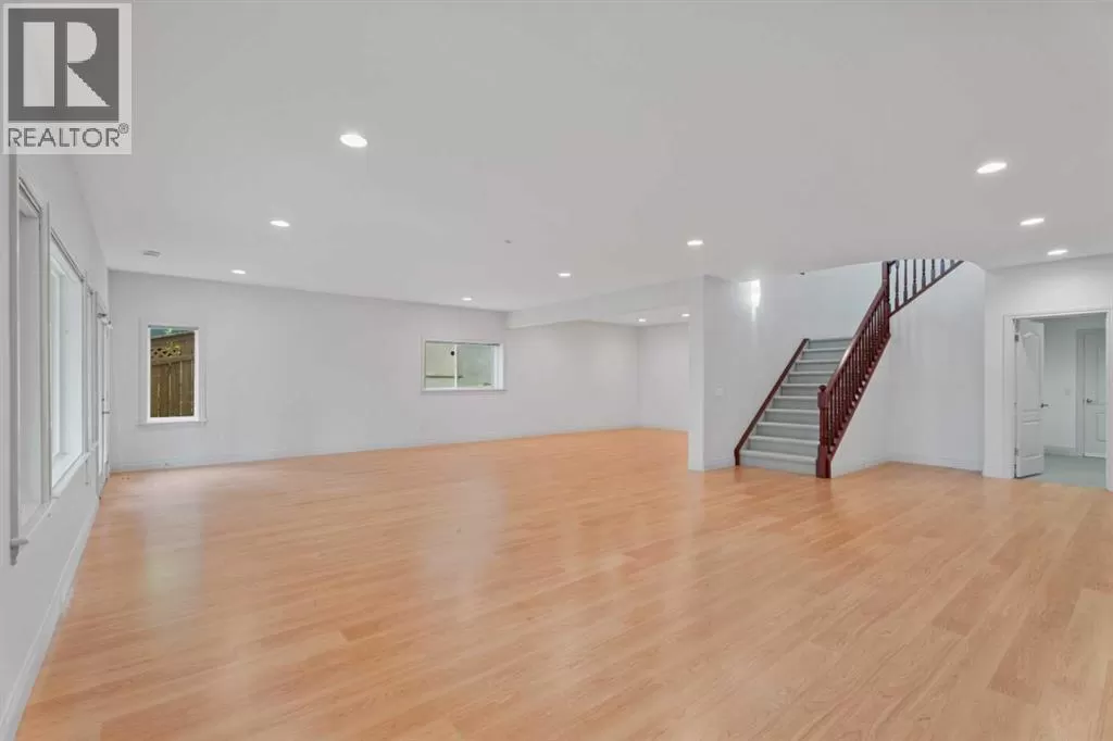 Welcome to this exceptional estate residence in the prestigious community of Aspen, perfectly situated on a beautifully landscaped 8,471 sq. ft. lot that offers privacy, mature trees, and no homes directly behind. This immaculate bungalow showcases timeless craftsmanship with over 4,600 sq. ft. of living space, thoughtfully designed for both everyday comfort and elegant entertaining. From the moment you arrive, the home makes a statement with its oversized triple garage, a newly refinished driveway with ample room for additional parking, and stunning curb appeal that sets the tone for whatâs inside. Step into the main level where soaring vaulted ceilings and expansive windows create a bright, airy atmosphere that is both warm and inviting. The open floor plan flows seamlessly between the living, dining, and kitchen areas, highlighted by a large deck that extends the living space outdoors and overlooks the lush, private backyard. A spacious front office with a nearby 4-piece bath provides the ideal work-from-home setup or easily functions as a second main-floor bedroom. The primary retreat is tucked away for privacy and comfort, featuring a generous 5-piece ensuite with dual vanities, a separate soaker tub and shower, and a private water closet. A large laundry and mudroom with sink adds practicality, while the thoughtful layout ensures convenience throughout. The professionally developed walkout basement nearly doubles the living space, offering a massive recreation and games room perfect for family gatherings or entertaining guests. Comfort is paramount with two dedicated in-floor heating zonesâone for the bedroom wing, which includes two spacious bedrooms and a 4-piece bathroom, and another for the expansive recreation space. A freshly sealed lower-level patio opens onto the meticulously maintained backyard, where mature landscaping, newer fencing, and carefully designed outdoor spaces create a peaceful oasis. Additional highlights of this home include central air conditioning for year-round comfort, a water softener, built-in central vacuum with attachments, and abundant storage space. Every detail reflects the pride of ownership and meticulous care that has gone into maintaining this home. Combining an enviable location in Aspenâs sought-after estate area with a rare blend of space, privacy, and elegance, this residence offers a truly unique opportunity to own a forever home in one of Calgaryâs premier communities. (id:27476)