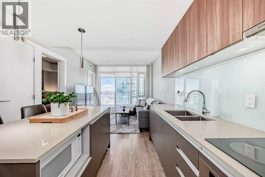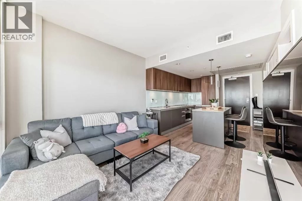 Welcome to this well-maintained 1 BED in the heart of Beltline, one of Calgaryâs most vibrant inner-city communities. Perched high on the 21st floor, this bright and functional unit offers stunning city and river views, modern finishes, and unbeatable downtown convenience. Step inside to discover a thoughtfully designed layout featuring a sleek kitchen with integrated appliances, quartz countertops, and full-height cabinetry. The central island provides additional workspace and casual seating, seamlessly connecting to the living area thatâs flooded with natural light from floor-to-ceiling windows. The private balcony offers a front-row seat to sweeping skyline viewsâperfect for unwinding after a long day. The bedroom is spacious and well-separated from the den, offering privacy and flexibility whether youâre working from home or setting up a creative corner. A modern 4-piece bathroom and in-suite laundry add both comfort and function to the space. This unit is meticulously maintained, making it ideal for professionals, first-time buyers, or investors seeking a low-maintenance lifestyle in the urban core. Set within a clean and secure building, this home is just steps from cafes, restaurants, parks, the Stampede Grounds, and convenient LRT access. With the best of city living at your doorstep, every detail of this home supports a vibrant and convenient lifestyle. Schedule your viewing today! (id:27476)