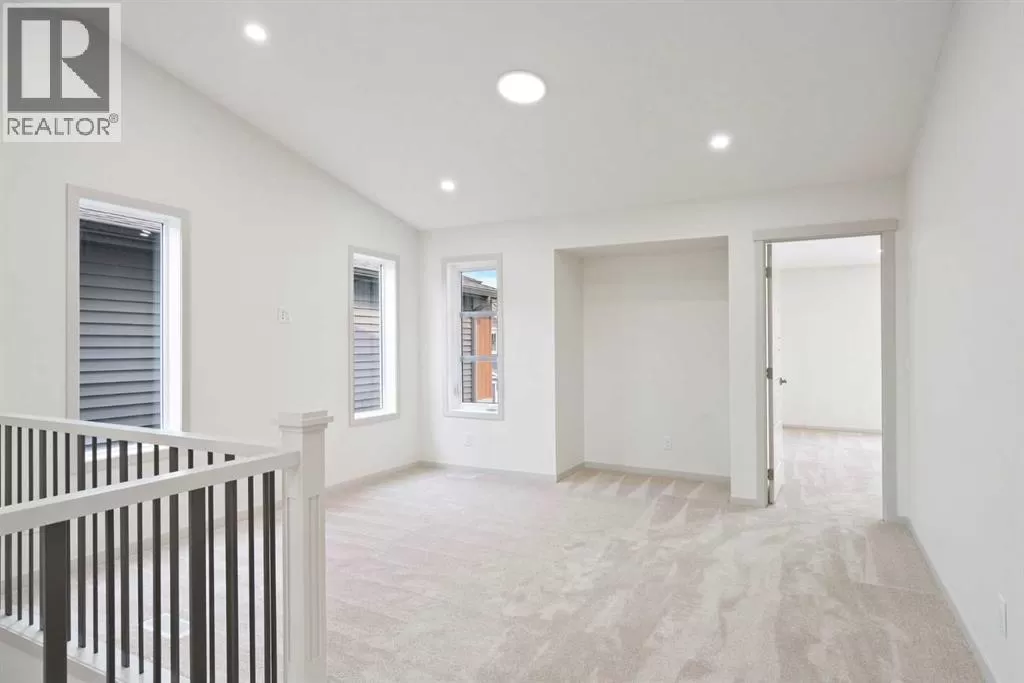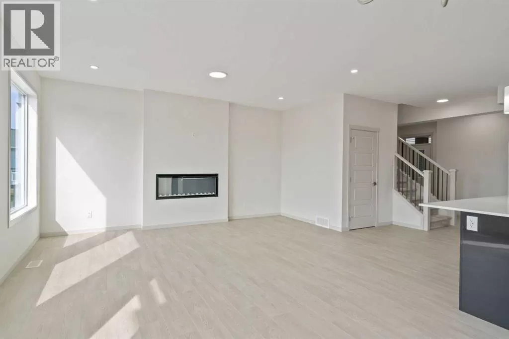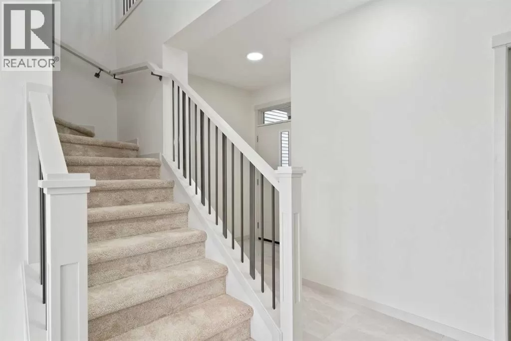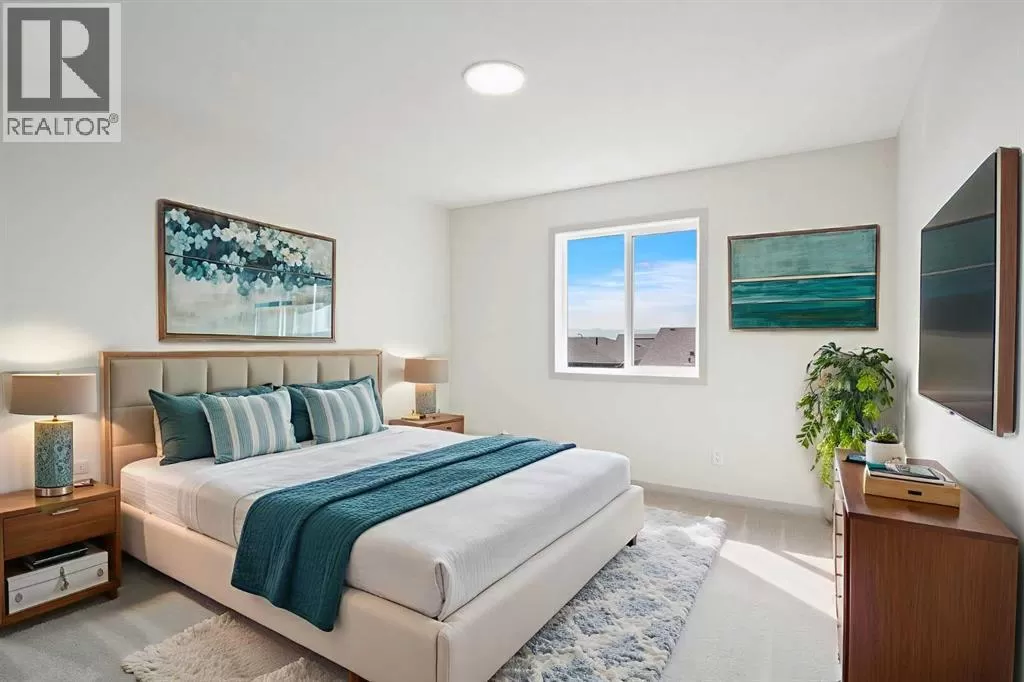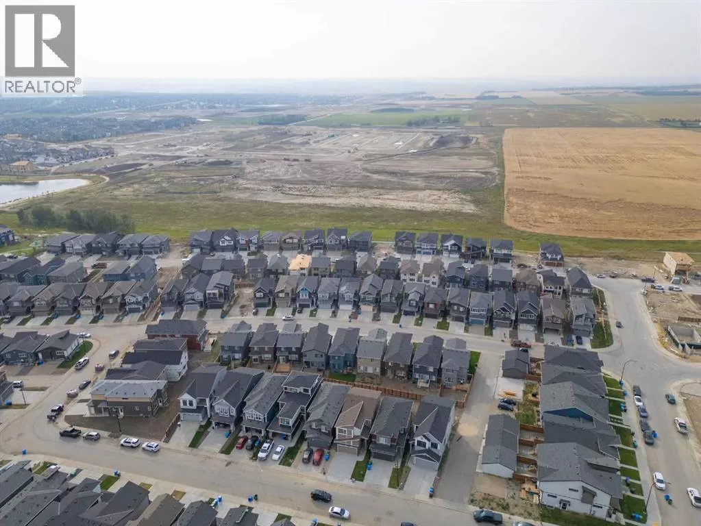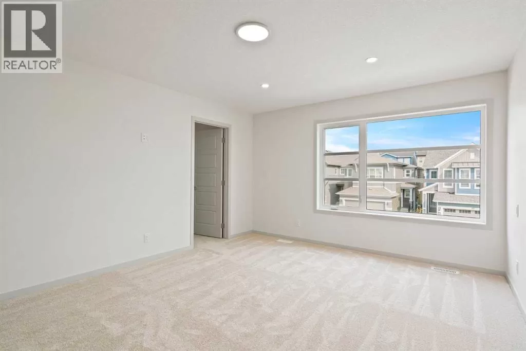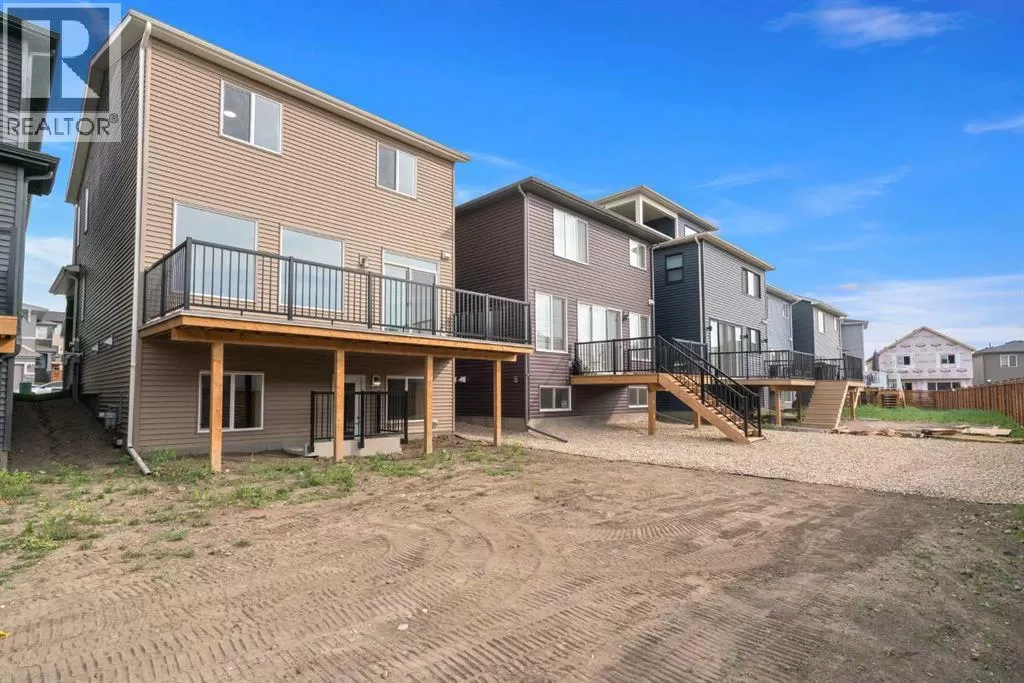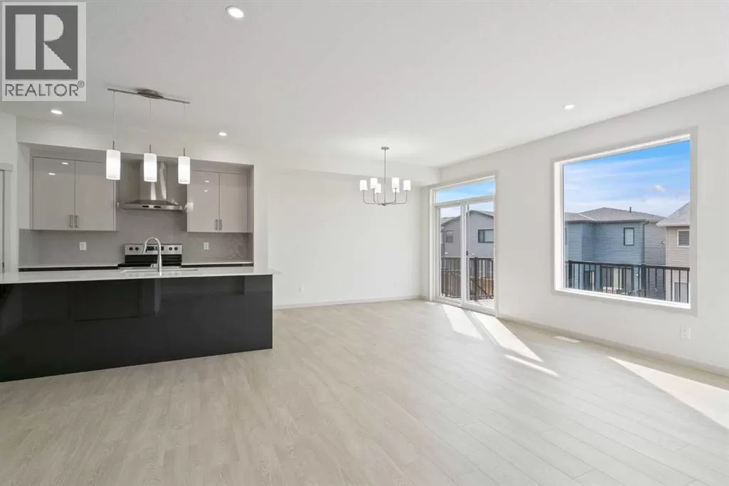 Welcome to this high-quality, 4 bedrooms and 3.5 bathrooms brand new built home by Morrison Homes, located in the highly sought-after north community of Livingston in Calgary. The home is close to parks, playgrounds, walking and biking pathways, shopping and easy access to Stoney Trail, Deerfoot Trail, and Cross Iron Mills. Upon entry, you are impressed by the Entrance with a picture window and beautiful tile floor, and wrought iron spindles on the stairs leading to the upper level, an open concept design with 9â ceilings, LVP flooring throughout, and enhanced by large west facing windows allowing for tons of natural light in. The main floor also provides a gourmet kitchen complete with a large island, upgraded stainless steel appliances, built in microwave, chimney hood fan, upgraded quartz countertop, a walk-through pantry and a big dining area with two large sliding doors leading out onto a large deck with vinyl surface. The spacious living room boasts an electric fireplace. Additionally, there is a mudroom and powder room on this level. Upstairs features a bonus room with vaulted ceiling, a large primary bedroom with a large window, a walk-in closet, and a 5-pc ensuite with double vanities, a shower, and a tub. Two additional generously sized bedrooms with big windows and great mountain views, a 4-pc family bathroom, and a laundry closet complete the second floor. The walkup fully finished basement provides a bright spacious recreation room with Kitchen rough-in, a fourth room with large window and a third 4-pc bathroom. This home also comes with the New Home Warranty, offering peace of mind. Livingston is one of Calgary's most desirable neighborhoods, offering incredible amenities, including the 35,000 sq. ft. Livingston Hub, which features an ice rink, water spray park, gymnasium, playground, tennis court, banquet facility, community kitchen, daycare space, and more. Call to view! (id:27476)
