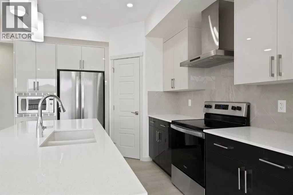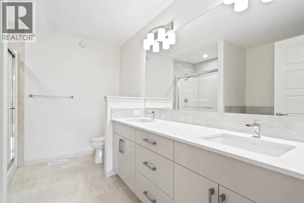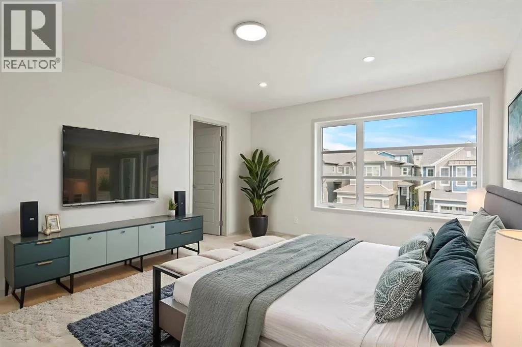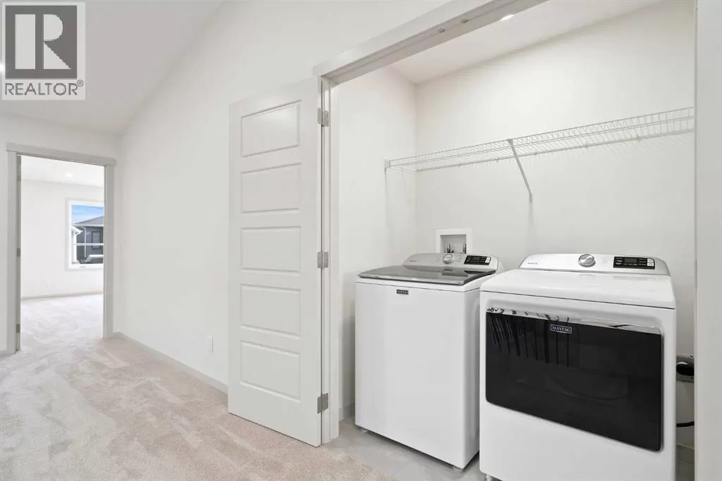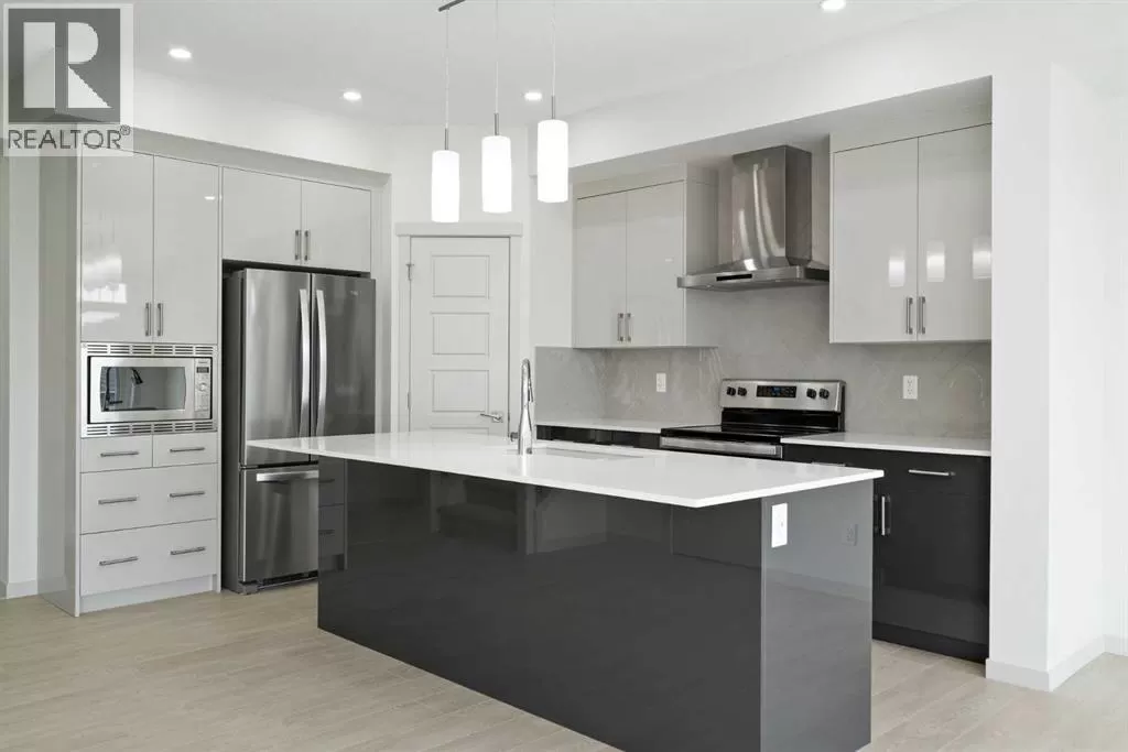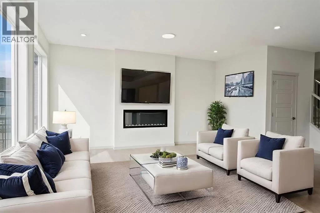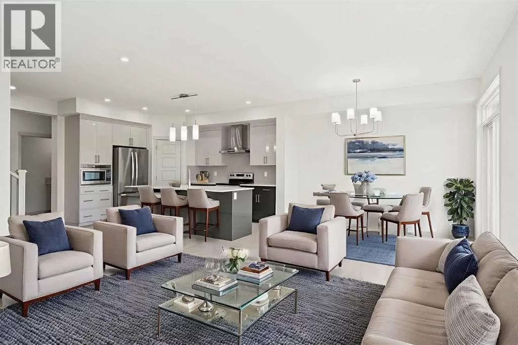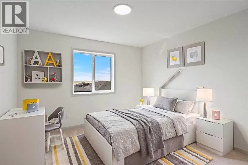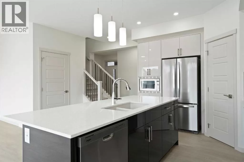 Welcome to this high-quality, 4 bedrooms and 3.5 bathrooms brand new built home by Morrison Homes, located in the highly sought-after north community of Livingston in Calgary. The home is close to parks, playgrounds, walking and biking pathways, shopping and easy access to Stoney Trail, Deerfoot Trail, and Cross Iron Mills. Upon entry, you are impressed by the Entrance with a picture window and beautiful tile floor, and wrought iron spindles on the stairs leading to the upper level, an open concept design with 9â ceilings, LVP flooring throughout, and enhanced by large west facing windows allowing for tons of natural light in. The main floor also provides a gourmet kitchen complete with a large island, upgraded stainless steel appliances, built in microwave, chimney hood fan, upgraded quartz countertop, a walk-through pantry and a big dining area with two large sliding doors leading out onto a large deck with vinyl surface. The spacious living room boasts an electric fireplace. Additionally, there is a mudroom and powder room on this level. Upstairs features a bonus room with vaulted ceiling, a large primary bedroom with a large window, a walk-in closet, and a 5-pc ensuite with double vanities, a shower, and a tub. Two additional generously sized bedrooms with big windows and great mountain views, a 4-pc family bathroom, and a laundry closet complete the second floor. The walkup fully finished basement provides a bright spacious recreation room with Kitchen rough-in, a fourth room with large window and a third 4-pc bathroom. This home also comes with the New Home Warranty, offering peace of mind. Livingston is one of Calgary's most desirable neighborhoods, offering incredible amenities, including the 35,000 sq. ft. Livingston Hub, which features an ice rink, water spray park, gymnasium, playground, tennis court, banquet facility, community kitchen, daycare space, and more. Call to view! (id:27476)