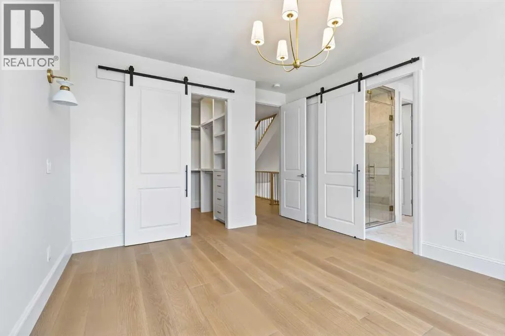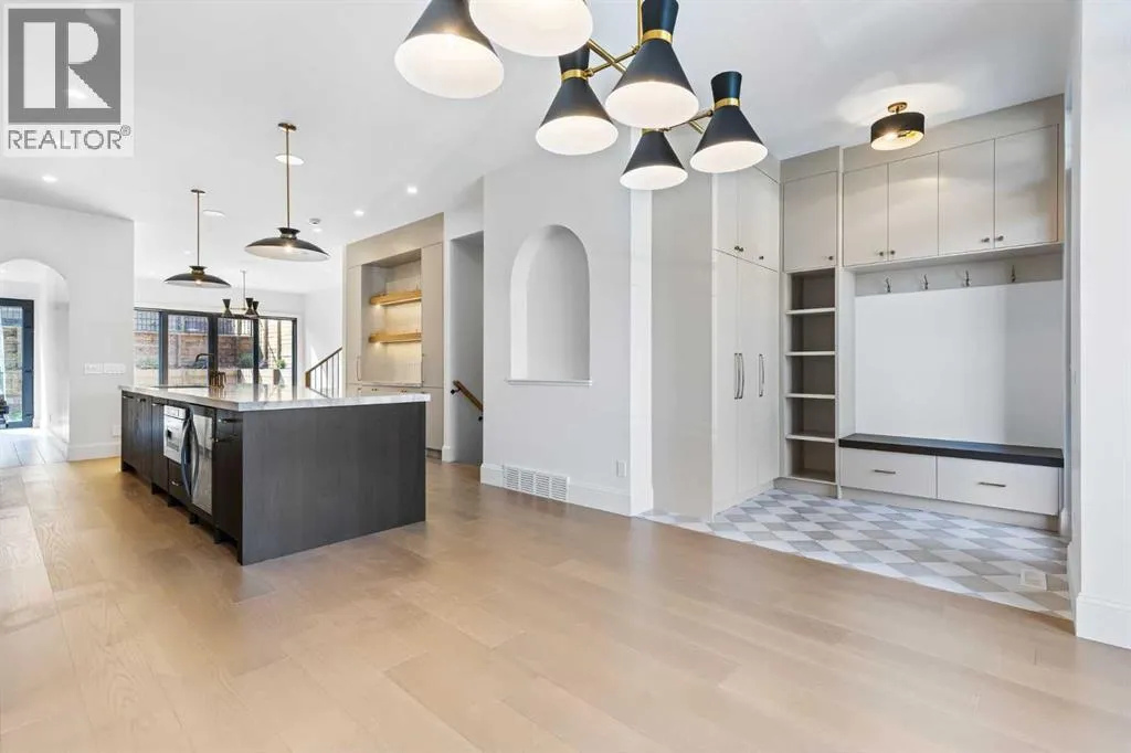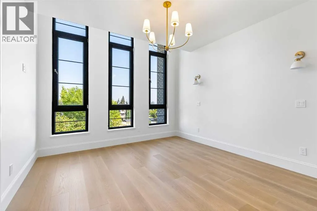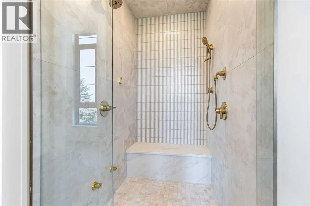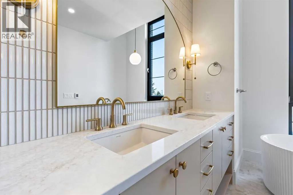 Experience quiet luxury at its finest in this stunning three-storey home, set on one of the highest points in Calgary with uninterrupted skyline views from all levels, and steps from Marda Loop. The exterior makes a striking first impression with its blend of classic white brick detailing, black accents, and timeless stucco. The curb appeal is enhanced by clean glass railings, low-maintenance landscaping, and a welcoming front balcony with a fireplace. Step into a beautiful and functional foyer, complete with custom built-in millwork, a bench, and smart storage including hanging compartments, open shelving, and pull-out drawers. The open-concept design includes a dedicated dining area surrounded by massive sliding doors that lead to the balcony. This is styled for intimate dinners, elevated entertaining, or just enjoying a coffee with stunning skyline views.At the heart of the home, the chefâs kitchen is a true masterpiece. It features a 14-foot island with quartz, a quartz backsplash, plaster textured hood fan, pot filler, and oversized premium appliances including a 48â dual oven gas range and a 66â built-in fridge/freezer. There is a butlerâs pantry with sink and cabinetry, mud room, coffee bar, and tons of storage including under the island. The kitchen is set up to be not only beautiful but also functional and includes a garbage drawer, bar cooler, and spice racks/cabinetry. Across from it, the living room centers around a beautiful fireplace and custom built-ins which make it cozy, refined, and made for real living. Large doors lead to the deck and the sunny south facing backyard, that is tiered, turfed and truly low maintenance. Throughout the home, youâll enjoy tons of natural sunlight from the large windows, 10-foot high ceilings, arched transitions, and wide-plank engineered hardwood create a warm and elevated flow.Upstairs, the primary suite is a serene retreat with a spa-like ensuite featuring a steam shower, dual vanity, custom tilework, and skyli ne views. Secondary bedrooms are generously sized, each with walk-in closets, and connected by a stylish bathroom ideal for kids or guests.The third level includes a beautiful rooftop patio where you can soak in the skyline views, a stylish bathroom with nice finishes, a rec/living area with built-in storage, a built-in desk, and a gas fireplace. There is a wet bar, bar fridge, and entertainment in the center. This is the ultimate entertaining area to host friends and family.The fully finished basement extends the living space with heated floors roughed-in, a large flex room or guest suite, and full bathroom. Additional features include a heated double attached garage with epoxy flooring, integrated speakers and security system, roughed-in central A/C and roughed-in heated driveway.Whether you're enjoying a quiet morning in the sun, hosting friends on the rooftop, or watching the city light up at night, this home was built for a lifestyle thatâs elevated and timeless. (id:27476)