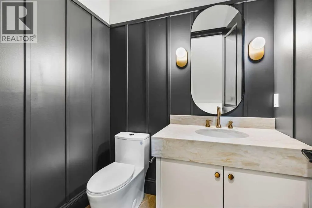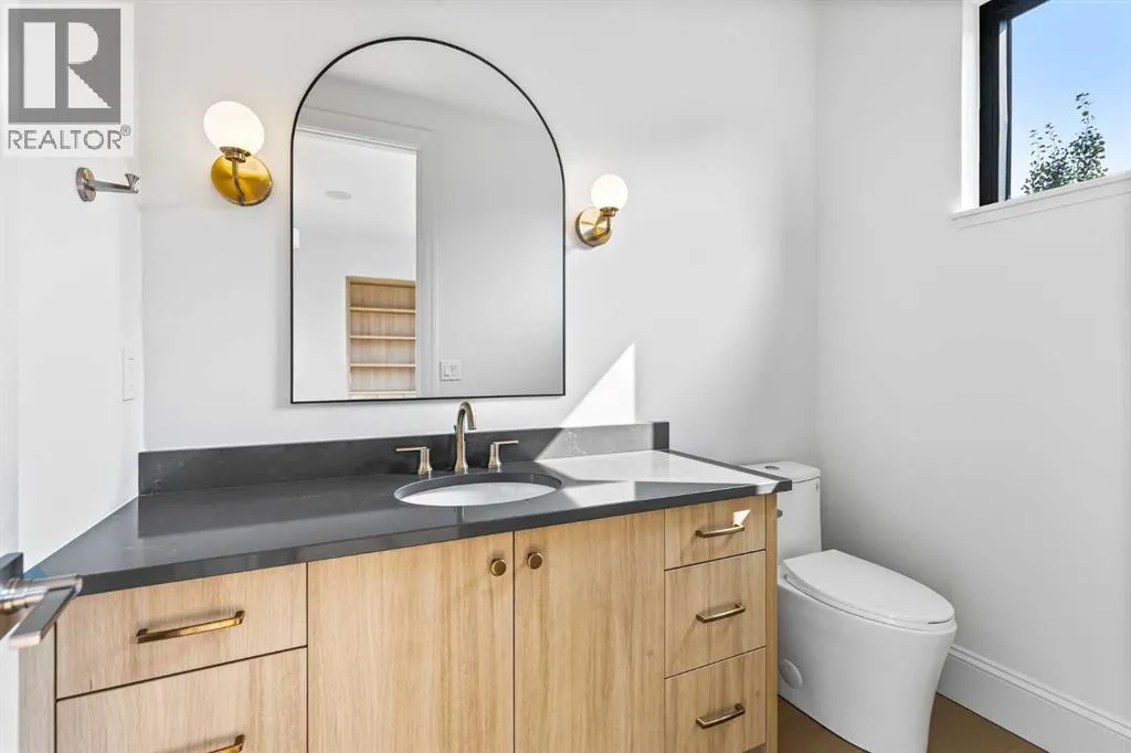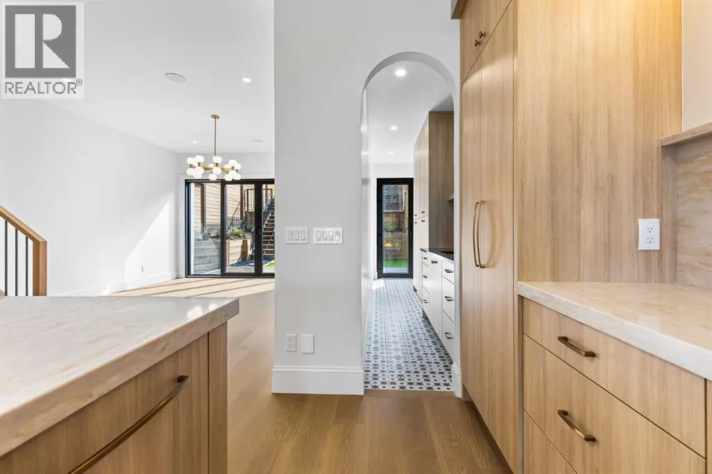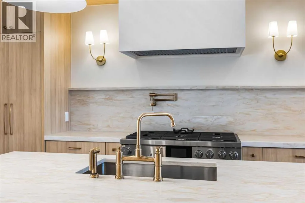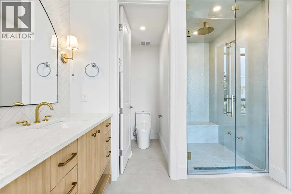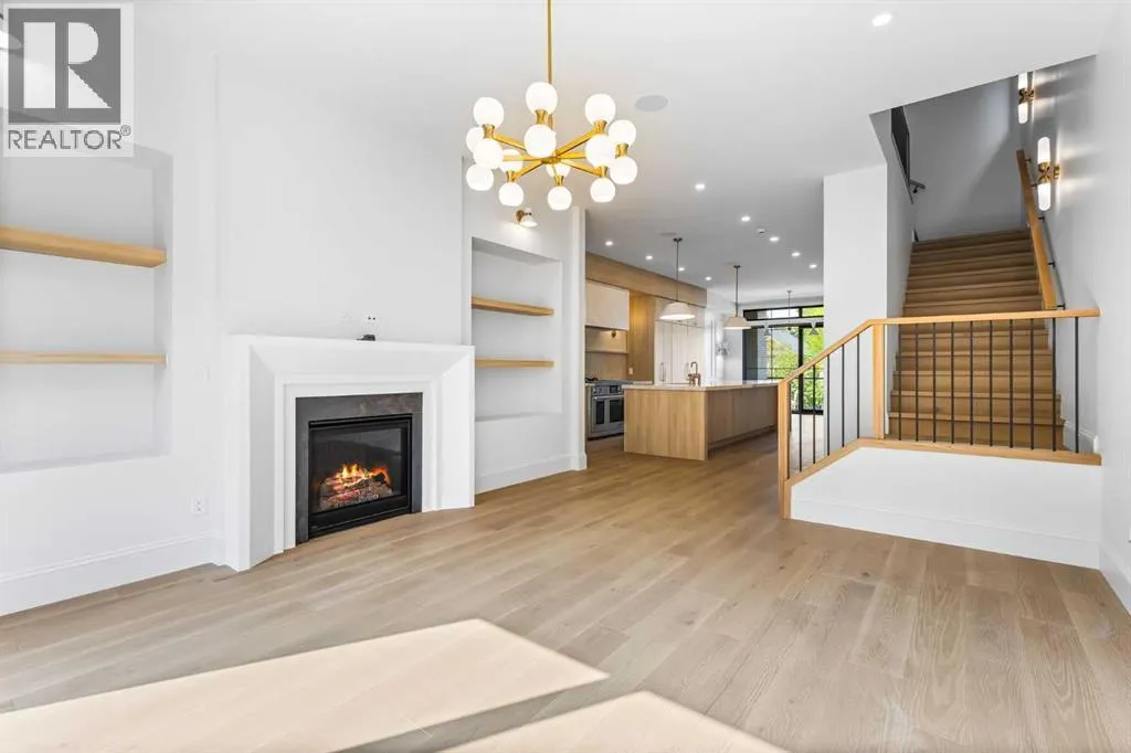 Experience quiet luxury at its finest in this stunning three-storey home, set on one of the highest points in Calgary with uninterrupted skyline views from all levels, and steps from Marda Loop. The exterior makes a striking first impression with its blend of classic white brick detailing, black accents, and timeless stucco. The curb appeal is enhanced by clean glass railings, low-maintenance landscaping, and a welcoming front balcony. Step into a beautiful and functional foyer, complete with custom built-in millwork, a bench, and smart storage including hanging compartments, open shelving, and pull-out drawers. The open-concept design includes a dedicated dining area surrounded by massive sliding doors that lead to the balcony. This is styled for intimate dinners, elevated entertaining, or just enjoying a coffee with stunning skyline views.At the heart of the home, the chefâs kitchen is a true masterpiece. It features a 14-foot island with quartz, a quartz backsplash, plaster textured hood fan, pot filler, and oversized premium appliances including a 48â dual oven gas range and a 66â built-in fridge/freezer. There is a butlerâs pantry with sink and cabinetry, mud room, coffee bar, and tons of storage including under the island. The kitchen is set up to be not only beautiful but also functional and includes a garbage drawer, bar cooler, and spice racks/cabinetry. Across from it, the living room centers around a beautiful fireplace and custom built-ins which make it cozy, refined, and made for real living. Large doors lead to the deck and the sunny south facing backyard, that is tiered, turfed and truly low maintenance. Throughout the home, youâll enjoy tons of natural sunlight from the large windows, 10-foot high ceilings, arched transitions, and wide-plank engineered hardwood create a warm and elevated flow.Upstairs, the primary suite is a serene retreat with a spa-like ensuite featuring a steam shower, dual vanity, custom tilework, and skyline views. Seconda ry bedrooms are generously sized, each with walk-in closets, and connected by a stylish bathroom ideal for kids or guests.The third level includes a beautiful rooftop patio where you can soak in the skyline views, a stylish bathroom with nice finishes, a rec/living area with built-in storage and a gas fireplace. There is a large wet bar with LED lighting in the cabinetry, beatiful tile, shelves and bar fridge. This is the ultimate entertaining area to host friends and family.The fully finished basement extends the living space with heated floors roughed-in, a large flex room or guest suite, and full bathroom. Additional features include a heated double attached garage with epoxy flooring, integrated speakers and security system, central A/C, roughed-in heated driveway.Whether you're enjoying a quiet morning in the sun, hosting friends on the rooftop, or watching the city light up at night, this home was built for a lifestyle thatâs elevated and timeless. (id:27476)