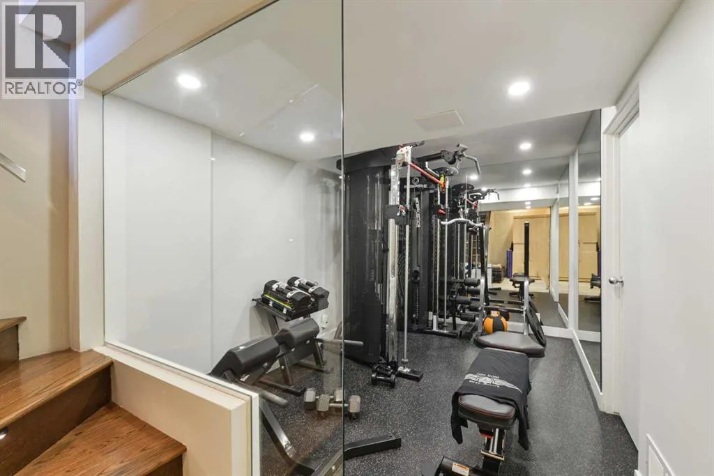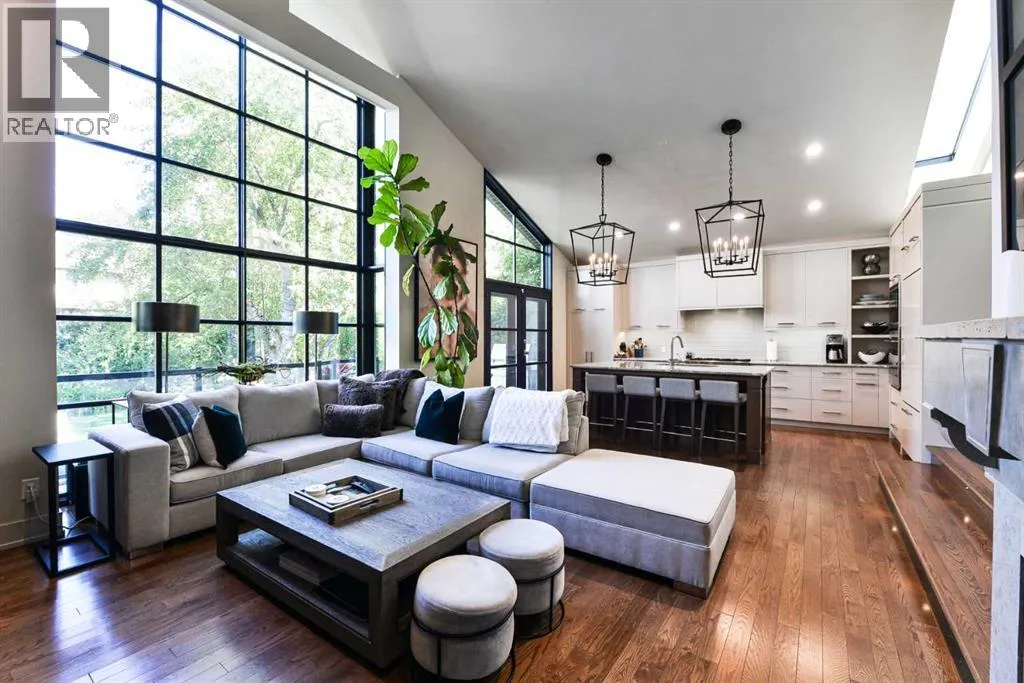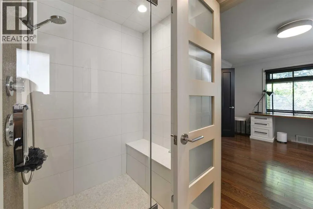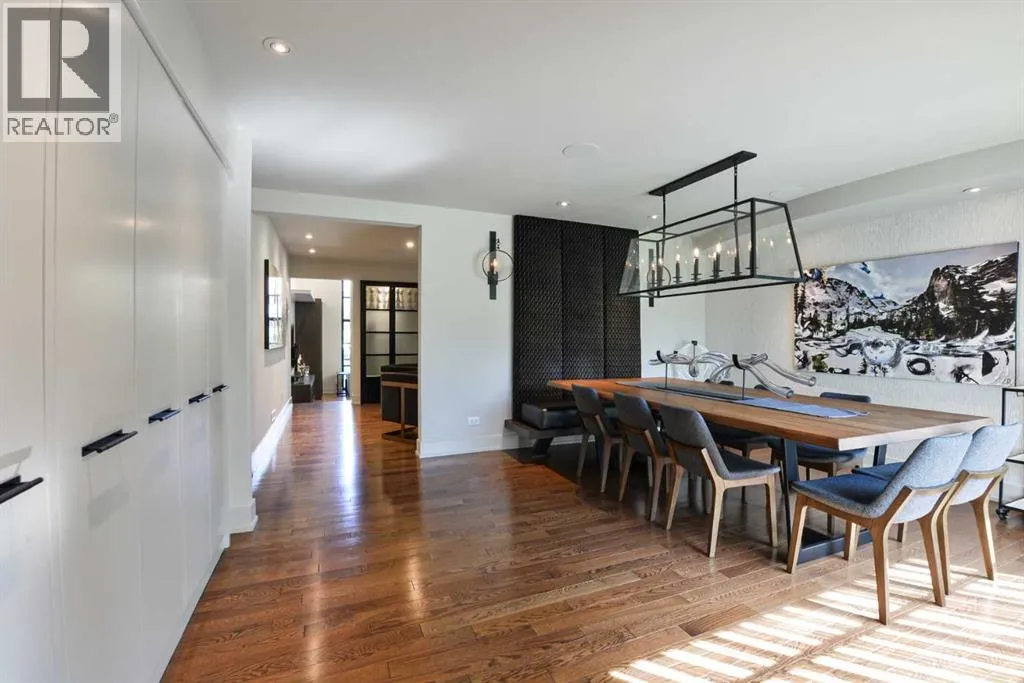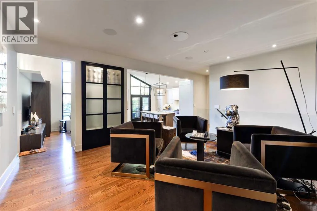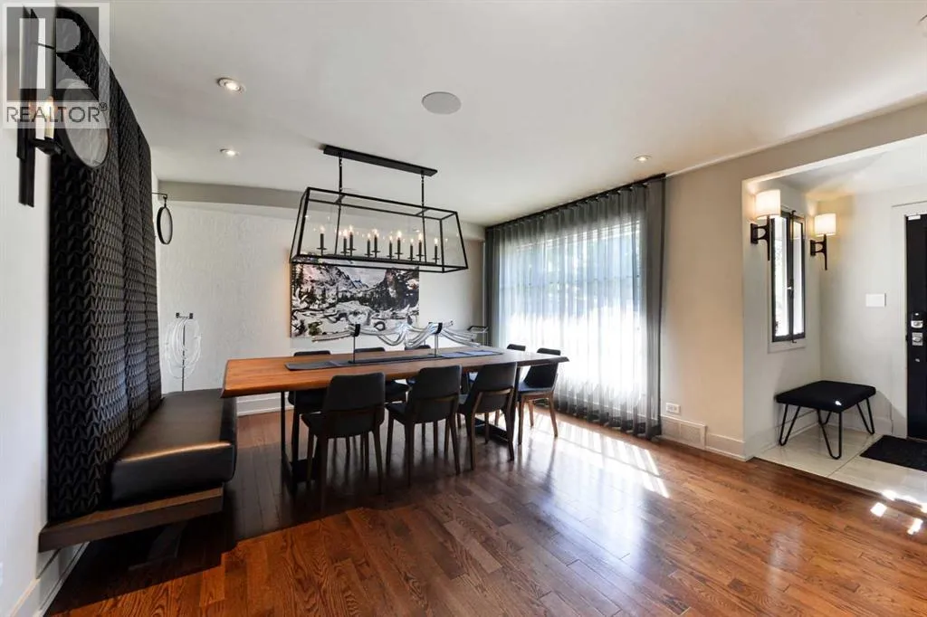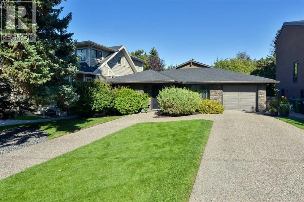 Nestled in the heart of Mount Royal, Calgaryâs most prestigious neighbourhood, this recently renovated bungalow is a rare offering that combines classic charm with state-of-the-art upgrades. Designed for both refined living and effortless entertaining, the home showcases bespoke craftsmanship and thoughtful details at every turn. Step inside to discover a seamless flow of warm hardwood floors leading through the elegant dining area into a designer kitchen. Outfitted with sleek white cabinetry, a Sub-Zero refrigerator, stainless steel gas range, Bosch dishwasher, tiled backsplash with under-cabinet lighting, and a skylight that bathes the space in natural light, the kitchen is both functional and timeless. The striking living room features vaulted ceilings, a gas fireplace, and 20-foot glass windows that open to serene views of the private landscaped garden. This tranquil backyard oasis, lush and meticulously designed, provides the perfect backdrop for intimate gatherings or quiet relaxation. The primary suite offers a true retreat, with expansive windows overlooking the garden and a spa-inspired ensuite adorned with tumbled marble and elegant glass finishes. A front bedroom has been cleverly designed with a custom Murphy bed, allowing the space to double as a private office with its own two-piece bathroom. On the lower level, enjoy a full lifestyle experience with a dedicated gym, sauna, cozy family room, and a custom office/tech area. Additional highlights include a brand-new Crestron smart home system for complete automation, custom lighting, drapery, and millwork throughout, an epoxy-finished garage, and a stunning sitting area with exotic wood built-ins. Just minutes from 17th Avenueâs shops, restaurants, and downtown, this home combines location, luxury, and lifestyle in one of Calgaryâs most prestigious communities. (id:27476)