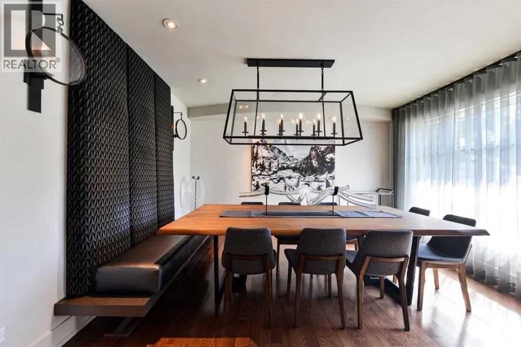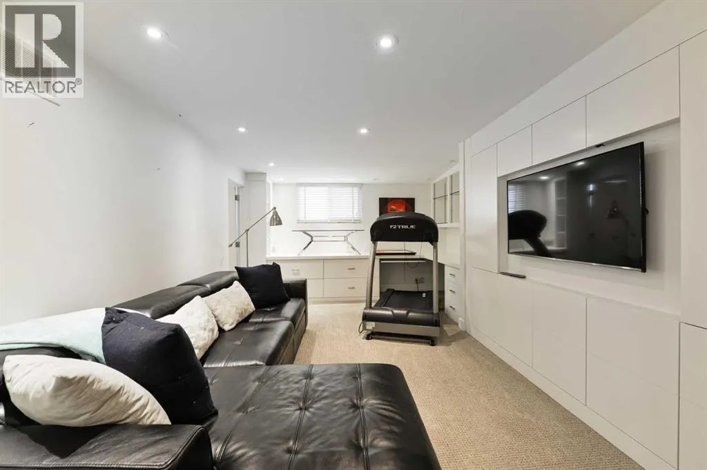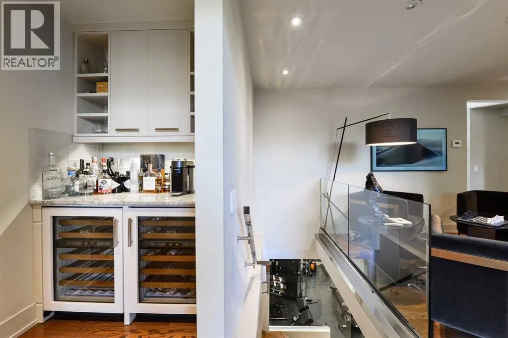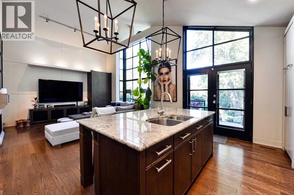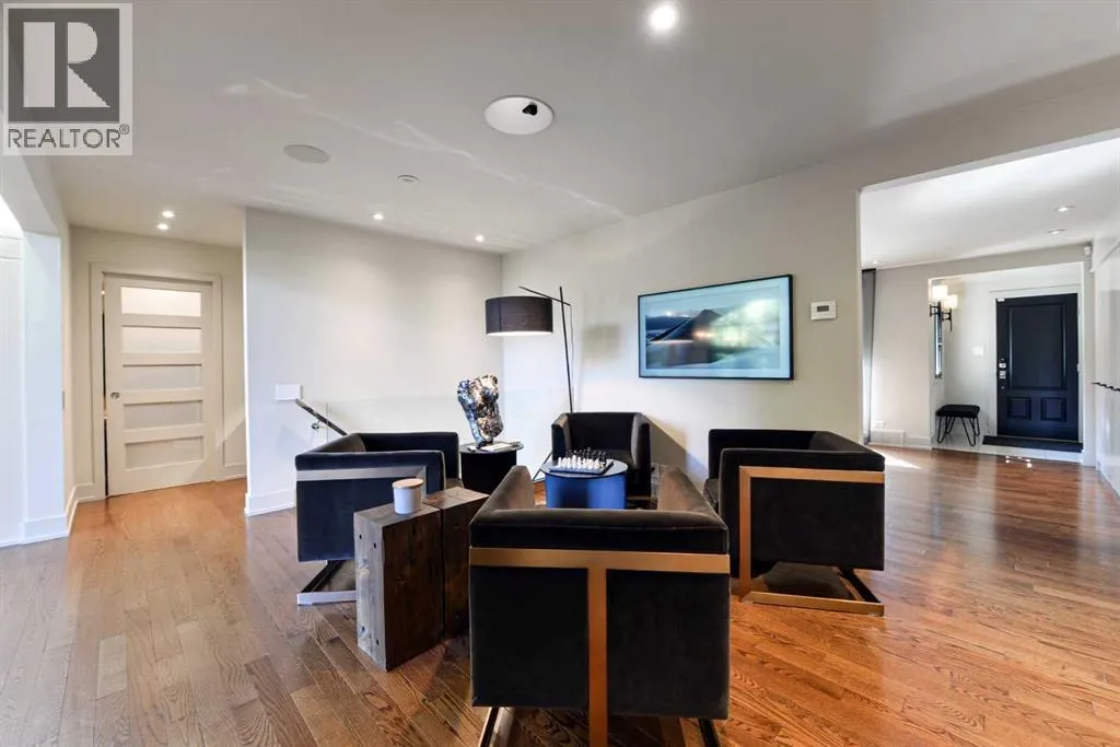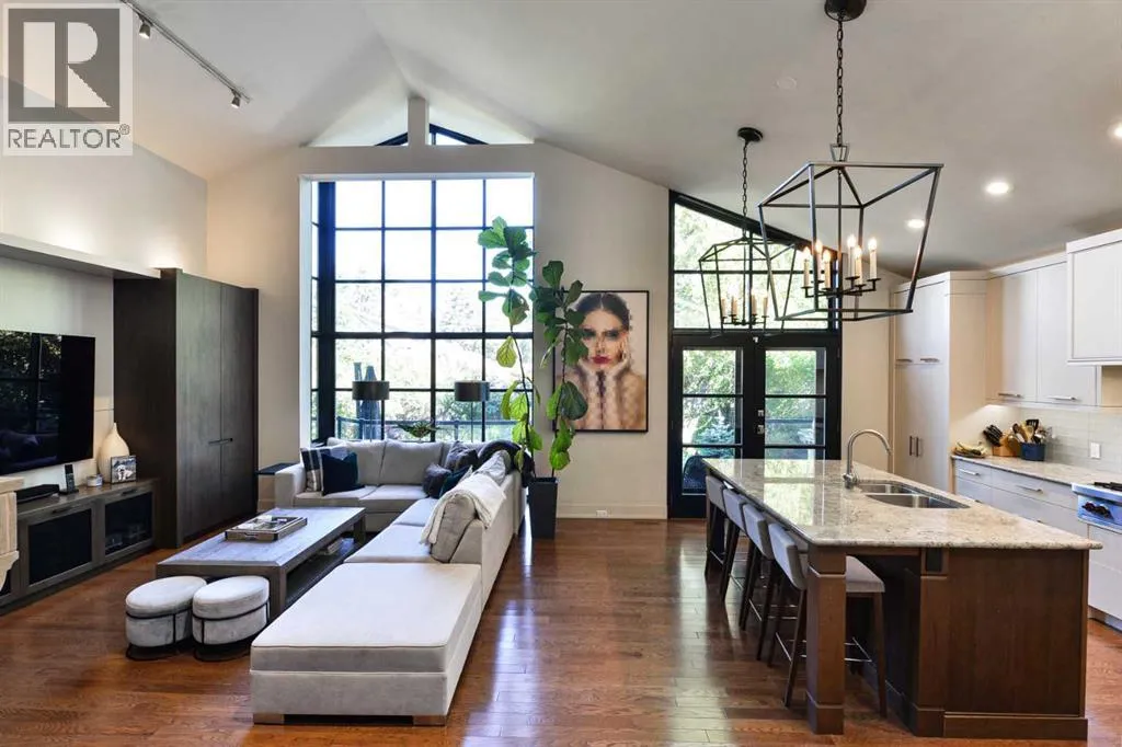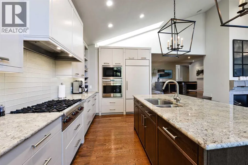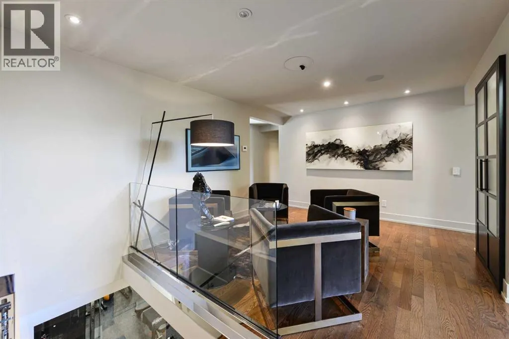 Nestled in the heart of Mount Royal, Calgaryâs most prestigious neighbourhood, this recently renovated bungalow is a rare offering that combines classic charm with state-of-the-art upgrades. Designed for both refined living and effortless entertaining, the home showcases bespoke craftsmanship and thoughtful details at every turn. Step inside to discover a seamless flow of warm hardwood floors leading through the elegant dining area into a designer kitchen. Outfitted with sleek white cabinetry, a Sub-Zero refrigerator, stainless steel gas range, Bosch dishwasher, tiled backsplash with under-cabinet lighting, and a skylight that bathes the space in natural light, the kitchen is both functional and timeless. The striking living room features vaulted ceilings, a gas fireplace, and 20-foot glass windows that open to serene views of the private landscaped garden. This tranquil backyard oasis, lush and meticulously designed, provides the perfect backdrop for intimate gatherings or quiet relaxation. The primary suite offers a true retreat, with expansive windows overlooking the garden and a spa-inspired ensuite adorned with tumbled marble and elegant glass finishes. A front bedroom has been cleverly designed with a custom Murphy bed, allowing the space to double as a private office with its own two-piece bathroom. On the lower level, enjoy a full lifestyle experience with a dedicated gym, sauna, cozy family room, and a custom office/tech area. Additional highlights include a brand-new Crestron smart home system for complete automation, custom lighting, drapery, and millwork throughout, an epoxy-finished garage, and a stunning sitting area with exotic wood built-ins. Just minutes from 17th Avenueâs shops, restaurants, and downtown, this home combines location, luxury, and lifestyle in one of Calgaryâs most prestigious communities. (id:27476)
