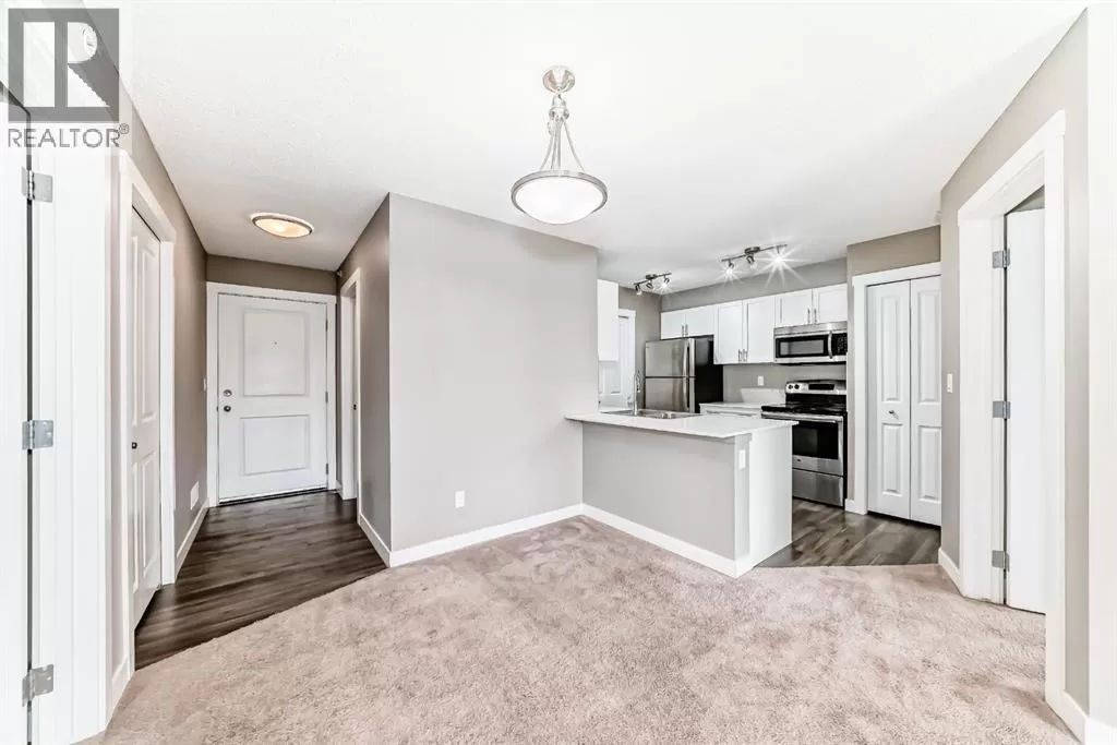 Welcome to this bright and beautifully designed 2-bedroom, 2-bath home in an ULTRA-QUIET, 8-storey CONCRETE building overlooking Kincora Glen Park. The open layout offers exceptional functionality with bedrooms set on opposite sides for enhanced PRIVACYâperfect for a roommate, home office, or young family. Laundry is conveniently located just off the kitchen for added ease.The MODERN white kitchen features sleek QUARTZ countertops, STAINLESS STEEL appliances, and soft-close cabinetry. A spacious living area leads to the east-facing BALCONY, where you can enjoy peaceful mornings and abundant natural light.Additional perks include in-suite laundry, TITLED underground parking, a TITLED storage locker in a separate secure room, and access to a ROOFTOP PATIO with sweeping community viewsâan ideal spot to unwind or entertain. Emerald Sky is pet-friendly (with approval) and offers well-maintained outdoor spaces that back onto parks and green space.Located in an ESTABLISHED yet rapidly growing community, this home is just a short walk to the future Symons Valley Parkâan exciting 16-acre destination featuring sports fields, playgrounds, skating rinks, walking paths, and year-round gathering spaces. With quick access to Stoney Trail, Shaganappi Trail, and Beddington Trail, convenience is at your doorstep.A perfect blend of comfort, lifestyle, and future amenitiesâthis is one you wonât want to miss. (id:27476)