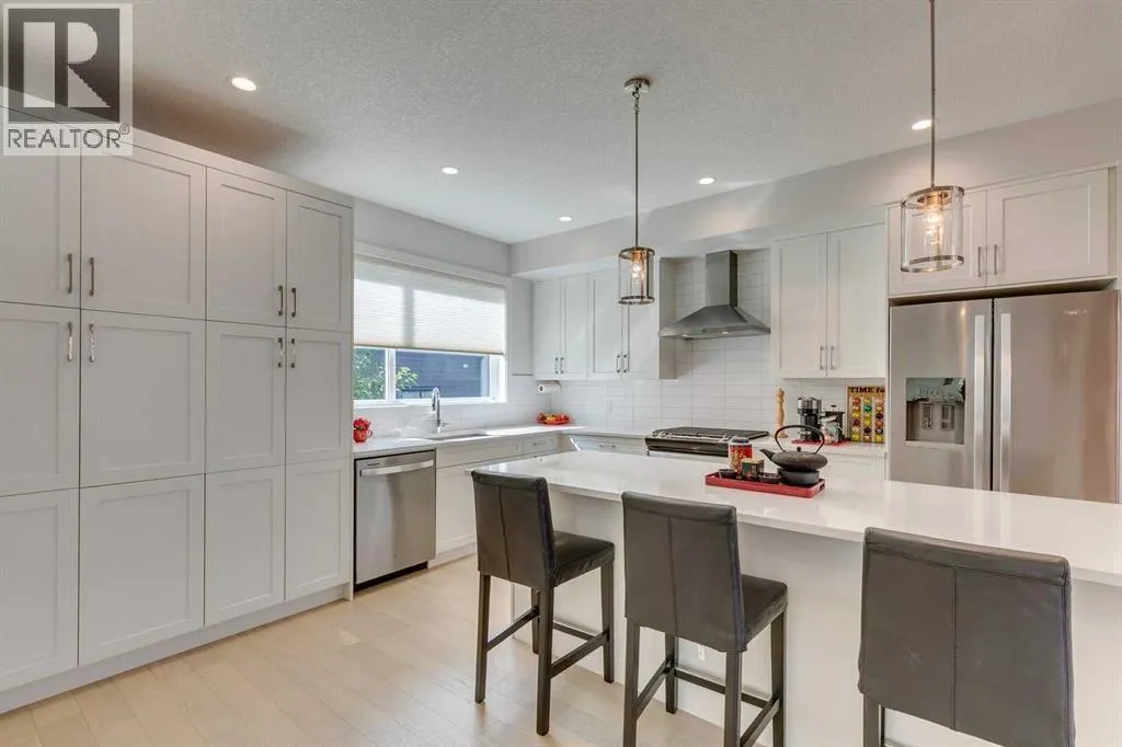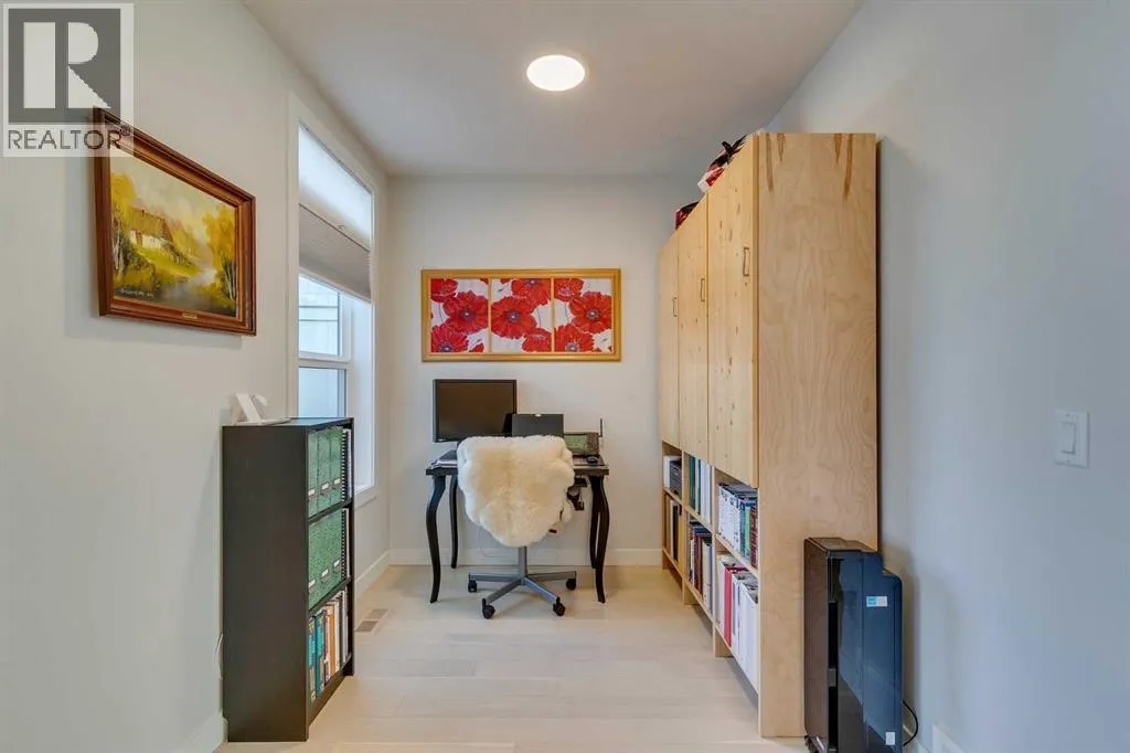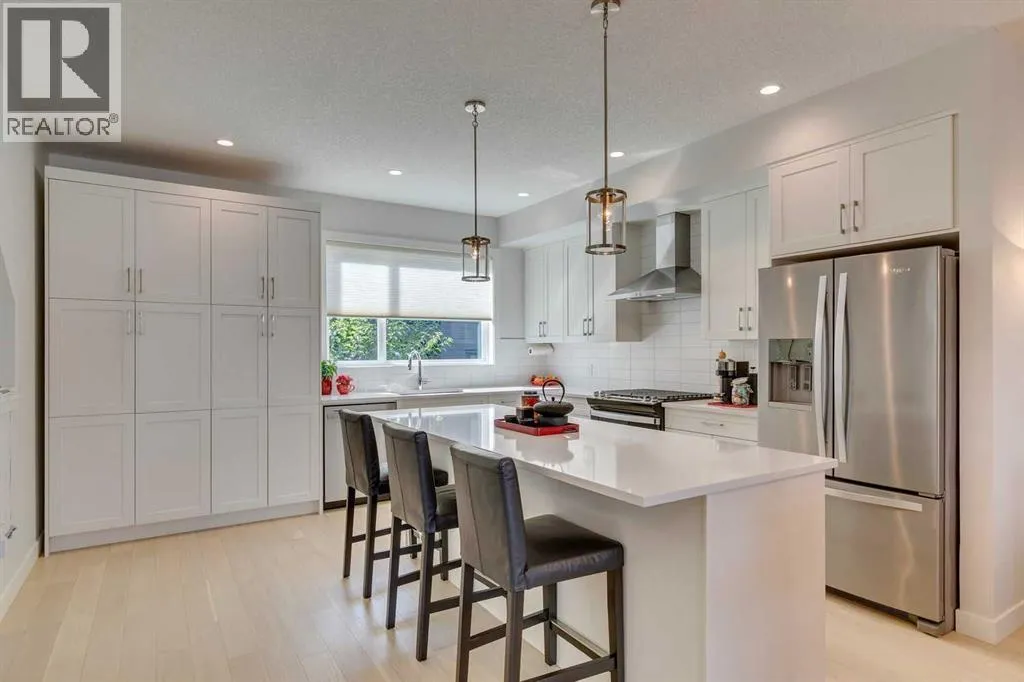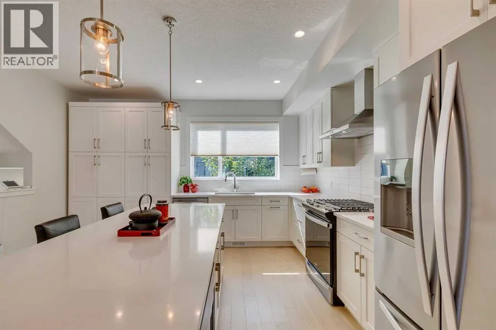 Upscale executive end unit townhome in the award-winning community of Shawnee Park. This Cardel-built 1880 sq' (builder size) 3 storey offers upscale design and detailed finishing with a substantial amount of upgrades beyond builder spec. Enjoy engineered white oak hardwood floors, upscale shaker-style kitchen with soft close doors and drawers, dovetailed joints, quartz countertops and upgraded appliances. This outstanding home has 9' ceilings, estate casing and baseboard and interior doors as well as sweeping urban views from the living room and the upper level. Sun-drenched south exposure, exposed aggregate driveway, walks and oversized patio. Xeriscape landscaping provides no maintenance and care-free living. Mechanical upgrades inc HEPA filter, high efficacy A/C , high efficiency F.A furnace with Redlink Honeywell controller to balance efficiency, electronic water softener, and RI for home dialysis machine (hidden in a closet). Hunter Douglas window coverings with custom blackouts and sun shades, bottom-up top-down blinds. The oversized garage is insulated, drywalled, and has a polished concrete floor. Loads of storage and more. This unique complex of adult homes (7 units) is designed to offer the best in living, convenience and lifestyle. Condo fees are just under $100.00/ month to cover snow removal and management fees. Walk to Fish Creek Park, the LRT, close to community shopping and the ring road. Compare the price to Cardel's next phase of townhomes starting at $820,000.00. (id:27476)