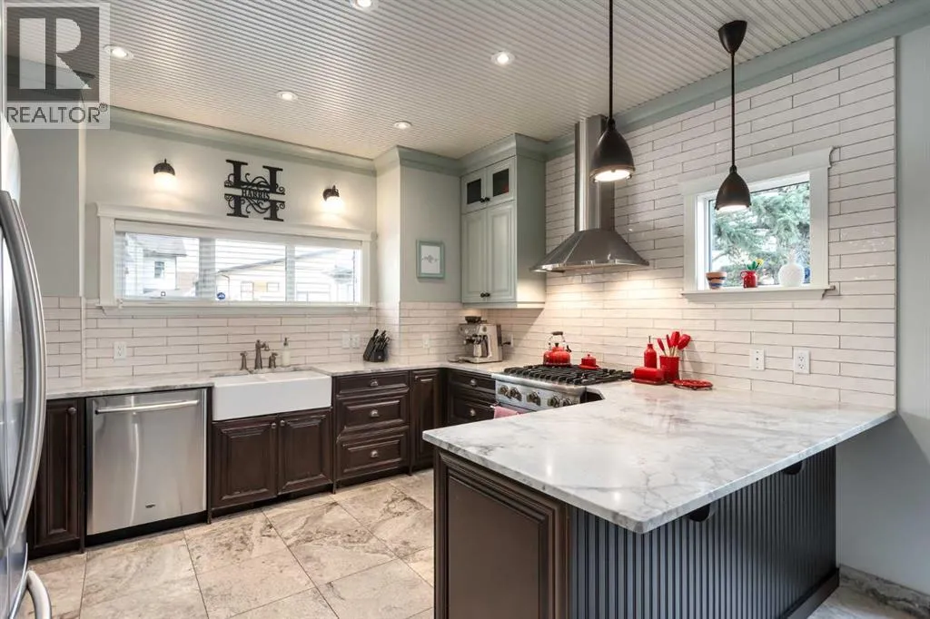 **OPEN HOUSE SAT 11/15 at 1:00 PM - 3:00 PM** Your DREAM HOME awaits in the heart of Altadore - one of Calgaryâs most PRESTIGIOUS inner-city communities. This EXQUISITE two-storey semi-detached residence combines timeless sophistication with contemporary design, offering over 2,600 sq. ft. of meticulously crafted living space. Perfectly positioned on a RARE PREMIUM corner lot, this home is designed to IMPRESS at every turn with its blend of elegance, comfort & function. Step inside & immediately feel the openness of the main floor. Soaring ceilings, expansive windows, and an open-concept layout create a space that is both bright & inviting. The living room features a soothing gas fireplace & built-in cabinetry, making it a cozy retreat for quiet evenings or stylish entertaining. Rich hardwood floors flow seamlessly throughout, while the dining area provides the ideal setting for gatherings with family & friends. At the heart of the home, the chefâs kitchen is a masterpiece in both design and function. Outfitted with premium quartzite countertops, custom cabinetry, and an IMPRESSIVE stainless steel appliance package - including a coveted VIKING gas range - it is perfectly suited for culinary creations and lively conversation. The large island invites casual dining, while abundant storage & thoughtful design ensure beauty is matched by practicality. Upstairs, the primary retreat offers a TRUE OASIS. This sanctuary boasts a spacious walk-in closet & a spa-inspired ensuite that redefines luxury. Indulge in the clawfoot soaking tub, enjoy the custom double vanity with quartzite counters, or step into the jaw-dropping glass shower framed by designer tile and premium fixtures. Two additional bedrooms, a well-appointed main bath, and a convenient laundry room with sink complete the upper level. The lower level extends the living space with high ceilings & a versatile layout designed for modern lifestyles. A massive family and recreation area offers endless possibilities - w hether you envision a home theatre, gym, or entertainment lounge. A spacious fourth bedroom & another elegant full bathroom make this level ideal for guests or extended family. Step outside to your PRIVATE BACKYARD OASIS. Thoughtfully landscaped for low maintenance, it features a sprawling deck, patio, and outdoor fireplace that transform the space into an entertainerâs dream. Fully fenced & complemented by a double detached garage, it is as functional as it is inviting. Altadore is consistently ranked as one of Calgaryâs MOST DESIRABLE neighborhoods, celebrated for its unique blend of historic charm and urban convenience. Just minutes from the downtown core, this vibrant community offers walkable access to parks, river pathways, boutique shops, restaurants, and top-rated schools. Whether strolling along tree-lined streets or enjoying the nearby Marda Loop amenities, Altadore provides a lifestyle that balances luxury, leisure, and connectivity. Experience the UNMATCHED ELEGANCE of life in Altadore today!! (id:27476)