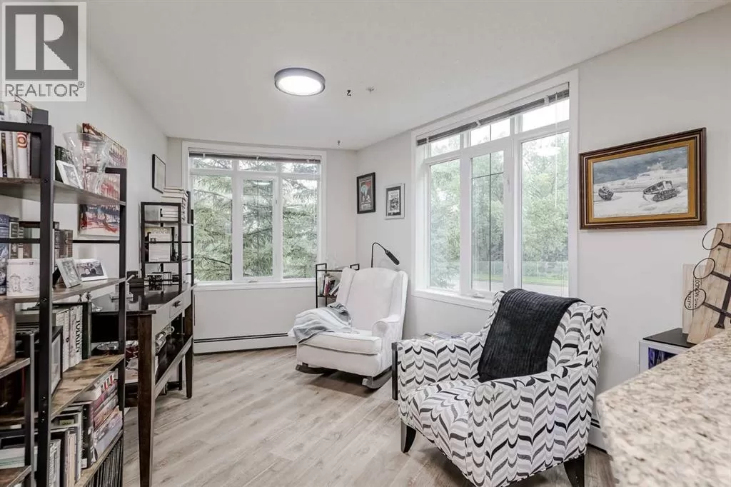 Experience the epitome of luxurious urban living in this stunning corner unit, perfectly positioned to offer breathtaking east, south, and west exposures that flood the space with natural sunlight. This spacious 2-bedroom, 2-bath residence features a versatile den, ideal for a home office or additional living space. Enjoy your mornings with a tree-top view through sun-filled windows that create a bright and inviting atmosphere.Recently upgraded with brand-new doors, trim, flooring, and lighting, this home exudes modern elegance. The large gourmet kitchen and full-sized dining area are perfect for entertaining guests, while the cozy living room with a gas fireplace provides a warm and inviting retreat after a long day. The spacious primary bedroom offers a king-sized layout, a generous walk-in closet, and an ensuite with double sinksâcombining comfort and luxury. The second bedroom also boasts ample closet space and a cheater door to the second bathroom. Convenience is unmatched with a full-sized washer and dryer, additional storage in the laundry room, and a separate storage room in the parkade. Two parking stallsâone titled and one rentedâadd to the practicality of this exceptional property.Don't miss the opportunity to call this stylish, move-in-ready home yours in a highly sought-after neighbourhood. Schedule your viewing today and enjoy the perfect blend of comfort, style, and location! (id:27476)