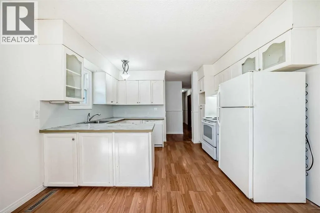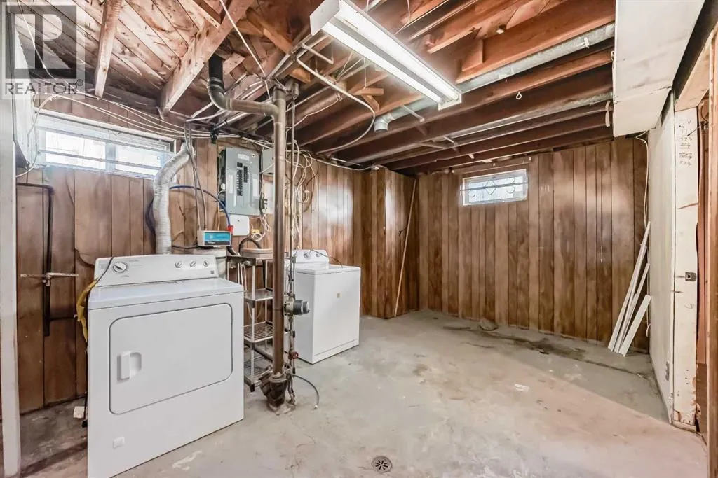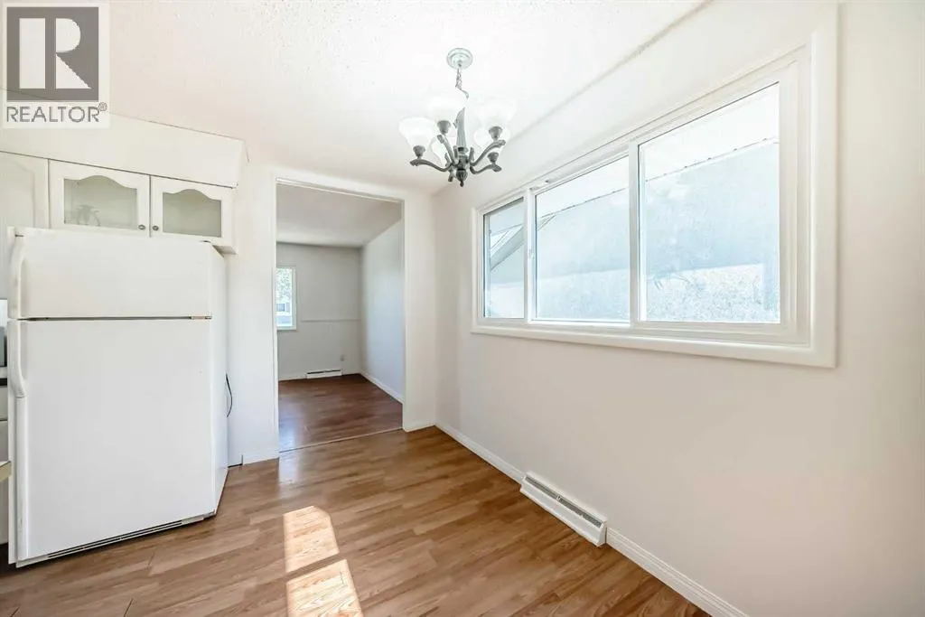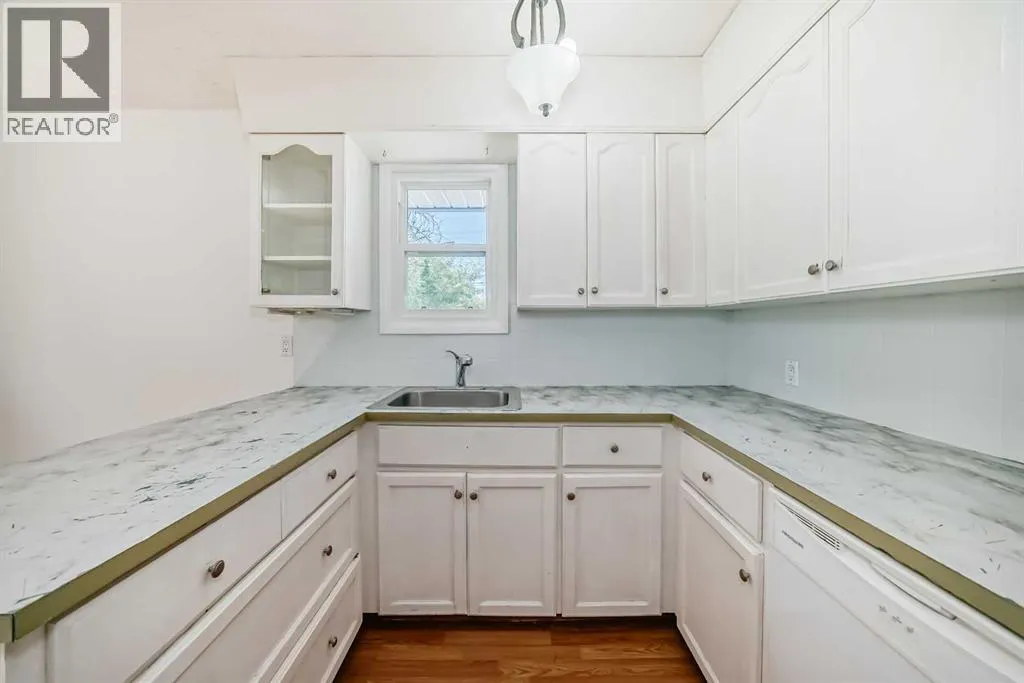 This affordable bungalow is ideally situated close to all amenities, just minutes from the restaurants of 17th Avenue, Sobeys, and the C-Train. With easy access to Stoney Trail, Memorial Drive, and the number one highway, the location is both convenient and desirable. Nestled on a quiet tree-lined street, this home is a must to see.The main floor features a bright living and dining room combination that flows into a spacious kitchen with plenty of cabinets, generous counter space, and an L-shaped island that adds even more functionality. Laminate flooring runs throughout the main level, which has been freshly painted. The four-piece bathroom has seen some updates, and the original three-bedroom layout has been converted to two bedrooms, creating a large master bedroom with space for a sitting area. Solid pine doors add a warm touch to the upper level.The lower level is partially developed with an additional bedroom and a recreation room. An energy-efficient furnace, and the shingles were replaced within the last five years. A separate back entrance offers the potential for a future illegal suite.The backyard is fully landscaped and fenced, with space for RV parking and a covered outdoor kitchen, perfect for entertaining. A single detached garage with an electric garage door opener. Don't miss this great investment opportunity. (id:27476)