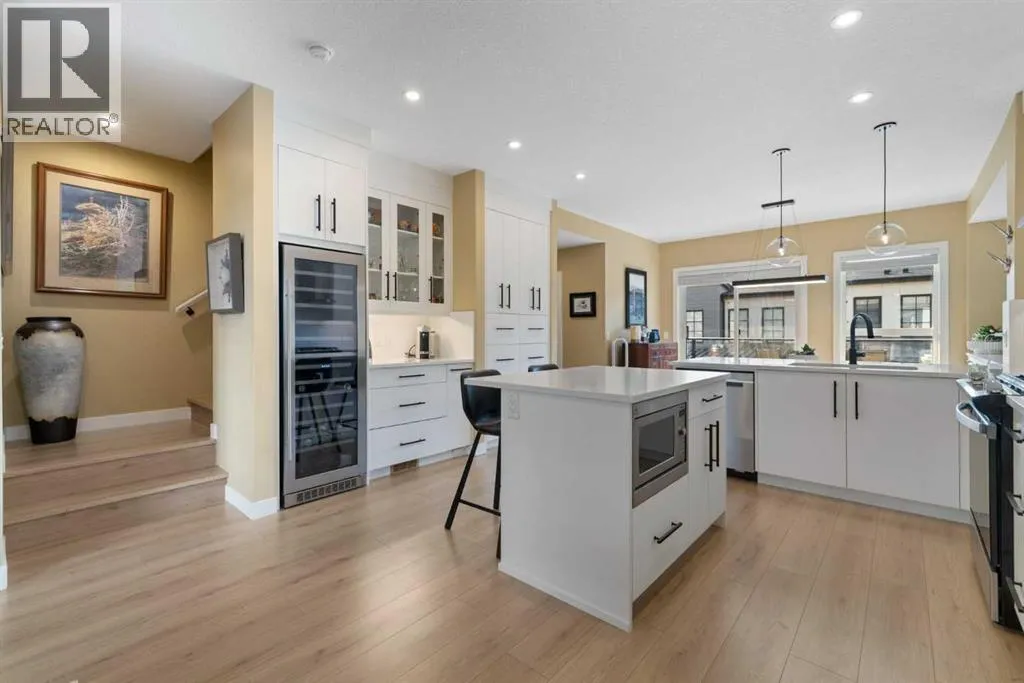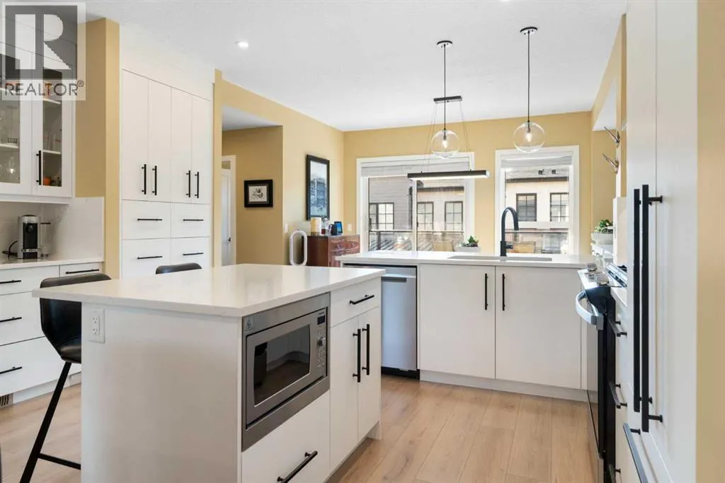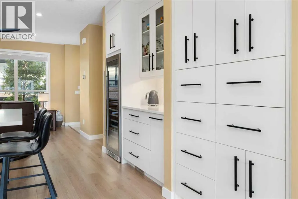 OPEN HOUSE Saturday, November 15th Noon-2pm -- Executive Townhome with Rare Upgrades & Unbeatable Location & Panoramic Mountain Views -- Welcome to a home that offers more than just beautiful finishesâitâs designed to make everyday living easier and more enjoyable for you and your guests. Step inside to an open main floor where the living, kitchen, and dining areas flow seamlesslyâperfect for entertaining or simply relaxing at the end of the day. The chefâs kitchen is a true highlight, featuring both a peninsula and an island for extra prep and seating, a wall of custom cabinetry for organized storage, and a quartz coffee bar with pantry âeverything you need at your fingertips. Hosting is effortless with the dining roomâs additional custom cabinetry and expansive quartz serving area. A stylish powder room and a sunny balcony with a natural gas hook-up extend your living space, all framed by 9-foot ceilings that add light and openness. Upstairs, youâll enjoy the privacy of two spacious primary suites, each with its own spa-like ensuite and custom walk-in closet. The main retreat feels like a boutique hotel, with soaring vaulted ceilings, oversized windows, and a seamless ensuite-to-closet design that makes mornings effortless. The second suite doubles as a smart home office or guest room/additional bedroom. Everyday conveniences are built right in, including second-floor laundry with energy-efficient LG washer/dryer and added shelving for storage. Car lovers and hobbyists will appreciate the rare heated triple tandem garage with water spout and durable polyaspartic flooring (superior to epoxy)âa space as functional as it is impressive. Comfort upgrades like ultra-quiet central A/C and a central vac rough-in mean youâll move into a home ready for both convenience and long-term value. All this in one of Calgaryâs most desirable west-side locationsâjust minutes from Aspen Landing Shopping Centre, the 69th Street C-Train, and top-rated schools. Donât miss the opport unity to own a home that truly checks every box. Call your favourite Realtor today before itâs gone! (id:27476)