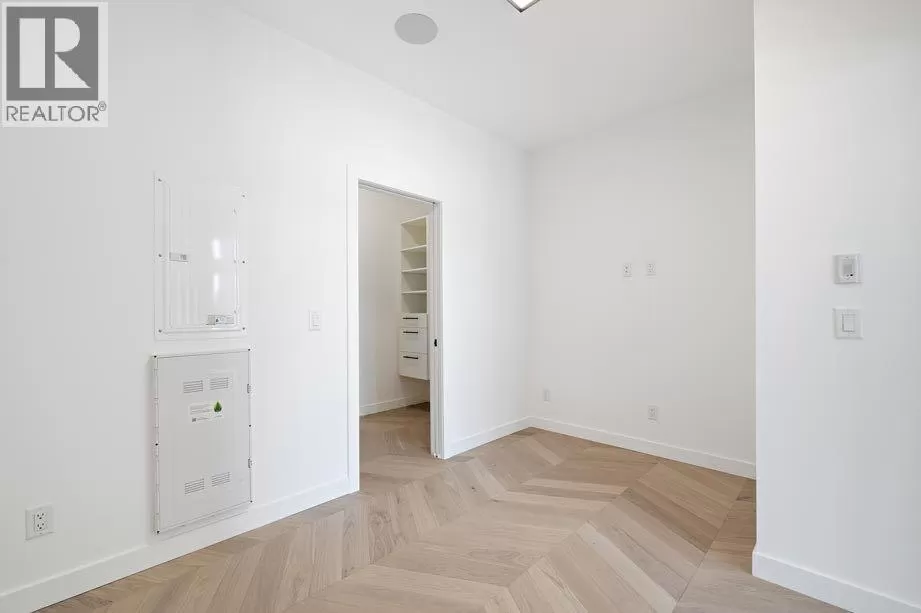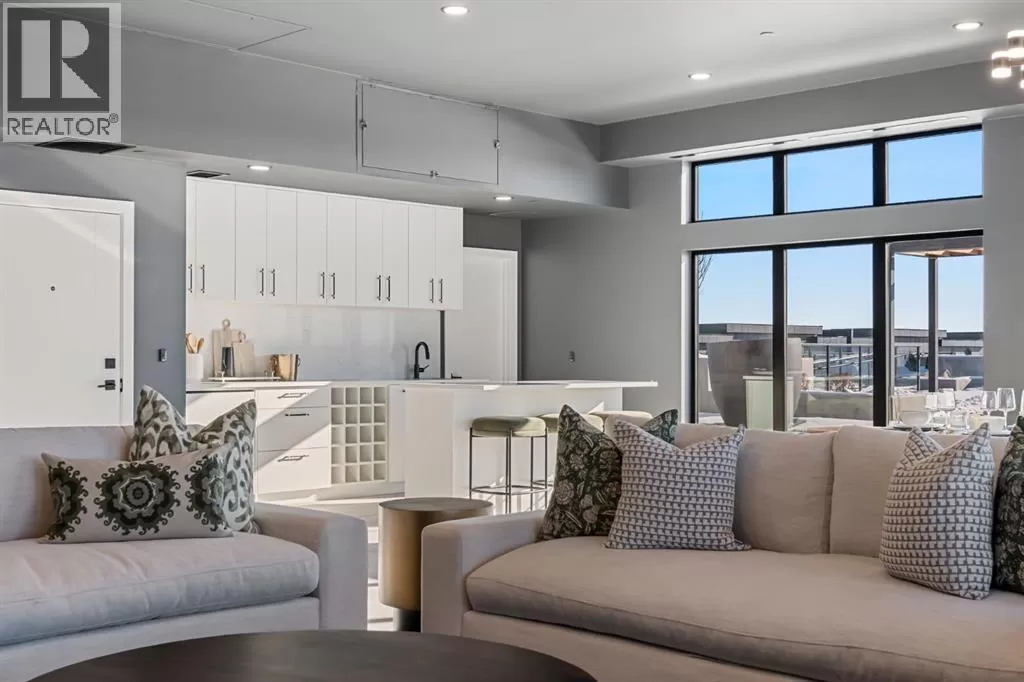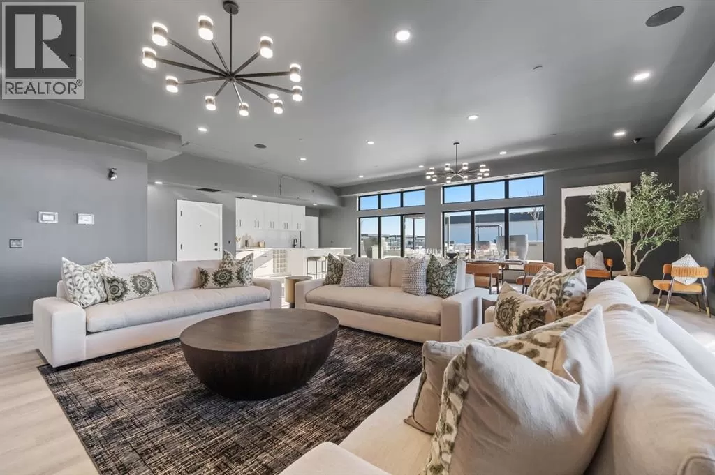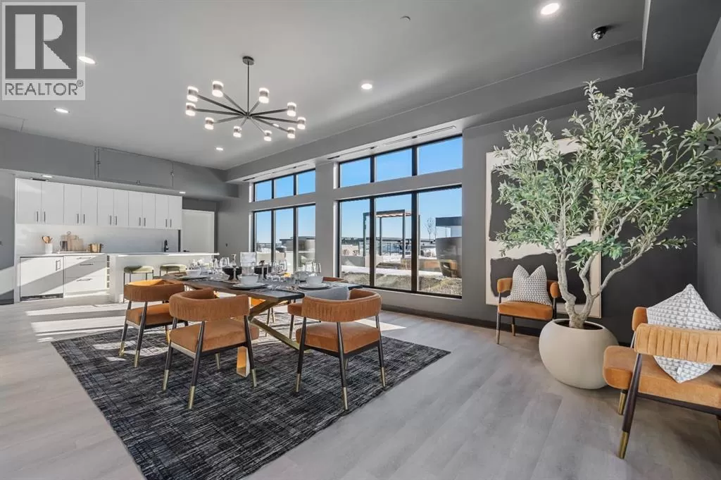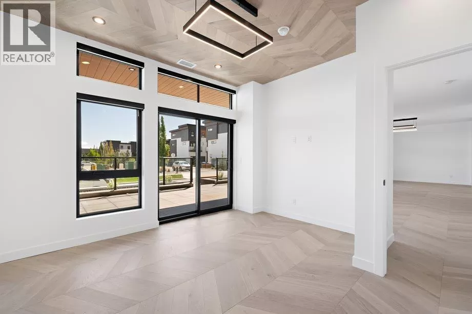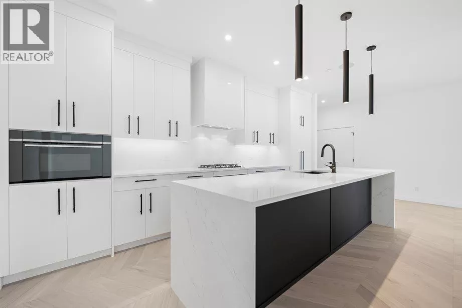 Welcome to a refined living experience at Parkside, a premium concrete-built residence by TRUMAN located in Calgaryâs thriving West District. This stunning 1 Bedroom + Den, 2-Bathroom luxury condo is designed for those who appreciate timeless elegance, exceptional craftsmanship, and modern functionality. From the moment you step inside, youâll notice the attention to detailâcustom millwork, Chevron-pattern hardwood flooring, and a designer lighting package create an atmosphere of sophisticated comfort. Expansive floor-to-ceiling windows fill the living space with natural light and offer peaceful views of the surrounding community. The open-concept living room features a fireplace that adds both warmth and styleâperfect for entertaining or relaxing evenings at home. The adjacent den provides a versatile space ideal for a home office, guest room, or creative retreat. At the heart of the home lies the chef-inspired kitchen, where design meets performance. Full-height custom cabinetry, a gas cooktop, and a panelled fridge create a seamless and functional workspace. A striking double waterfall quartz island with an integrated range hood anchors the space, while under-cabinet lighting and premium finishes add to the elevated aesthetic. The spacious primary suite serves as a serene escape, complete with a spa-like 5-piece ensuite featuring a freestanding soaker tub, dual vanities, a tiled shower, and upscale fixtures. The main 4-piece bathroom is equally well-appointed, offering comfort and convenience for guests or day-to-day use. Residents at Parkside enjoy access to a collection of exclusive amenities that foster both community and privacy. Unwind or host on the rooftop event patio, gather in the ownerâs lounge with entertainment kitchen, or stay active in the fully equipped on-site fitness centreâall with sweeping views of West Districtâs Central Park. Set in one of Calgaryâs most vibrant new communities, this boutique-style condo offers the perfect blend of luxur y, lifestyle, and location. Whether you're downsizing or seeking a sophisticated home base, this residence is more than just a place to liveâitâs a reflection of your lifestyle. (id:27476)