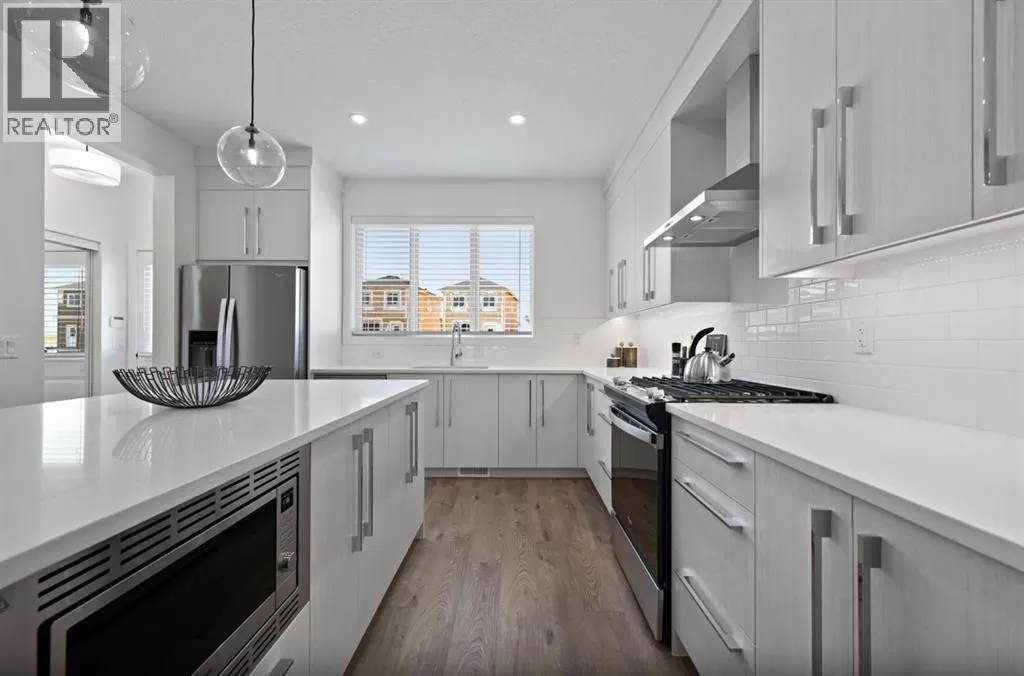 This beautifully designed home by TRUMAN pairs contemporary architecture with refined finishes and meticulous attention to detail, offering a rare opportunity to own in Lewisburgâone of Calgaryâs newest and most thoughtfully planned communities.With three spacious bedrooms and a bright, open-concept floor plan, this home is crafted for modern living without compromise. At the rear of the home, the chef-inspired kitchen is as functional as it is stylishâfeaturing full-height cabinetry with soft-close doors and drawers, elegant quartz countertops, a premium stainless steel appliance package, and a generous pantry to keep everything organized.The main floor impresses with soaring 9' ceilings and durable luxury vinyl plank flooring, creating a seamless flow between the living and dining areasâperfect for both everyday living and entertaining.Upstairs, the primary suite offers a private retreat with a walk-in closet and a sleek 3-piece ensuite. Two additional bedrooms provide versatile space for children, guests, or a home office, while a 4-piece main bath and convenient upper-level laundry with included washer and dryer make daily life effortless.The unfinished basement with a separate side entrance is a rare and valuable feature, offering endless potential.Life in Lewisburg means enjoying a community that blends tranquility with connectivity. Surrounded by parks, pathways, and green spaces, it invites an active, outdoor lifestyle while keeping you close to major routes, shopping, and city amenities. *Photo gallery of similar home* (id:27476)