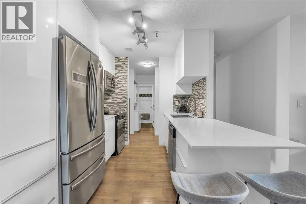 Welcome to your renovated condo in Cambridge Square. Located in the heart of CLIFF BUNGALOW, one of Calgary's trendiest districts. This condo is perfect for students or young professionals who have active lifestyles and enjoy a variety of activities, cuisine and shopping. The open floor plan is great for entertaining, while the updated designer kitchen with smart storage makes it easy to host. Relax and unwind in the living room with a patio door that opens to the private patio. The primary suite is spacious and has a walk-in closet that conveniently leads to the laundry and washroom. The 2nd bedroom is ideal for roommates or perfect as WFH office space. The unit comes with a storage locker in the secured UNDERGROUND PARKING. A FULL GYM is available, but your location is within walking distance to some of the best fitness options along 4th ST and 17th AVE. Schedule a showing and enjoy living in this amazing unit right away. (id:27476)