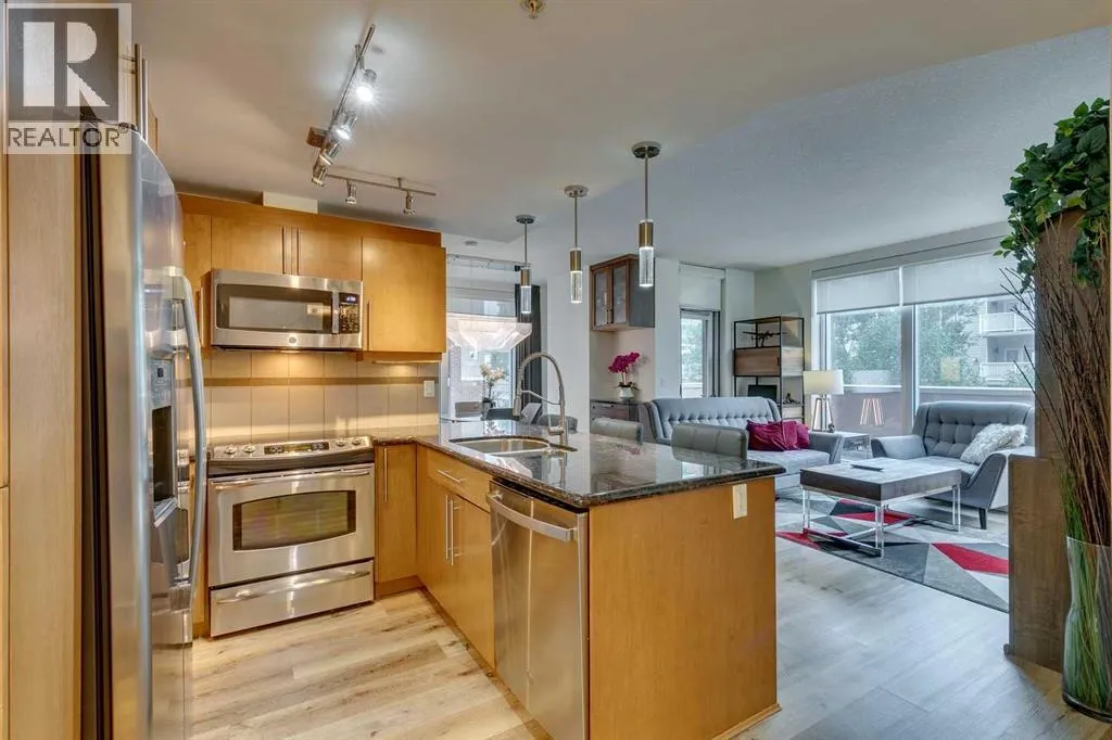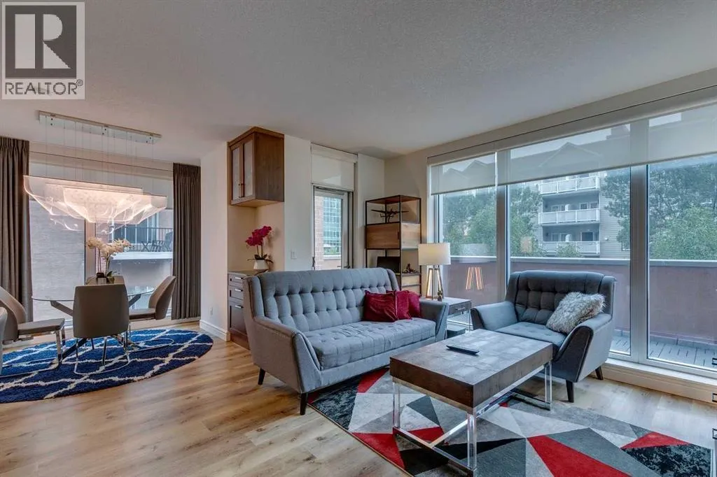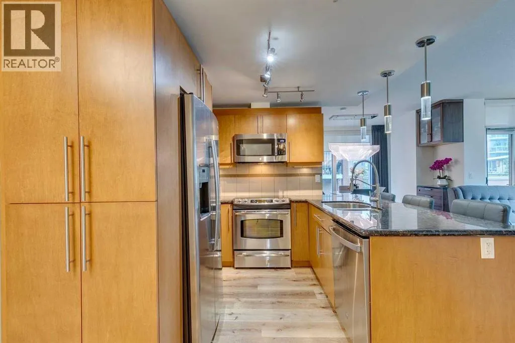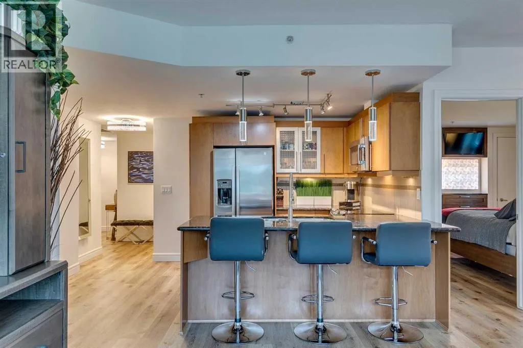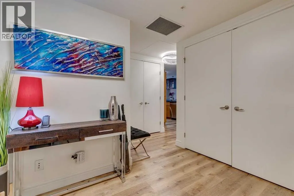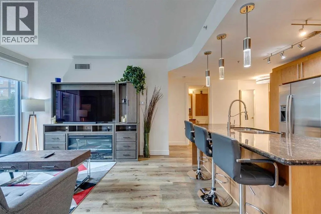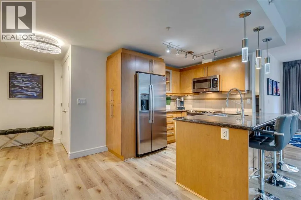 Welcome to the Bristol floorplan in The Montana, Calgary's premier luxury condominium. This remarkable 2-bedroom, 2-bathroom corner suite boasts 968 SF of upgraded living space. Floor-to-ceiling windows provide magnificent views of the downtown skyline, Recent updates include new luxury vinyl plank flooring, under-cabinet lighting, granite countertops, updated stainless steel appliances and modern light fixtures, The master suite showcases a 4-piece ensuite bathroom and custom built-in closet organizers. Large 2nd bedroom with an adjacent 3 piece bath. The full length balcony, equipped with a gas line for a BBQ or patio heater, extends your living space, central A/C, triple-paned windows ensure year-round comfort and tranquility. Titled underground parking stall and in-suite laundry complete the unit. Residents enjoy premium amenities, including a 24/7 fitness facility (currently undergoing renovations), secure bike storage, a business boardroom, 20 stall visitor parking, three high-speed elevators and full-time concierge provides a 5-star hotel-inspired living experience. Perfectly situated adjacent to Mount Royal Village Mall and just steps from the vibrant shops, cafés, grocery stores, restaurants, and the nightlife of 17th Avenue. Quick possession available. Click on the 3D virtual tour (id:27476)