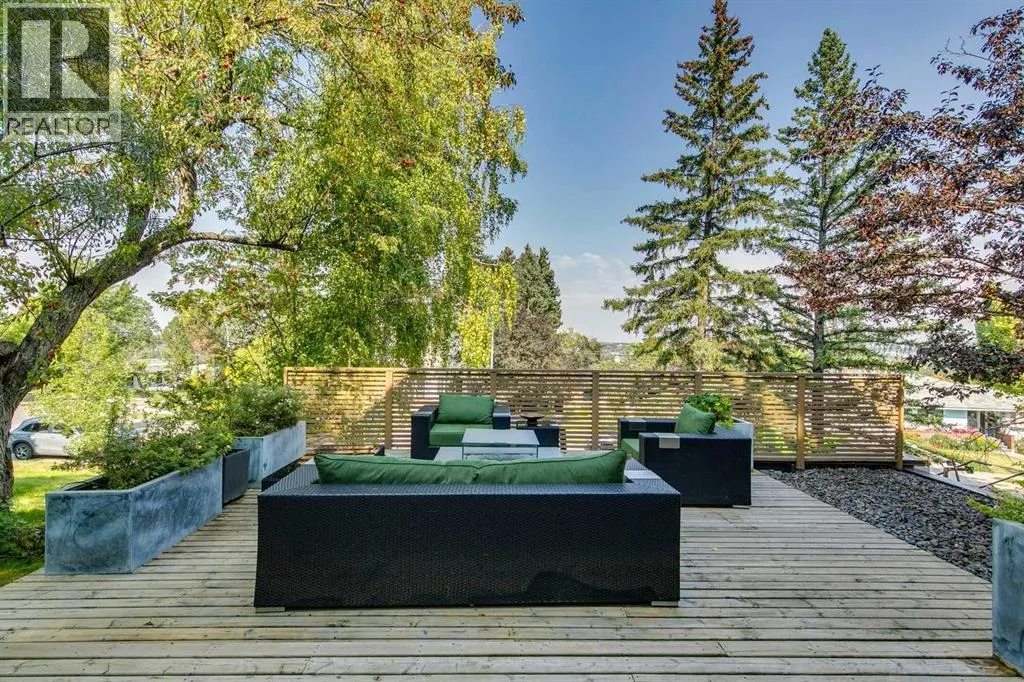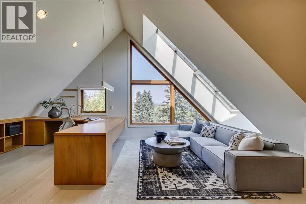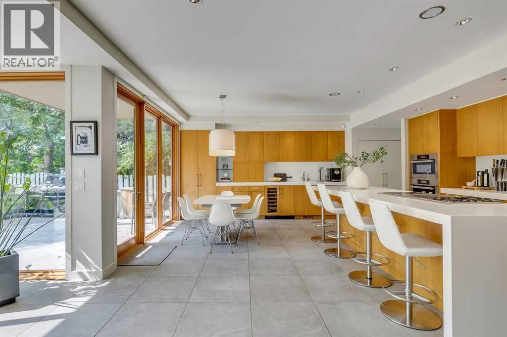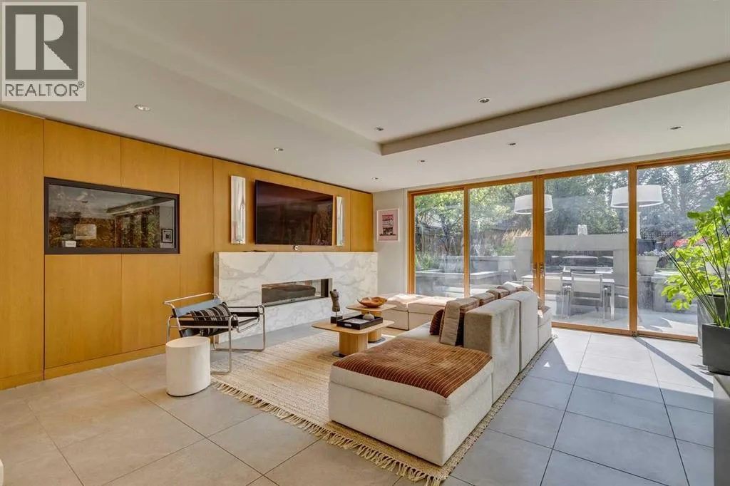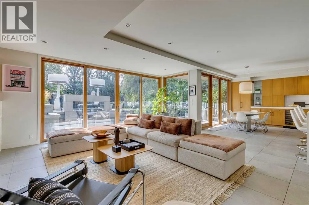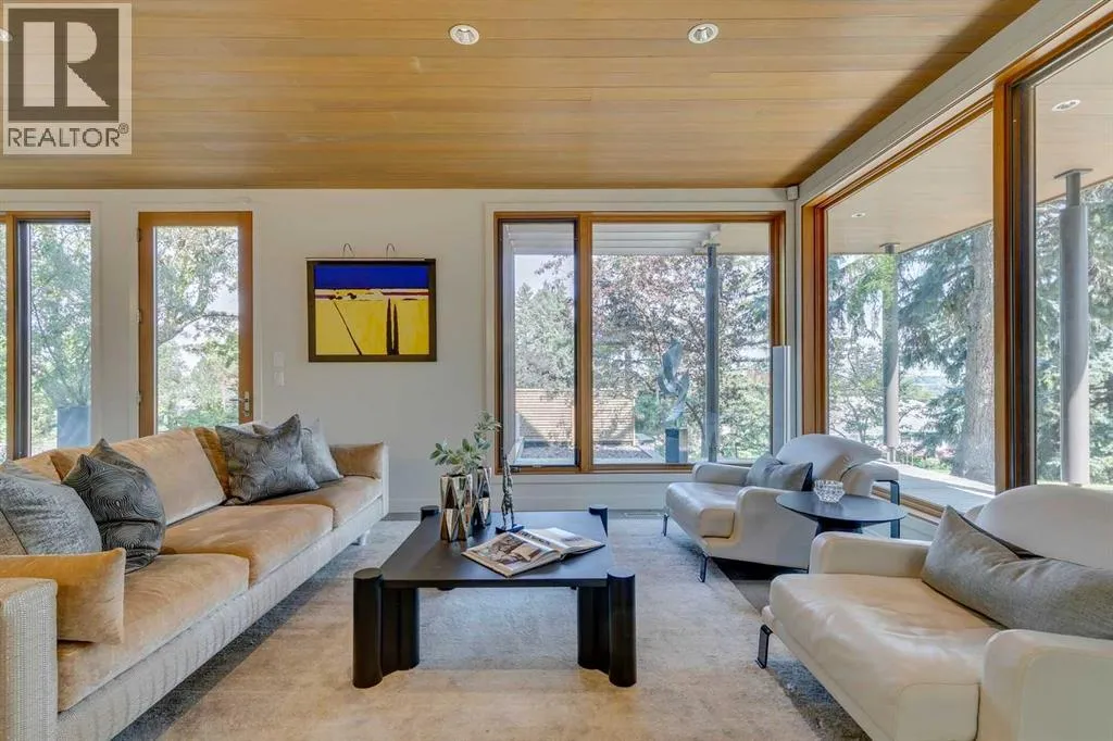 Stunning one of a kind contemporary family home in the heart of desirable Scarboro, just around the corner from the Sunalta School. This home which was completely transformed in 2013 with modern scale + design of windows + sight lines + the creation of two gorgeous outdoor living spaces both at the front + back of the property. Impressive curb appeal is welcoming with the house set back from the street . Enter to a warm living room/dining room combination with loads of windows + stunning Cypress wood ceiling. The back of the house is set up from comfortable informal living with a huge chefâs kitchen with ample storage, professional appliances, amazing pantry, large island + informal dining. The great room is right off the kitchen with ribbon gas fireplace. The entire back of the house is stunning floor to ceiling windows over looking the south facing garden + outdoor living space. On the second level there are two comfortable bedrooms + a very generous upper lounge. Laundry is also on this level. A Primary retreat, like no other, is on the third level. This luxurious space with soaring ceilings + city views consists of a built in office, lounge, sleeping quarters + spa ensuite bath as well as an substantial sized closet system. Media room, flex room, a wine cellar, mudroom + extra storage are located in the lower level which also has access to the under drive double attached garage. Amazing outdoor spaces with fountains, fireplace, + mature landscaping offers a great space for summer entertaining + room for kids to play. The quality of this home is clear with top of the line materials, a generous amount of wood, gorgeous stone + more. A must to view! (id:27476)