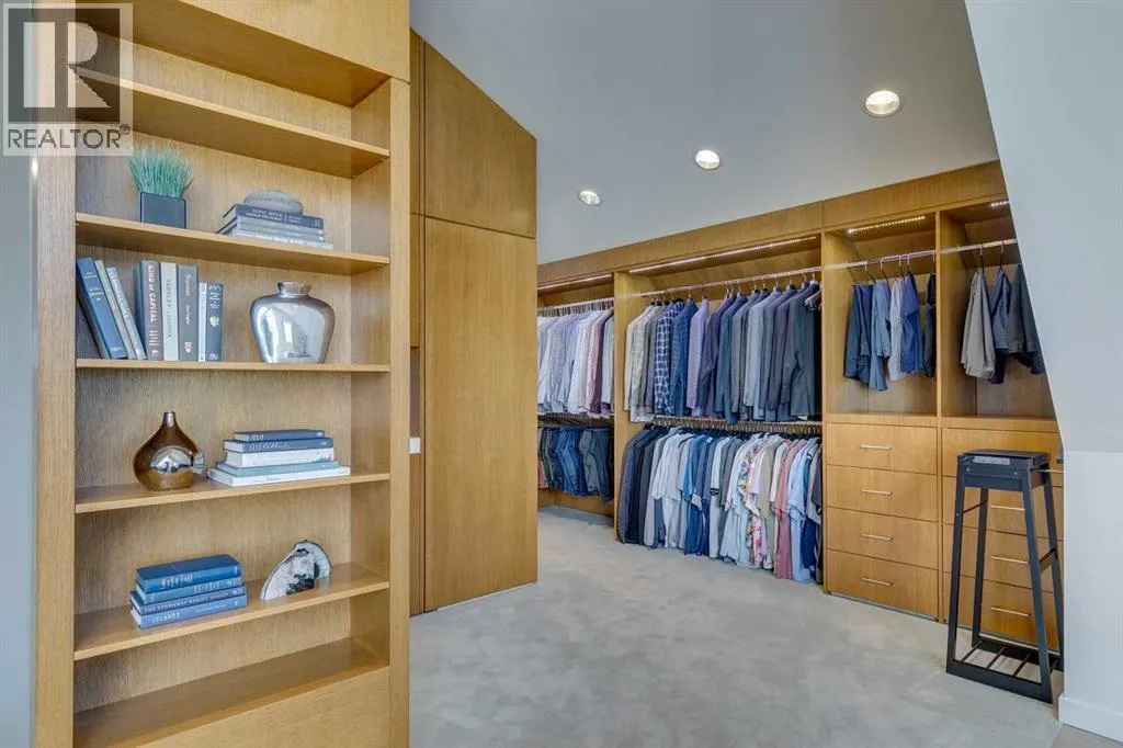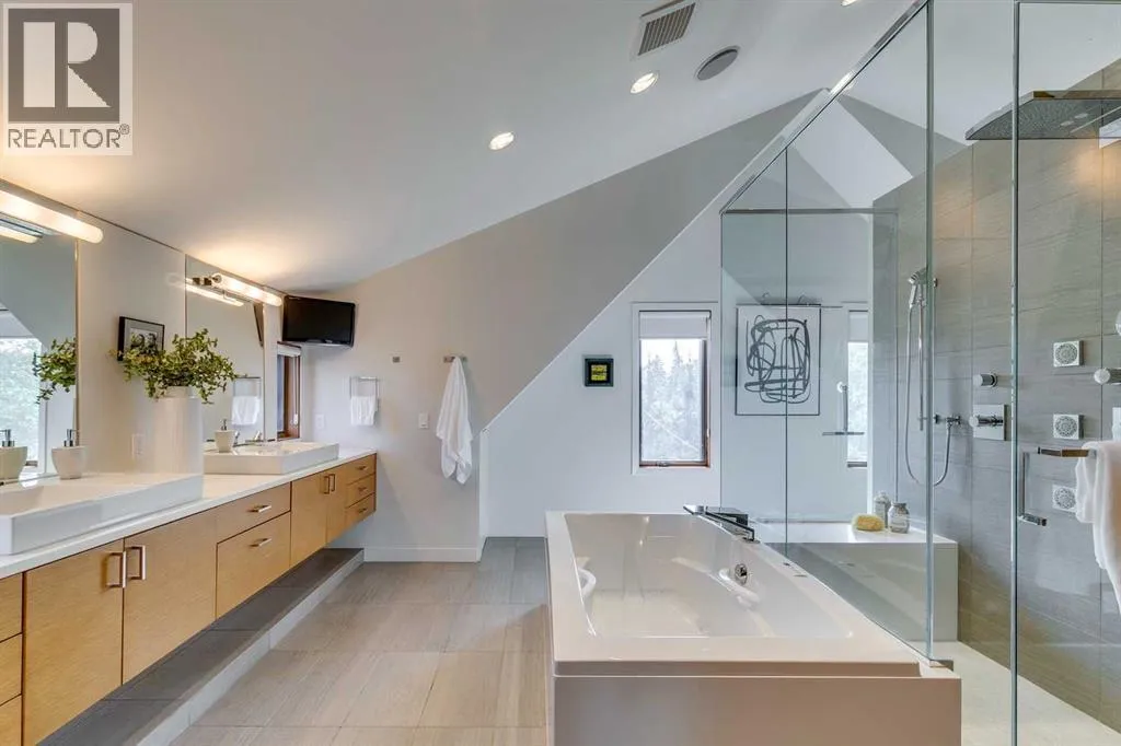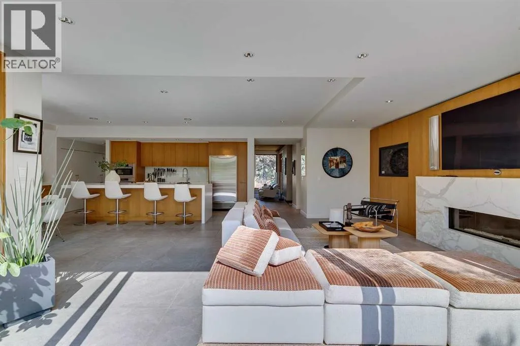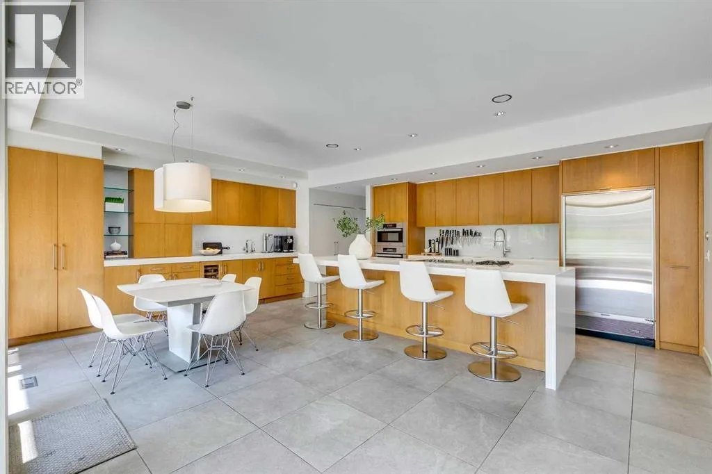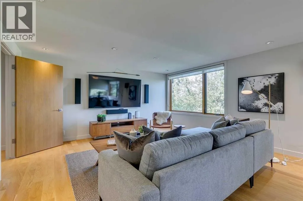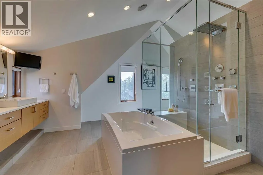 Stunning one of a kind contemporary family home in the heart of desirable Scarboro, just around the corner from the Sunalta School. This home which was completely transformed in 2013 with modern scale + design of windows + sight lines + the creation of two gorgeous outdoor living spaces both at the front + back of the property. Impressive curb appeal is welcoming with the house set back from the street . Enter to a warm living room/dining room combination with loads of windows + stunning Cypress wood ceiling. The back of the house is set up from comfortable informal living with a huge chefâs kitchen with ample storage, professional appliances, amazing pantry, large island + informal dining. The great room is right off the kitchen with ribbon gas fireplace. The entire back of the house is stunning floor to ceiling windows over looking the south facing garden + outdoor living space. On the second level there are two comfortable bedrooms + a very generous upper lounge. Laundry is also on this level. A Primary retreat, like no other, is on the third level. This luxurious space with soaring ceilings + city views consists of a built in office, lounge, sleeping quarters + spa ensuite bath as well as an substantial sized closet system. Media room, flex room, a wine cellar, mudroom + extra storage are located in the lower level which also has access to the under drive double attached garage. Amazing outdoor spaces with fountains, fireplace, + mature landscaping offers a great space for summer entertaining + room for kids to play. The quality of this home is clear with top of the line materials, a generous amount of wood, gorgeous stone + more. A must to view! (id:27476)
