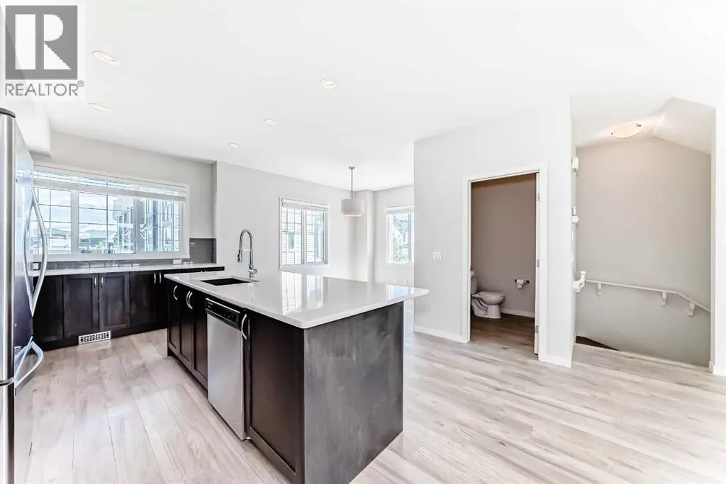 Welcome to 59 Nolanlake Cove NW, a beautifully updated 3-bedroom plus den END UNIT townhouse in the desirable community of Nolan Hill. With 1,705 sq. ft. of well-designed living space across three levels, this home offers comfort, functionality, and stylish upgrades. Enjoy the feel of a refreshed interior with brand new Luxury Vinyl Plank (LVP) flooring throughout the lower and upper levels, including both staircases, and fresh paint throughout the entire home. The main floor features an open-concept layout with quartz countertops, upgraded cabinetry with soft-close drawers, and a spacious island perfect for cooking and entertaining. The kitchen is completed with Whirlpool stainless steel appliances, a stand-up pantry, and a modern subway tile backsplash. The adjoining living and dining areas open to a private balcony with a natural gas lineâperfect for barbecues and relaxing outdoors and enjoying peaceful courtyard views. A convenient 2-piece powder room is also located on this level. Upstairs, the primary bedroom features a large walk-in closet and a private luxurious en-suite with an oversized standing glass shower. Two additional bedrooms, a full 4-piece bathroom, and a laundry area complete the upper floor. The entry-level features a versatile denâperfect for a home office or gymâand access to a spacious double attached garage thatâs fully insulated and drywalled. There's also street parking available right out front. This well-managed complex includes green spaces, visitor parking, and access to walking paths and ponds. You'll enjoy quick access to Sarcee Trail, Shaganappi Trail, and Stoney Trail, and you're just minutes from Sage Hill Centre, Beacon Hill Shopping Centre, Costco, restaurants, grocery stores, and more. Donât miss the opportunity to own this move-in-ready, stylishly upgraded townhouse in a prime NW location. Schedule your private showing today! (id:27476)